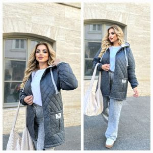 Куртка до коліна 100 кармани капюшон 033