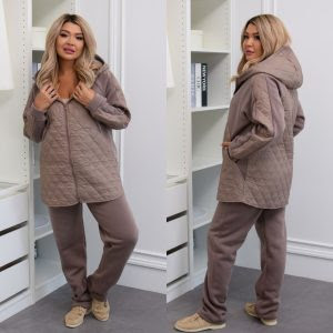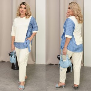Брючний костюм жакет вільного крою з декоративними застібками-бантиками 545