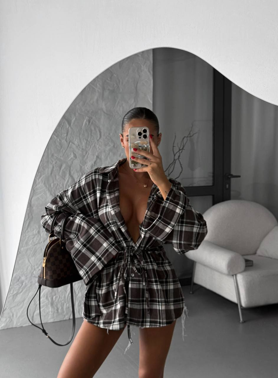 Фланелева сорочка у клітинку з пояском 376