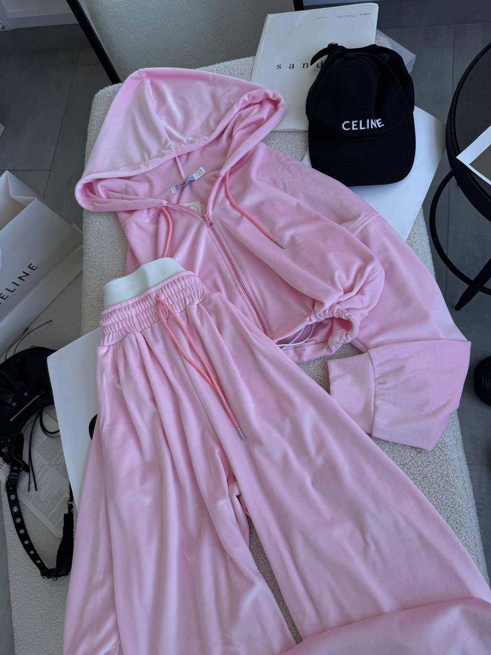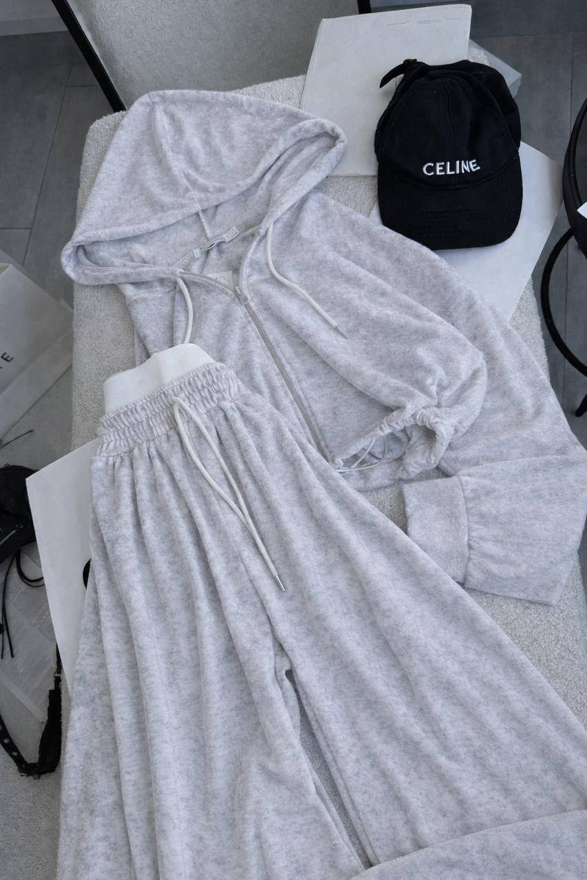 Велюровий костюм оверсайз на штанах вшита біла резинка 702