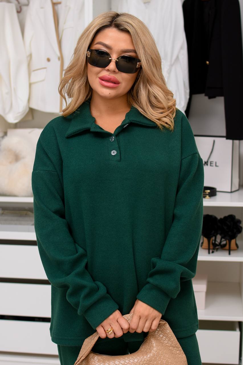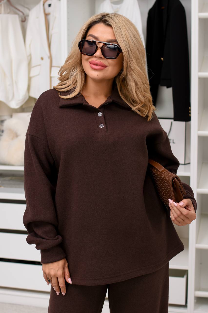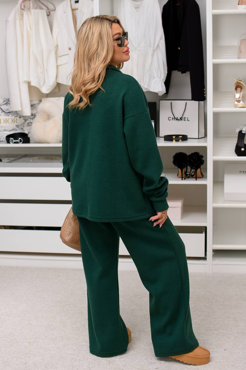 Теплий костюм двійка, кофта на робочих ґудзиках, комір стійка. Штанці палаццо. Дуже гарно сідає по фігурі, елегантний, стильний комплект. Манжети з основи.