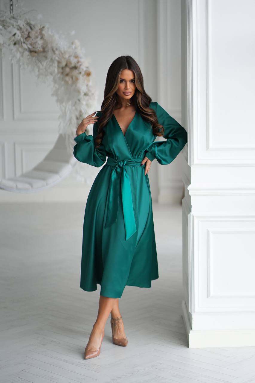 ✨ Атласна сукня на запах — модель 7563 ✨