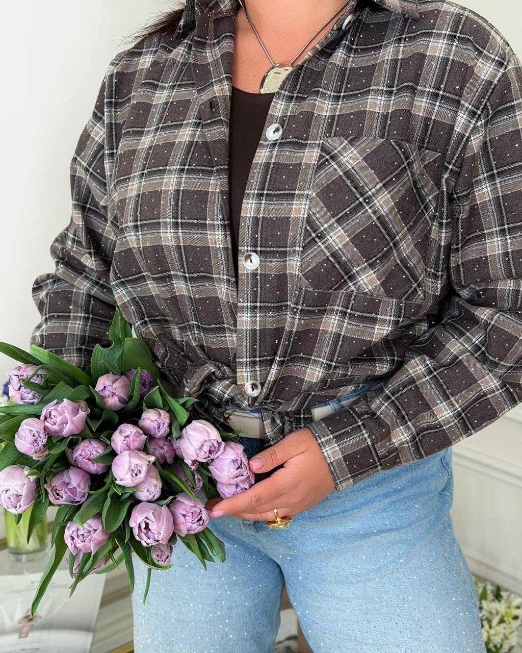 Фланелева сорочка в клітинку зі стразами (бавовна 100% виробник Туреччина )
