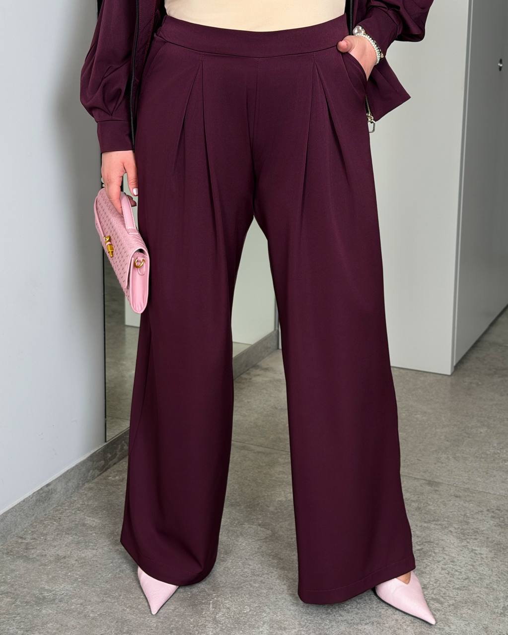 Широкі прямі, вільні штани палаццо з високою комфортною посадкою і мʼякими складками спереду., з кишенями.