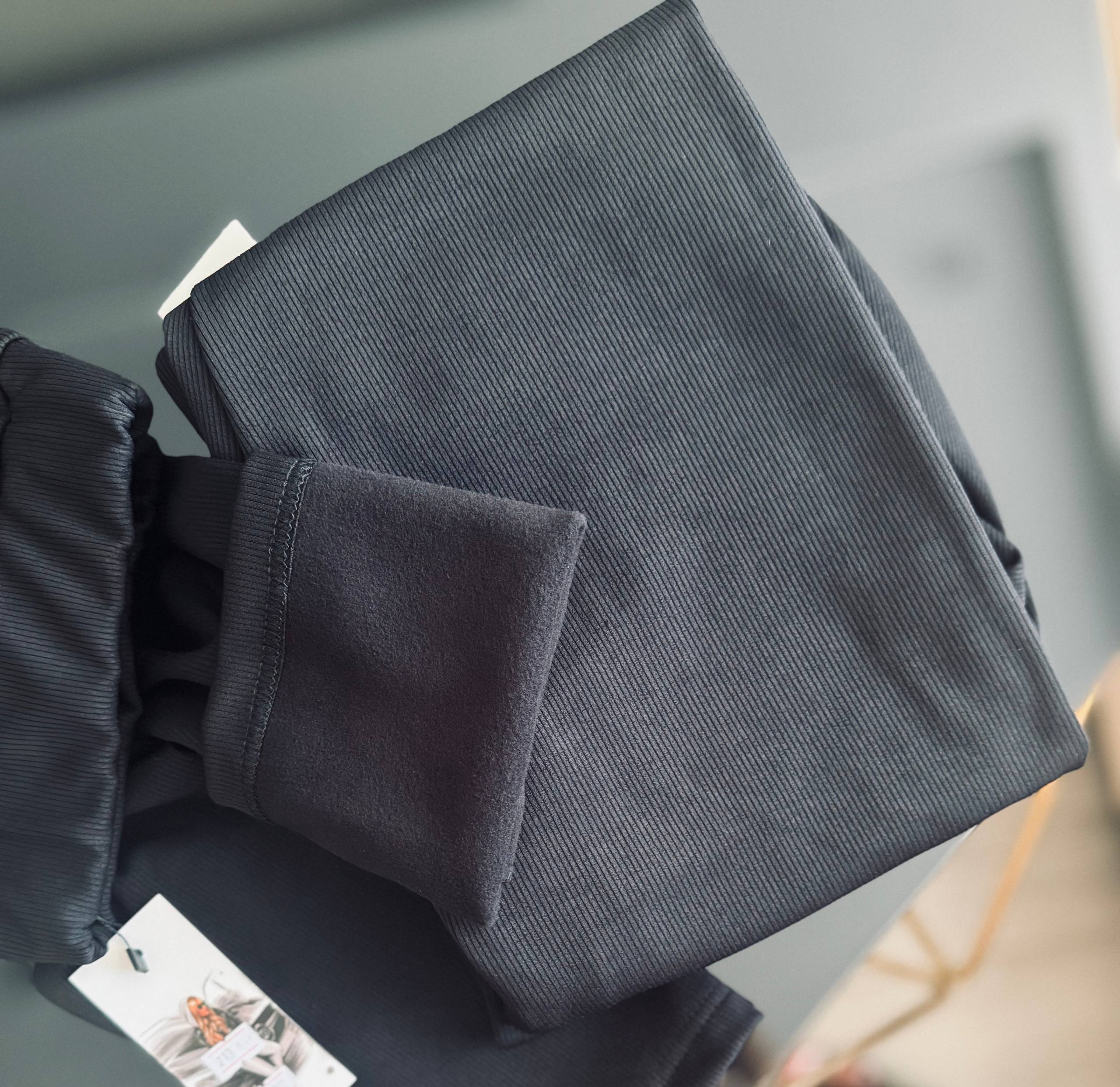 Тканина : турецький рубчик на флісі.Не скочується ,не линяє.Гумка в поясі пришита,не буде перекручуватись.