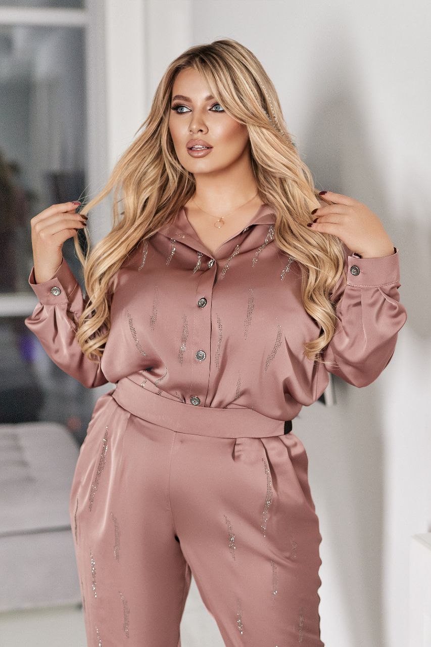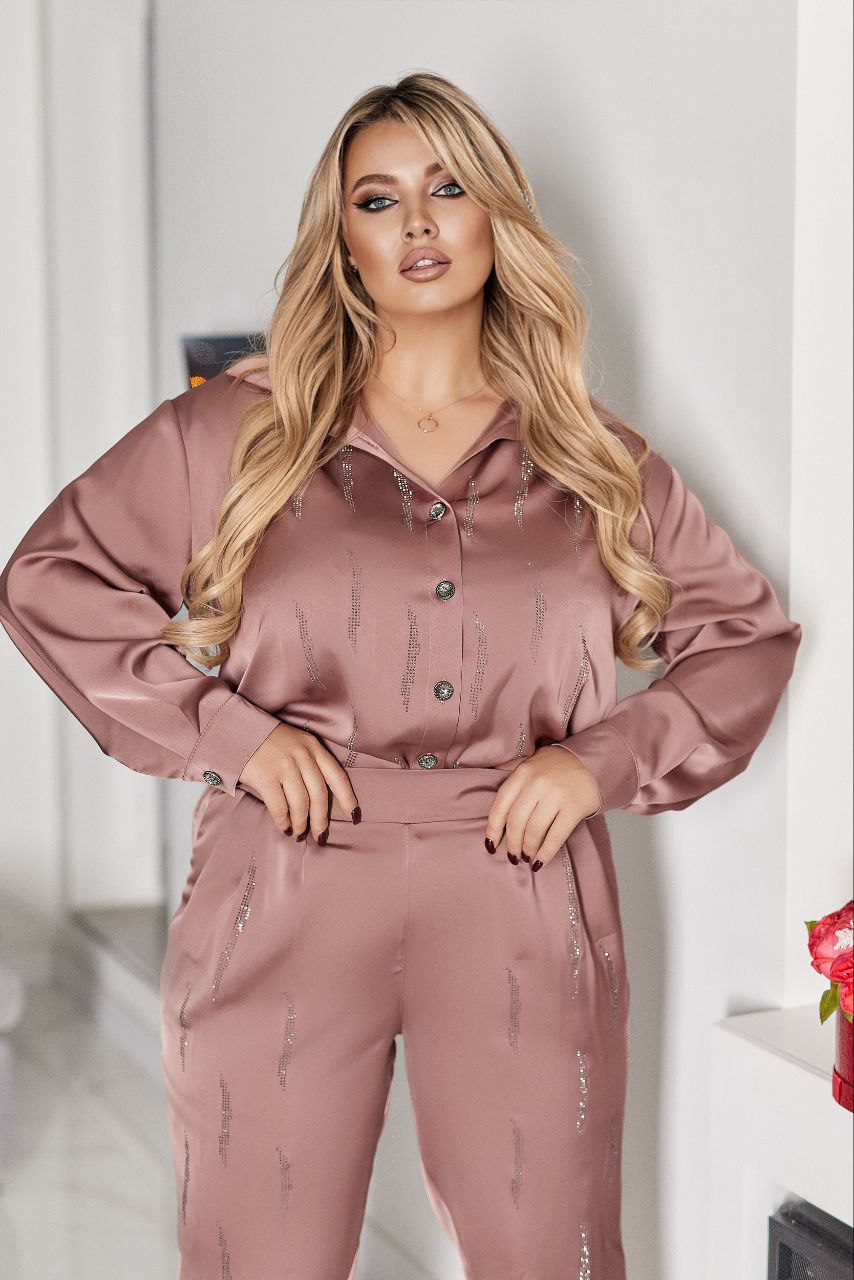 Костюм складається з подовженої сорочки та брюк , із тканини Армані Шовк Дабл високої якості.