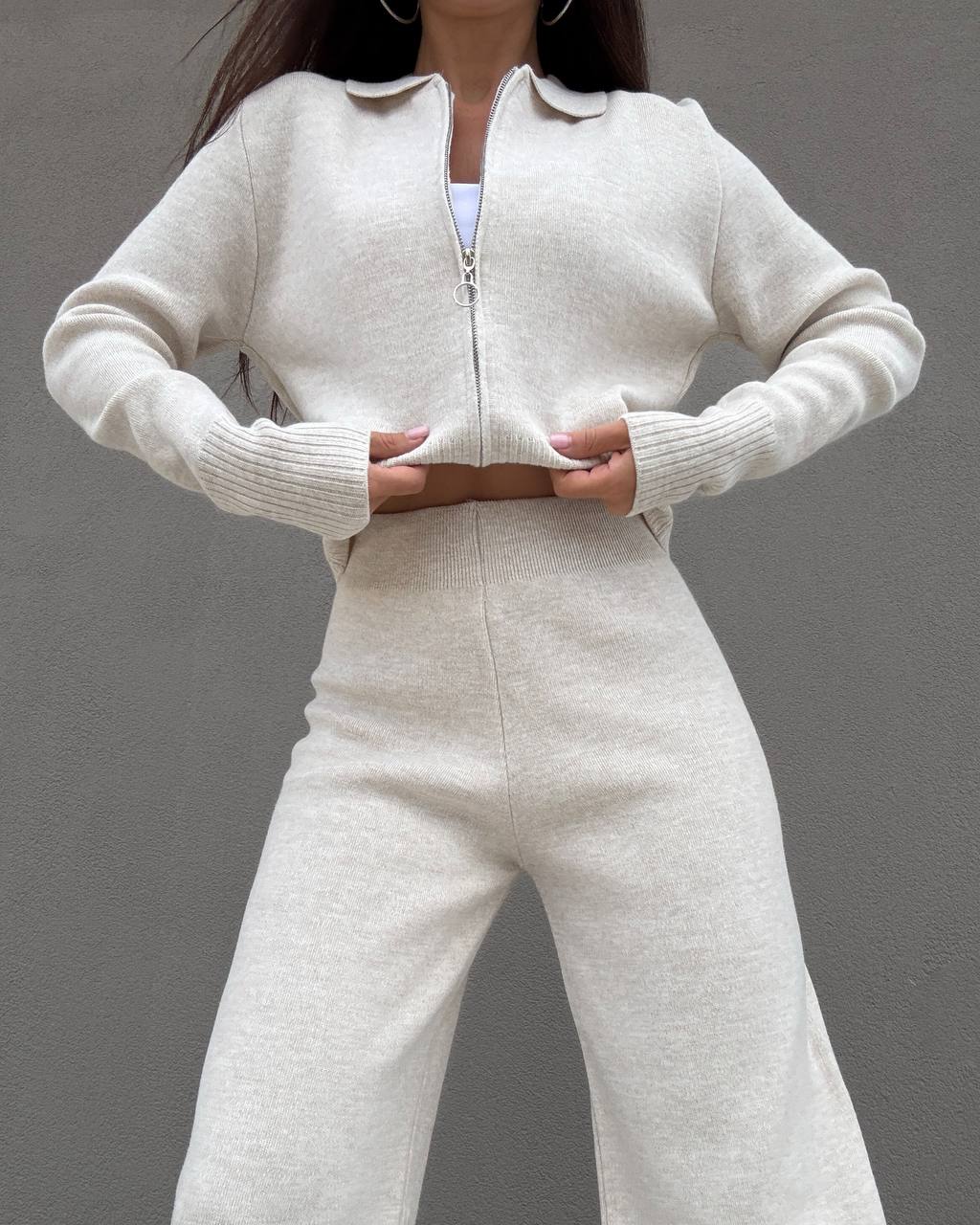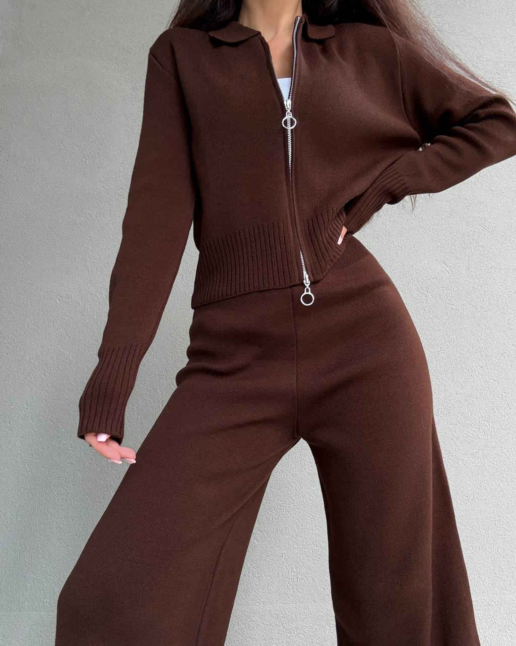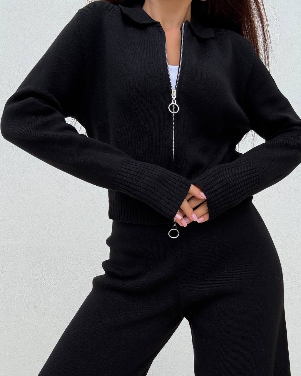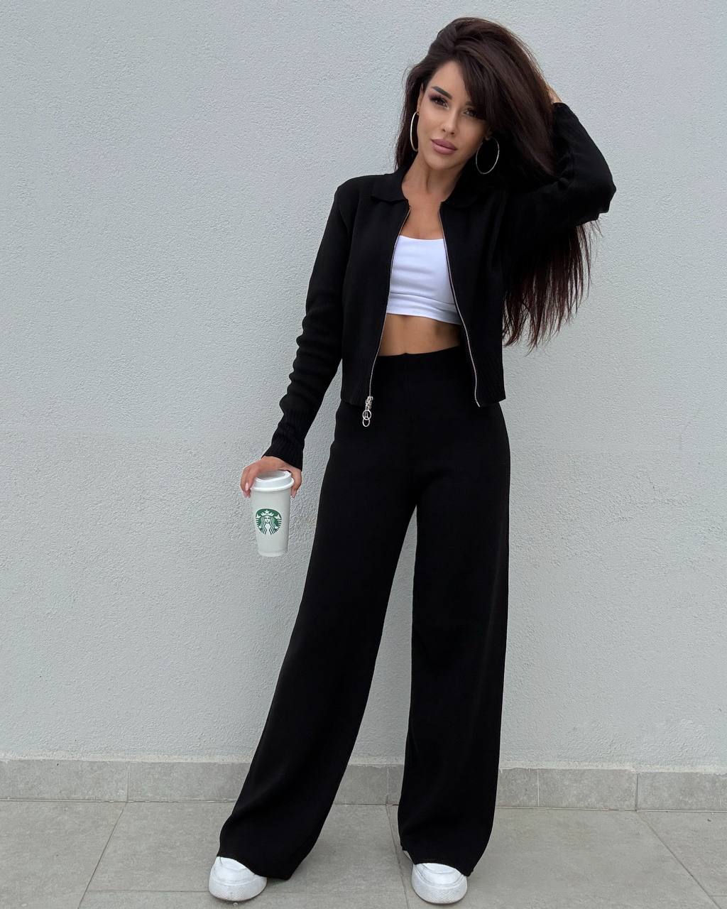 Має ідеальну посадку і складається з кофти з подвійною блискавкою та прямих штанів