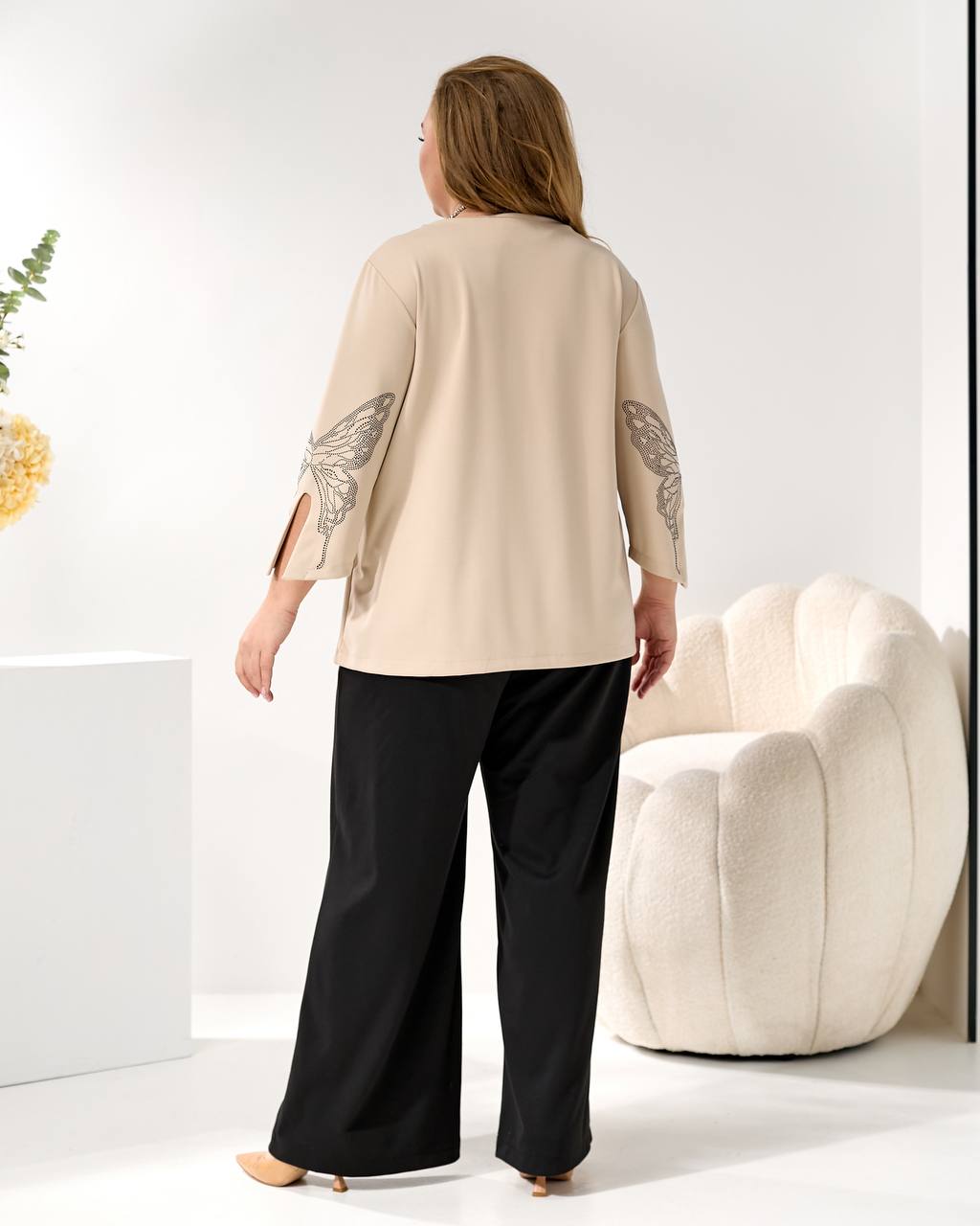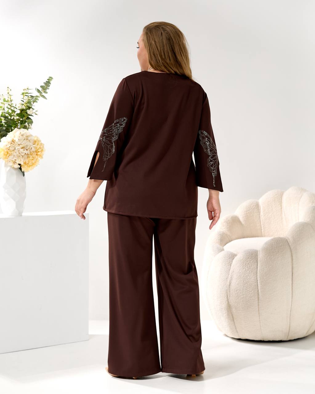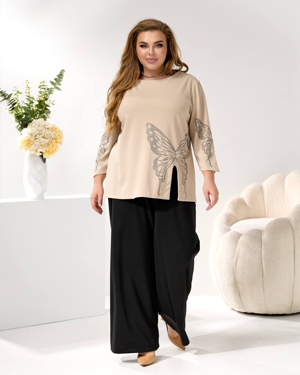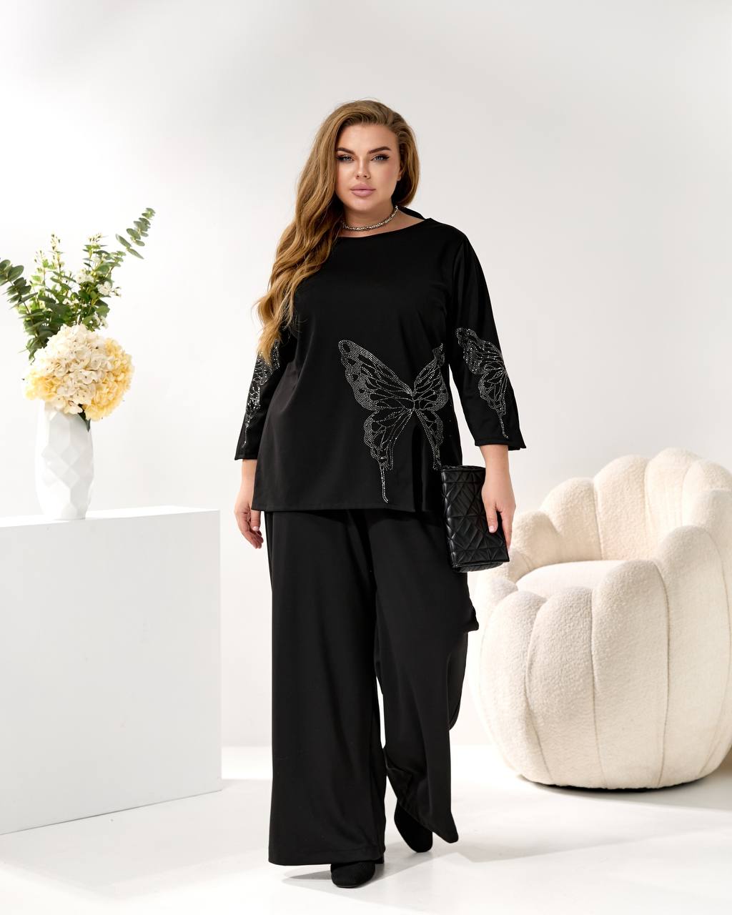 Цей вишуканий брючний костюм, що складається з туніки та штанів палаццо, створений для того, щоб підкреслити вашу жіночність та почуття стилю! Костюм чудово підходить як для урочистих заходів , так і для створення ефектного повсякденного або офісного образу .
