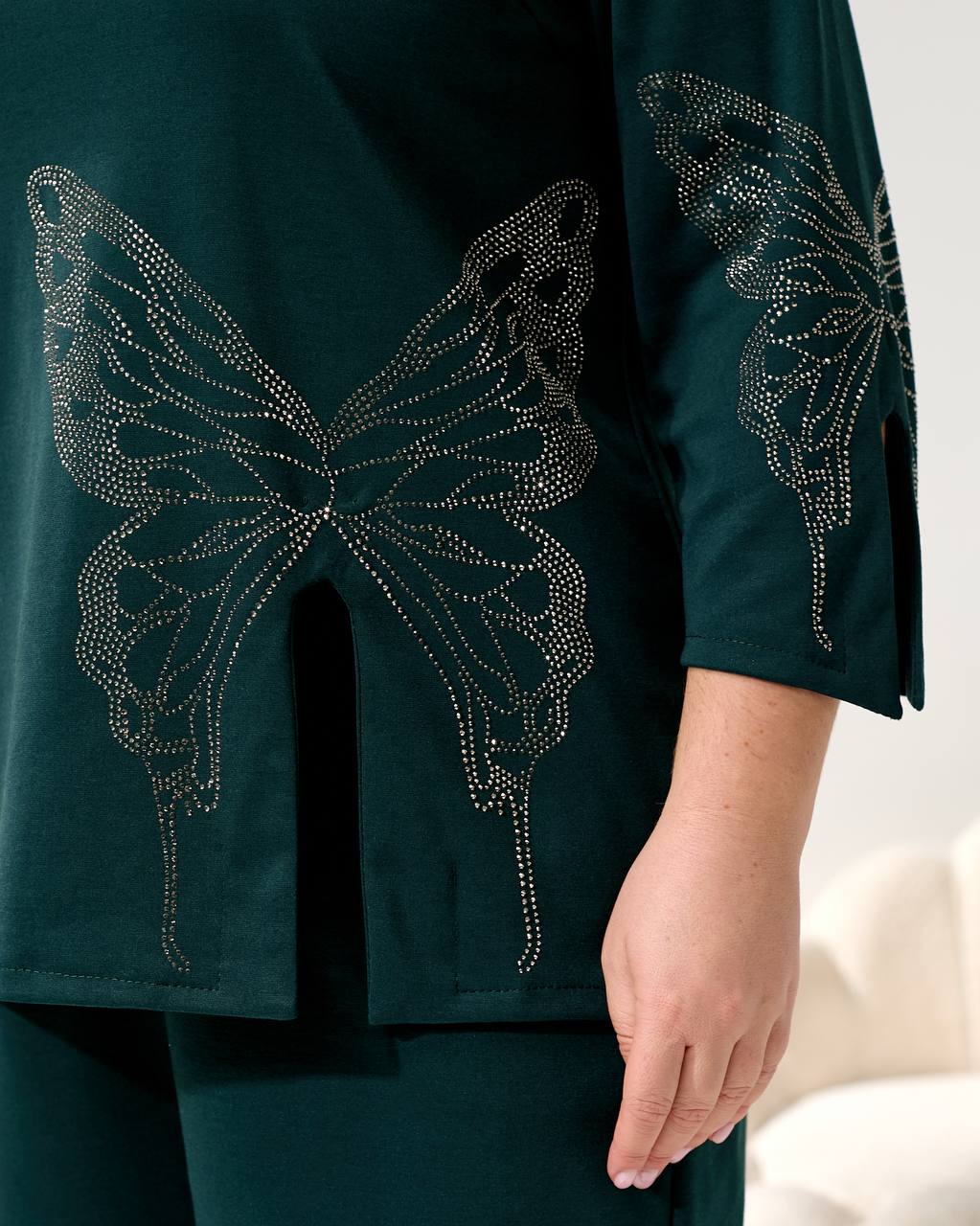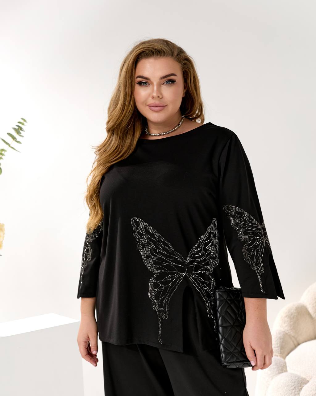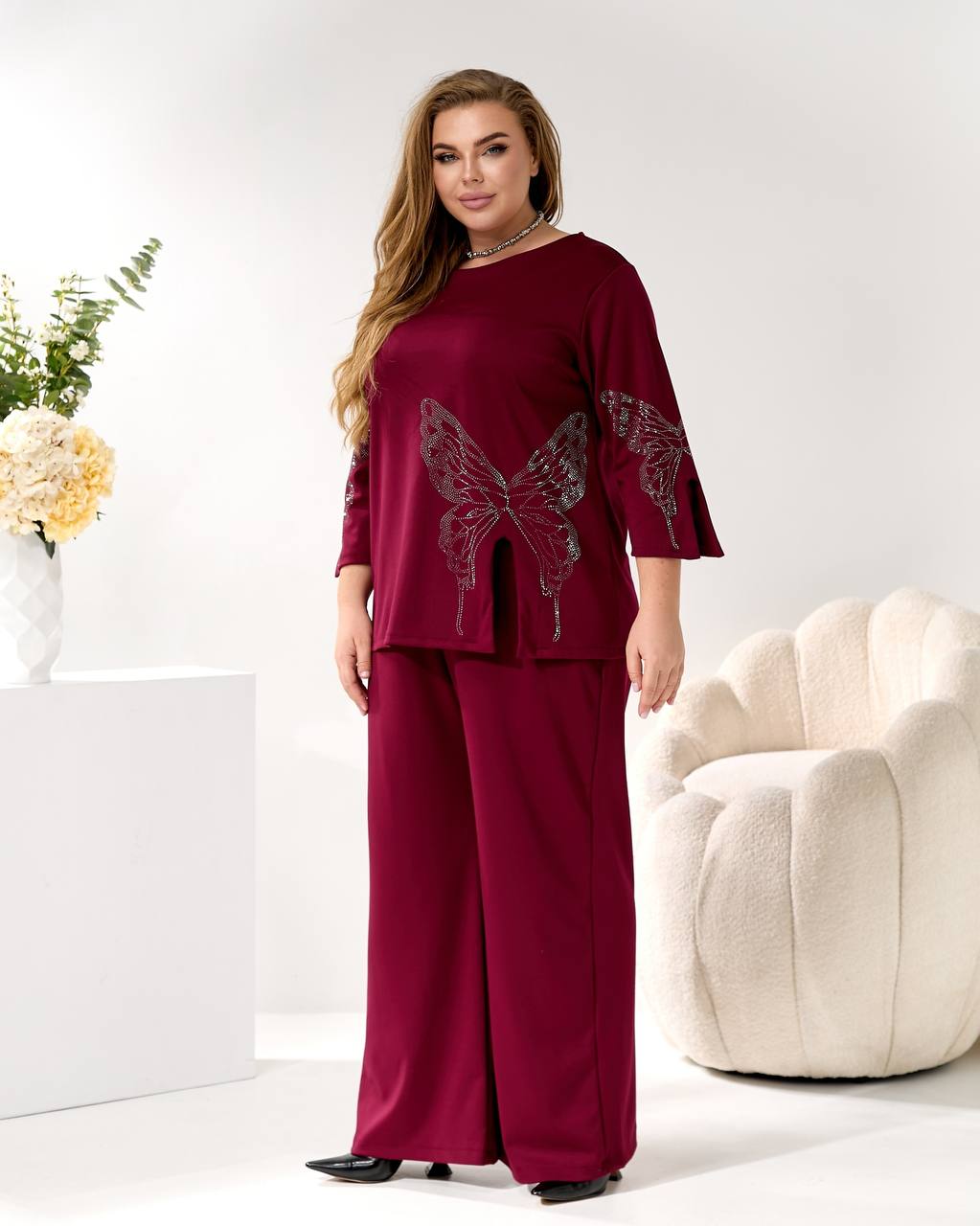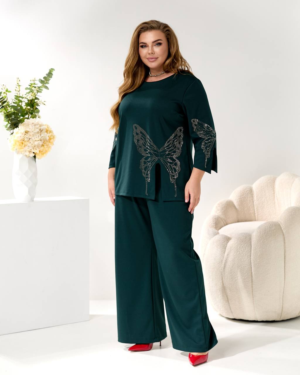 Цей вишуканий брючний костюм, що складається з туніки та штанів палаццо, створений для того, щоб підкреслити вашу жіночність та почуття стилю! Костюм чудово підходить як для урочистих заходів , так і для створення ефектного повсякденного або офісного образу .