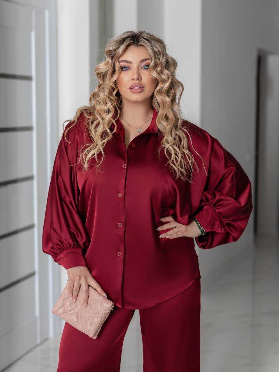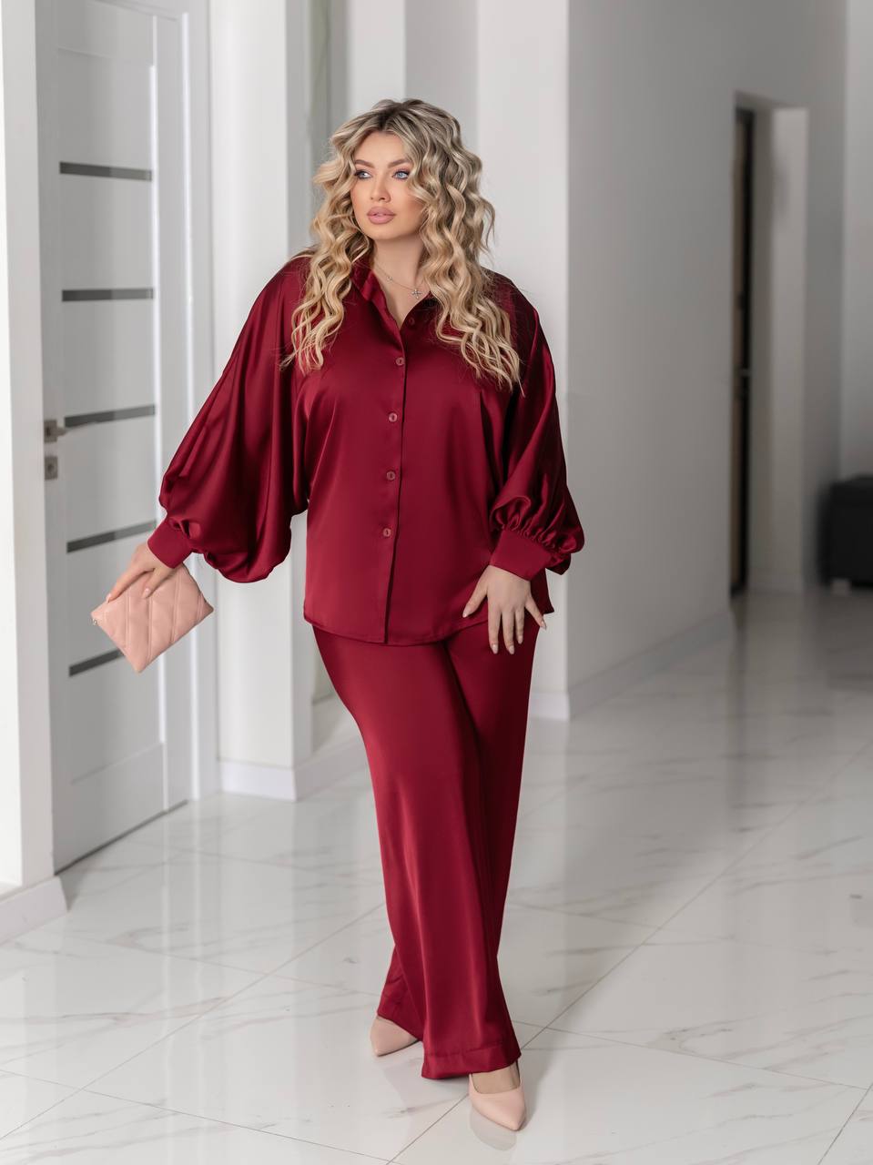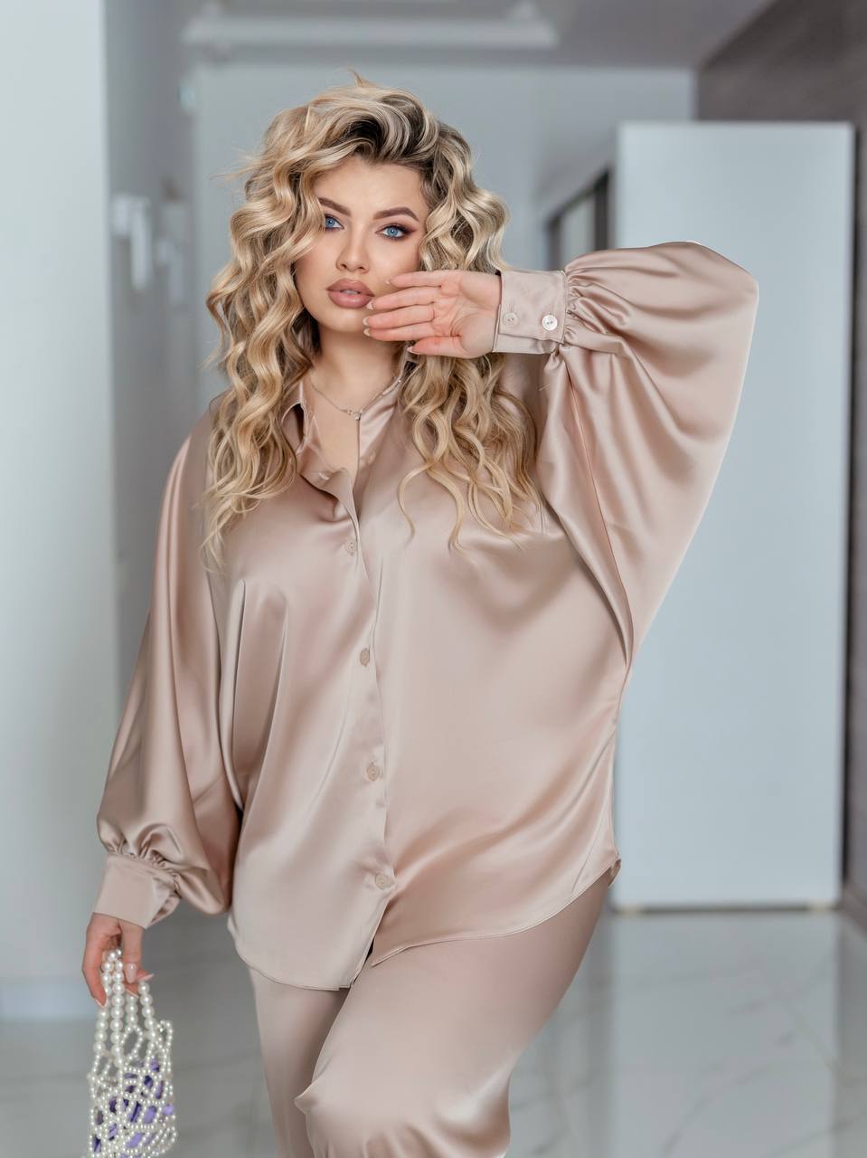 Преміальний шовковий сатин: щільний, непрозорий, з делікатним матовим блиском. Тканина приємна до тіла, красиво грає в русі і тримає форму.❤️❤️❤️