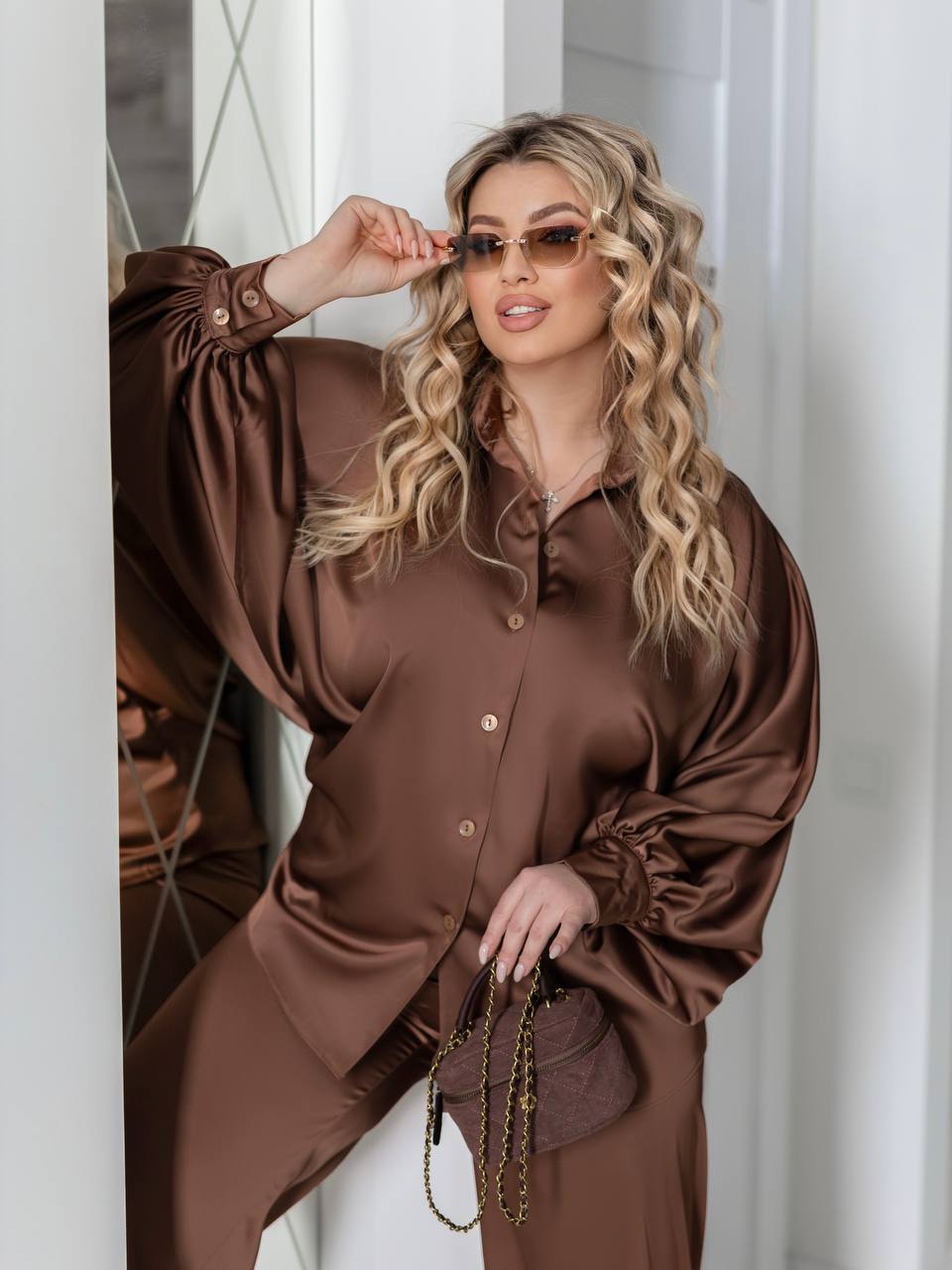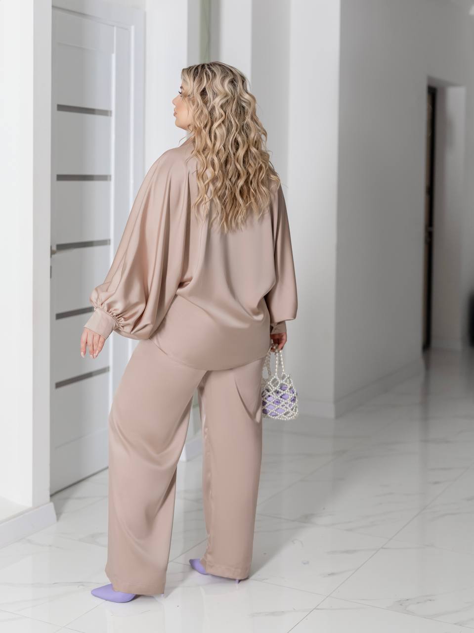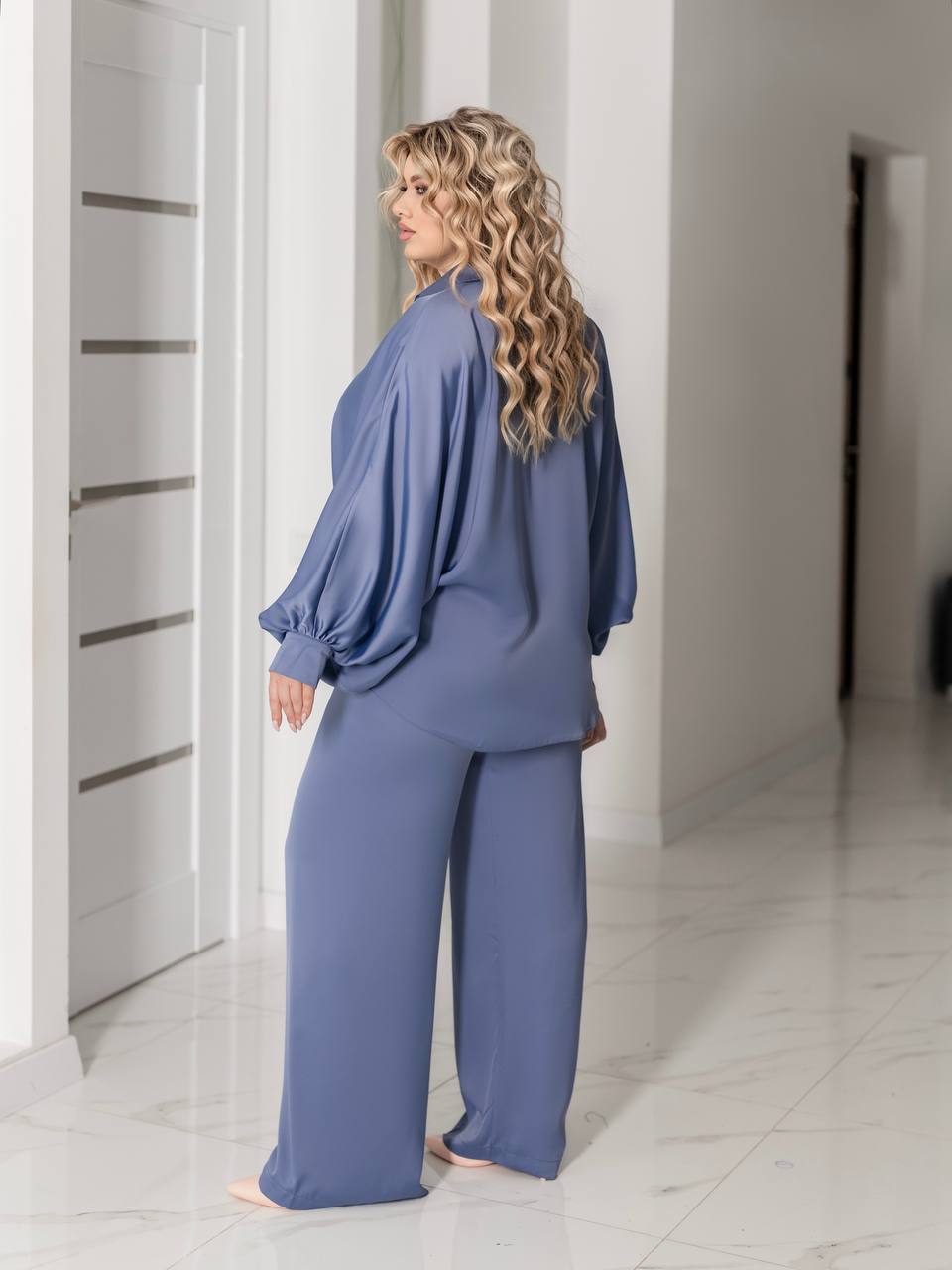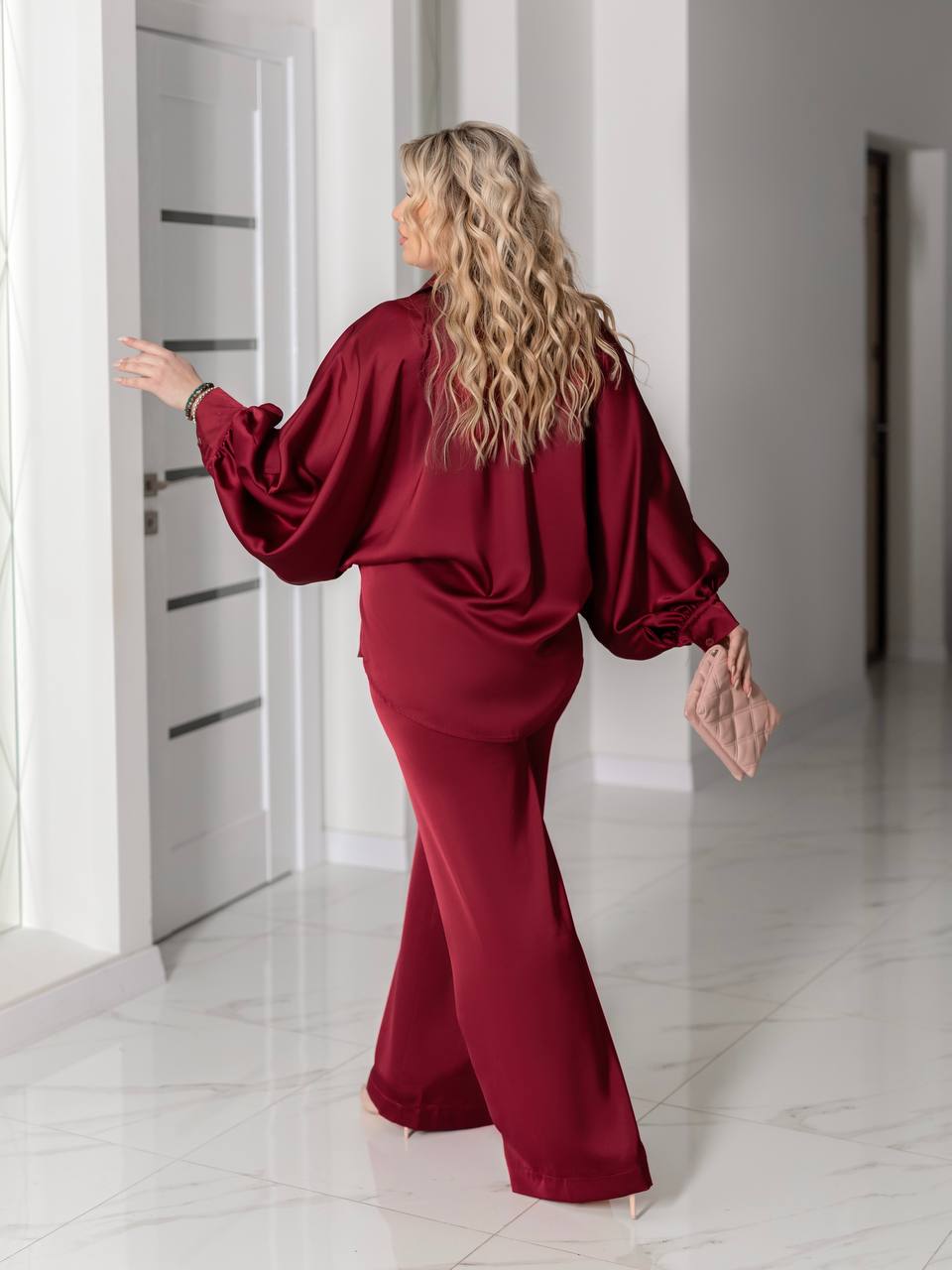 Преміальний шовковий сатин: щільний, непрозорий, з делікатним матовим блиском. Тканина приємна до тіла, красиво грає в русі і тримає форму.❤️❤️❤️
