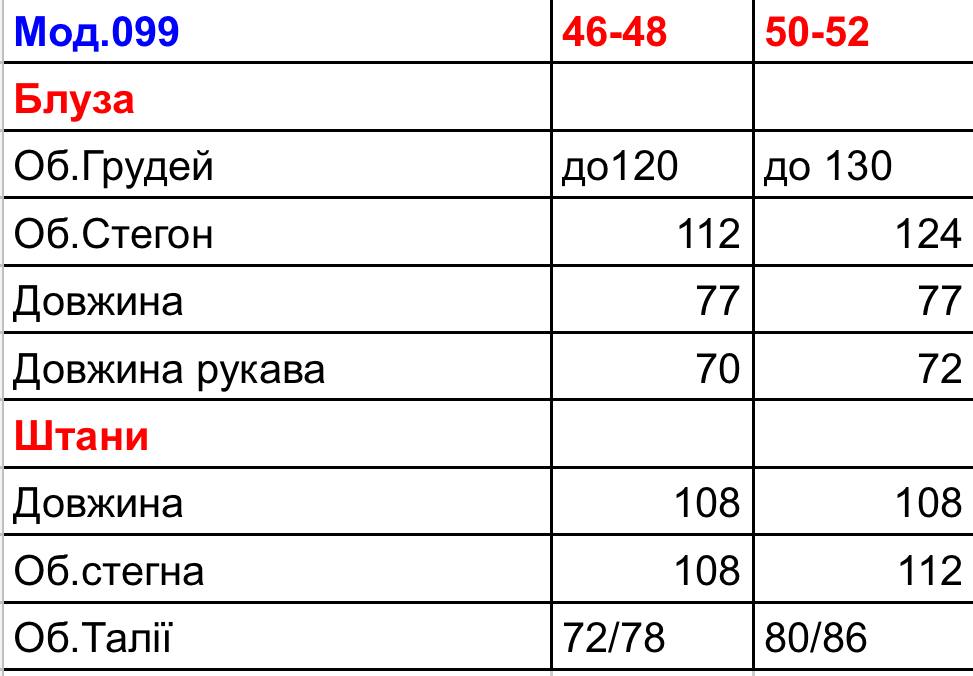 Розміри: 46–48, 50–52
