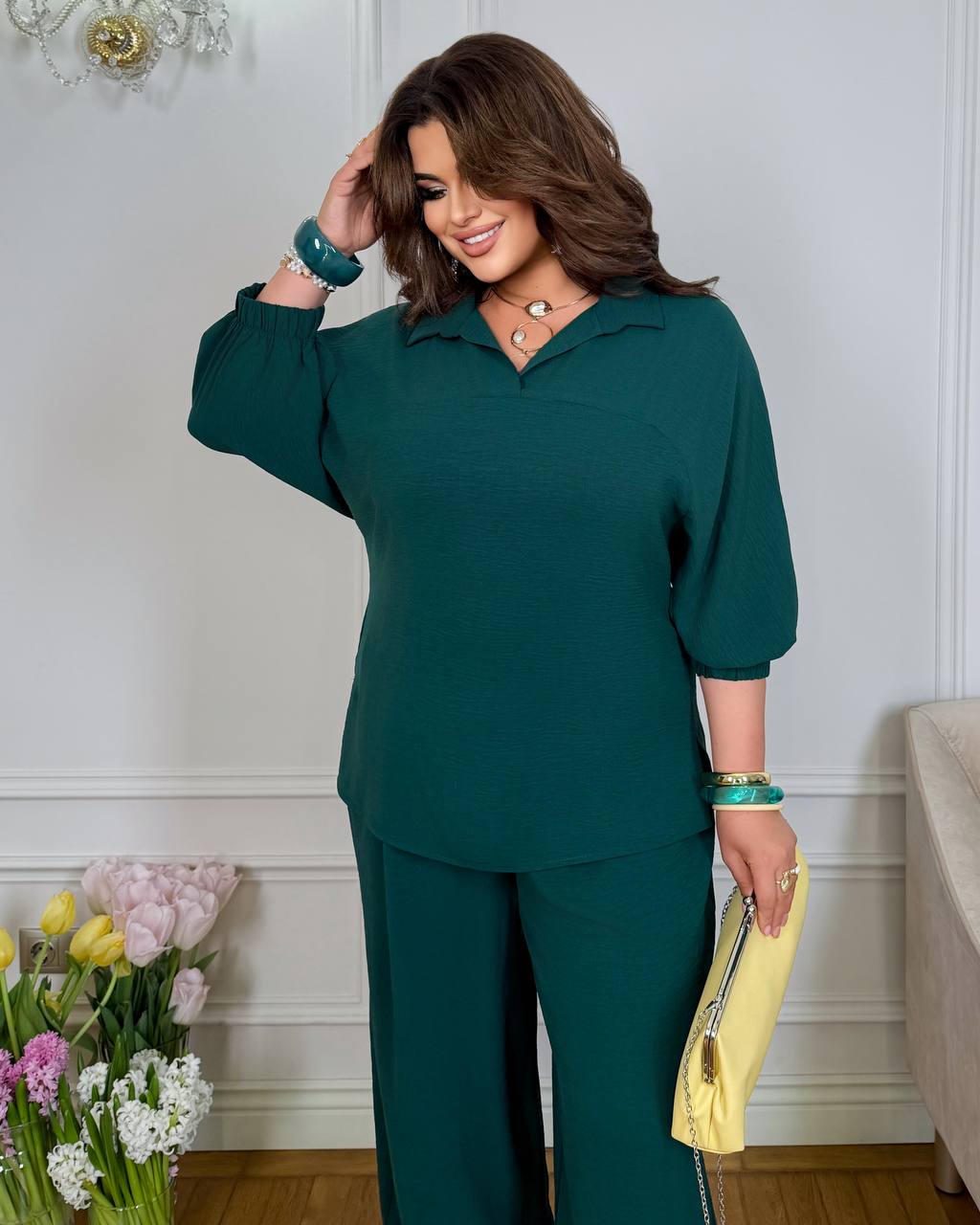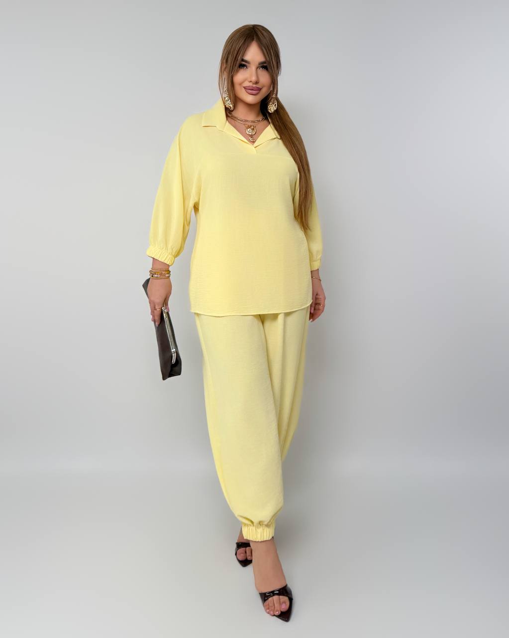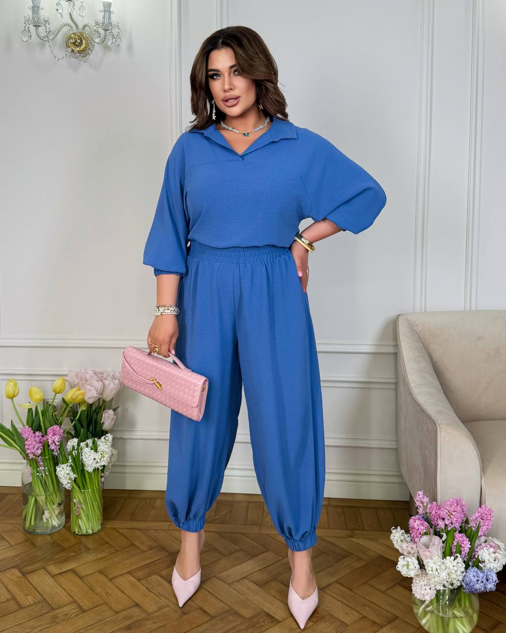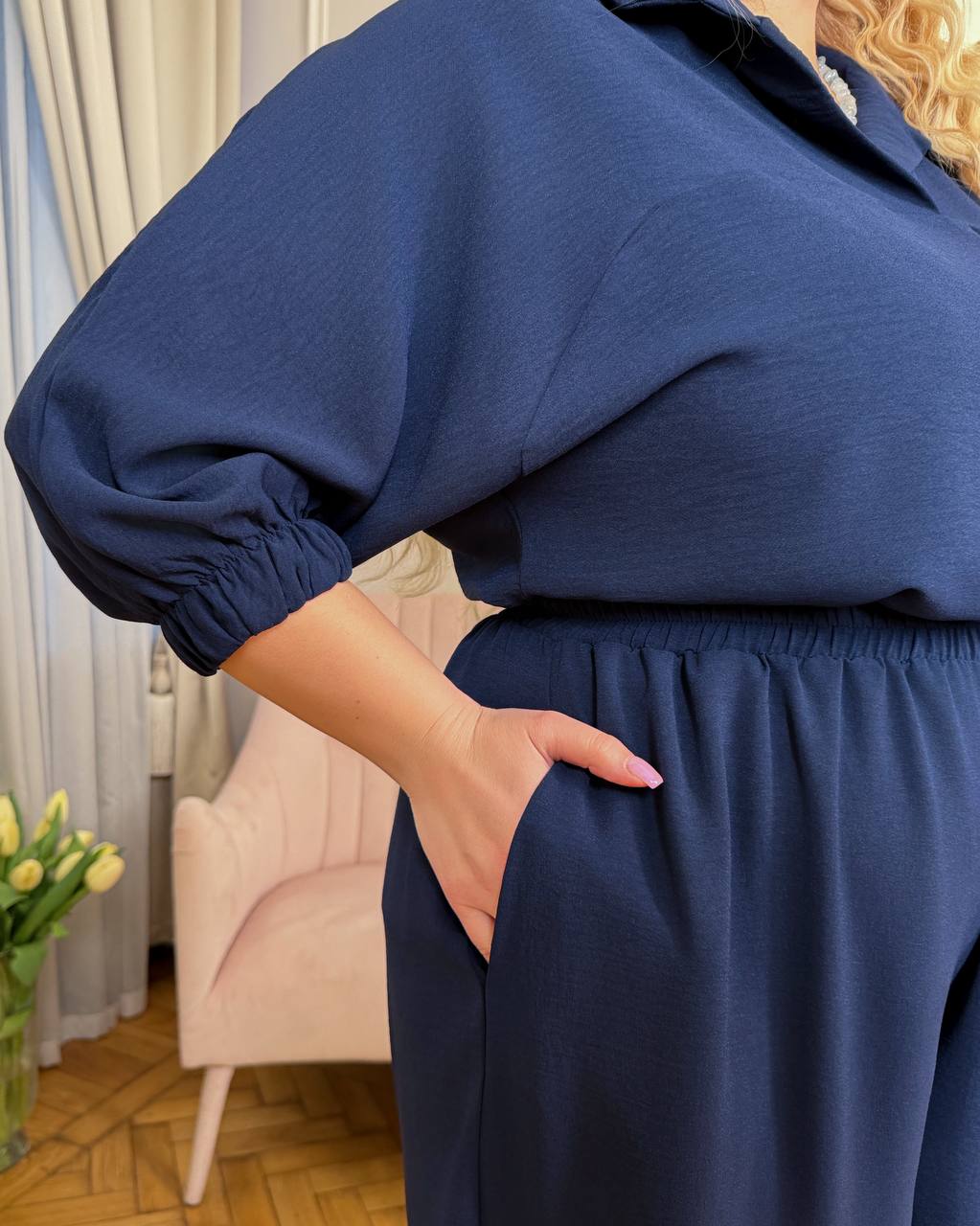 Цей костюм створений для комфорту та стилю без компромісів. М’який силует делікатно огортає фігуру, даруючи легкість у кожному русі.