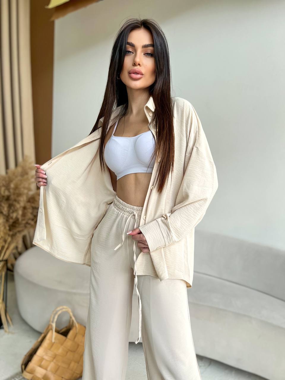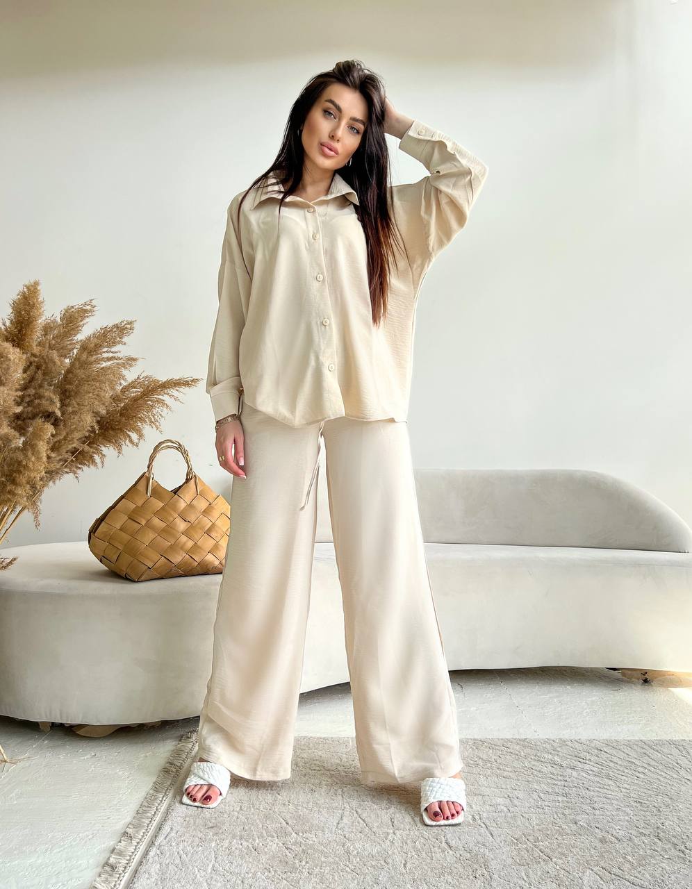 Хіт продажу цього сезону – стильні костюмчики з легкої та приємної тканини, дуже зручний та практичний, сорочка на ґудзиках, штани кльош на високій посадці