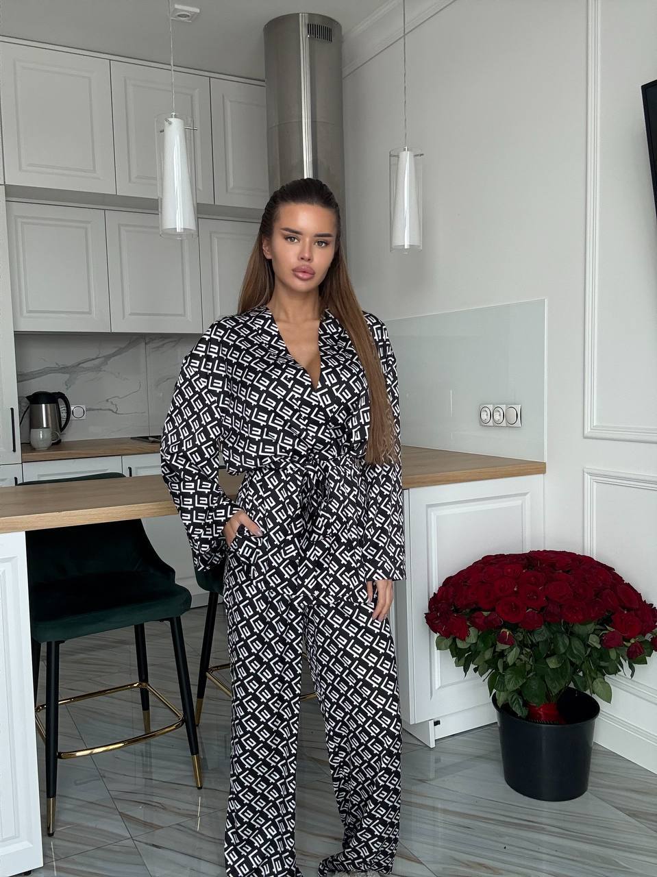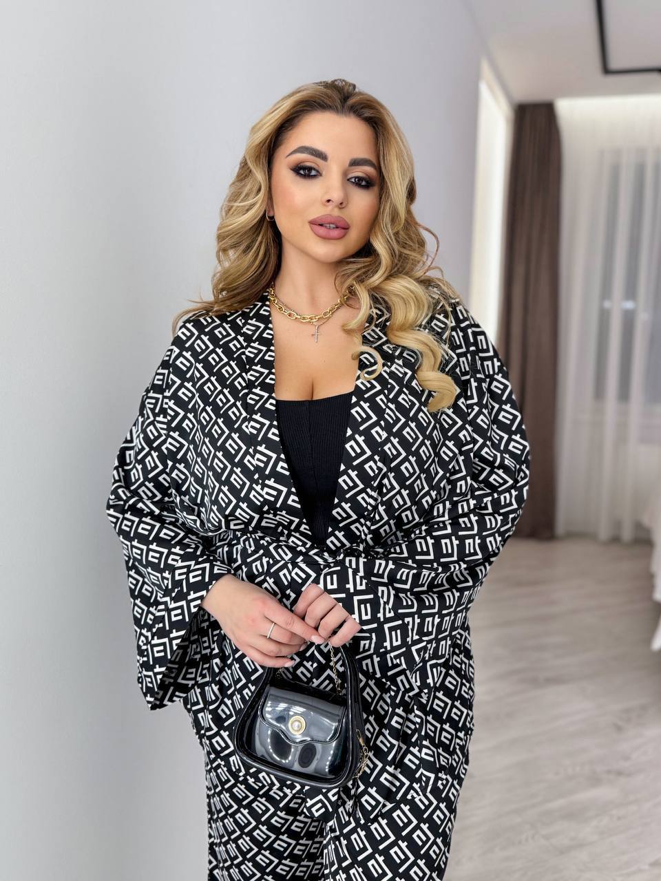 Костюм складається з вільного кардигану та брюк на гнучкій резинці