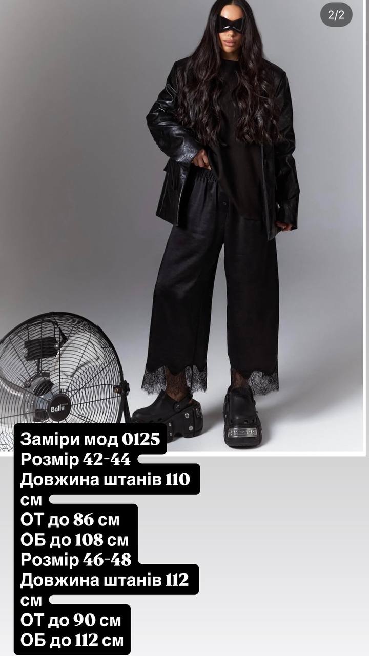 Брюки у піжамному стилі з ажуром