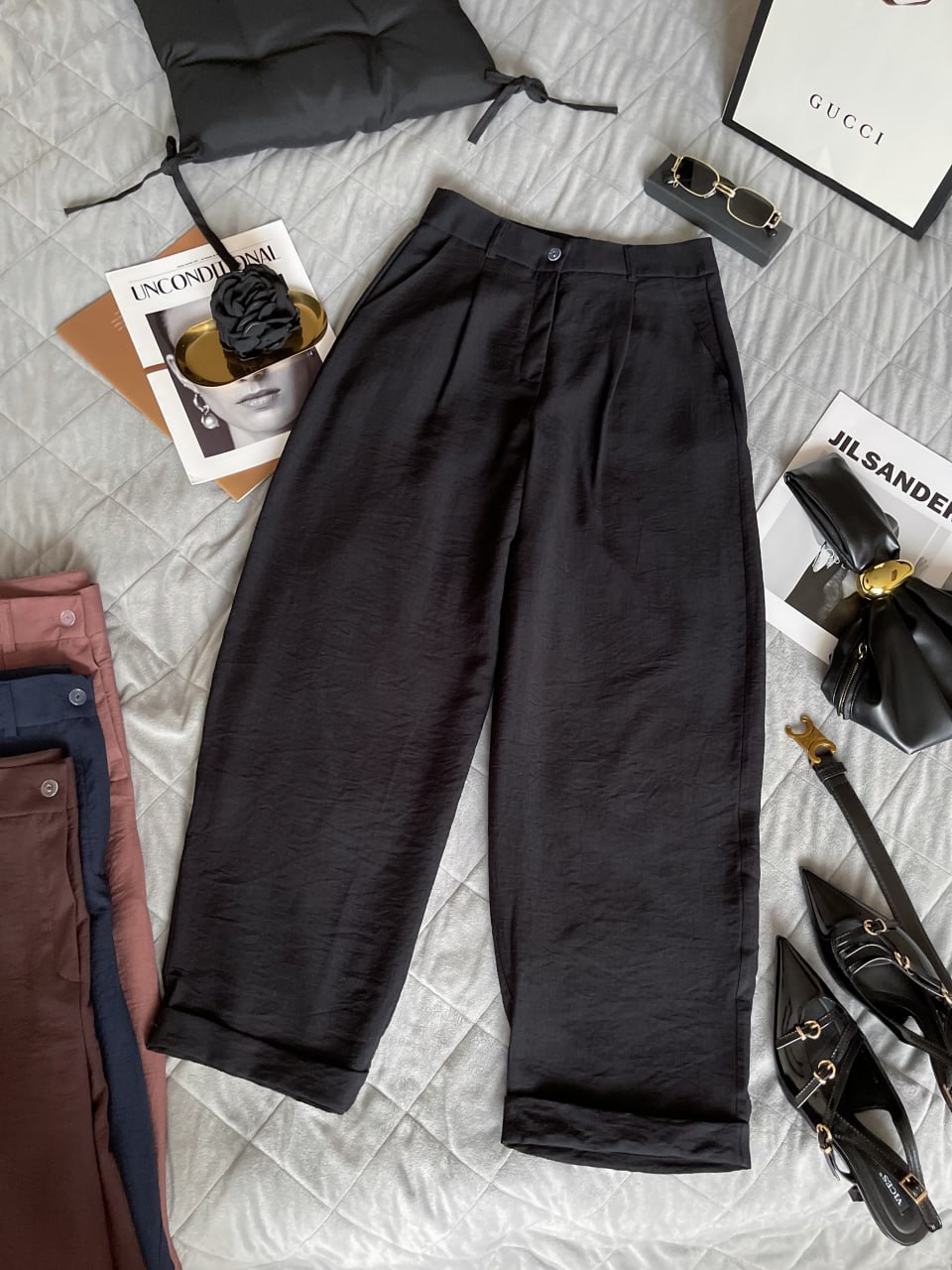 Опис: Комфортні штани крою “баггі” з високою посадкою, виготовлені з льону. Модель на блискавці ,з кишенями ,знизу манжети. Завдяки вільному крою створюють трендовий силует та не сковують рухи-що забезпечує максимальну зручність упродовж дня.