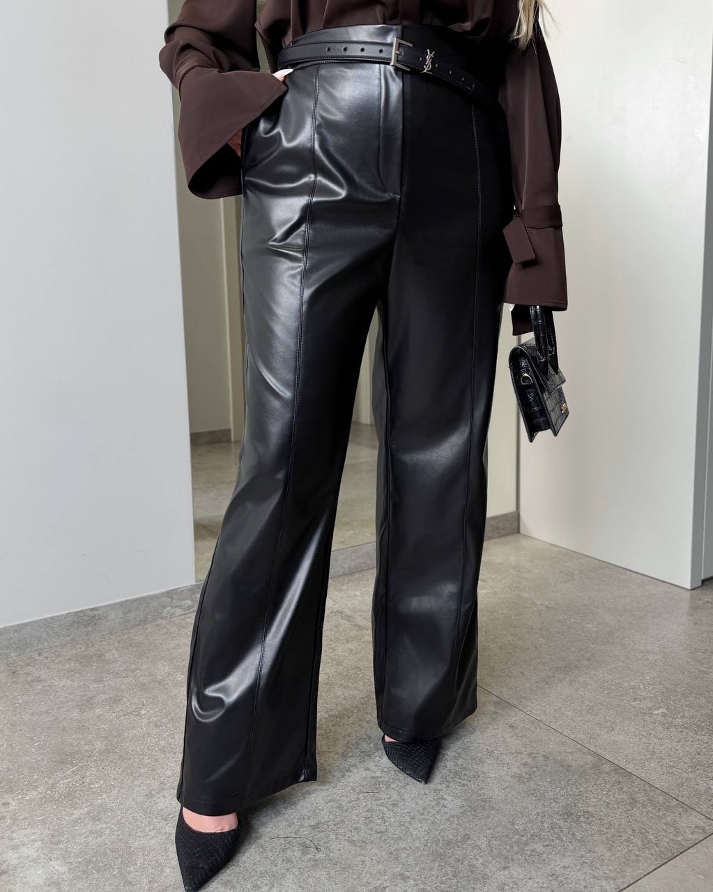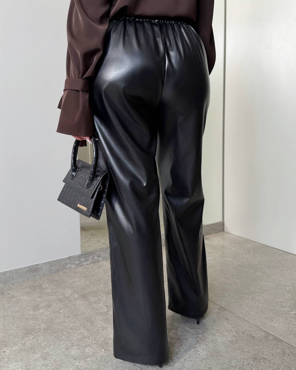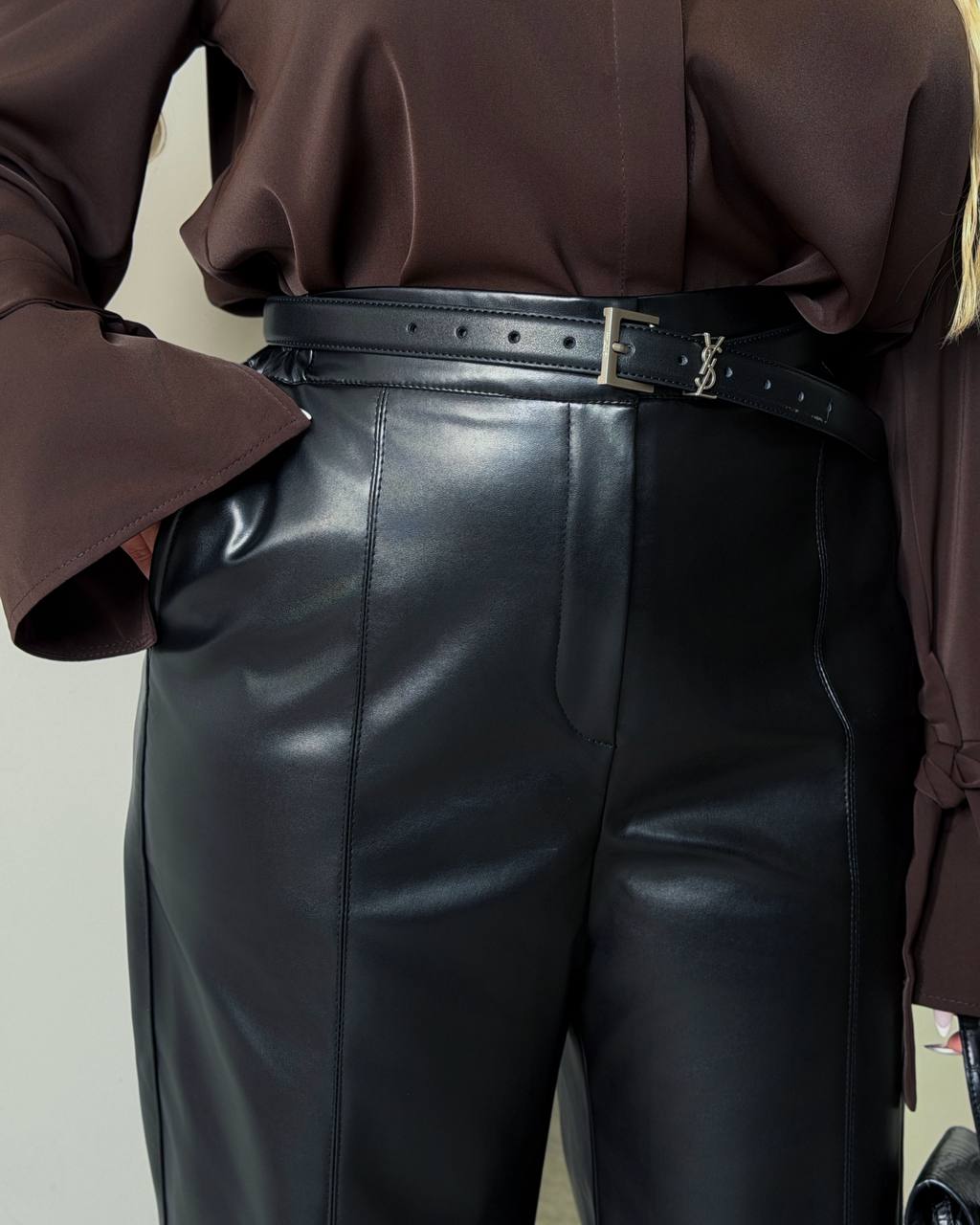 БРЮКИ ПРЯМОГО КРОЮ з еко шкіри на байковій основі
