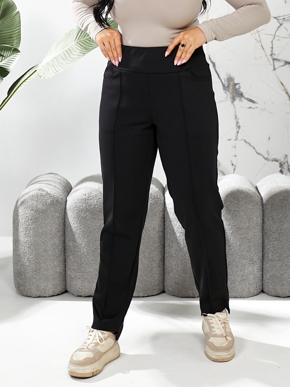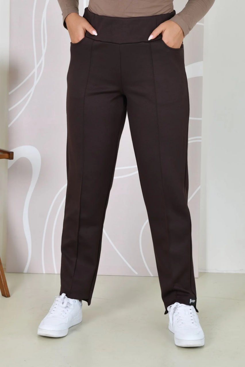 Елегантні брюки прямого покрою симетричної довжини. Висока посадка, невеликі кишені. Виповнені з еластичної тканини відмінної якості.