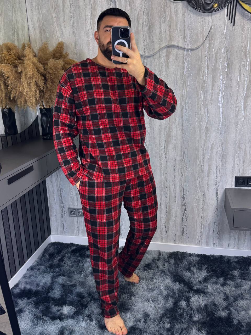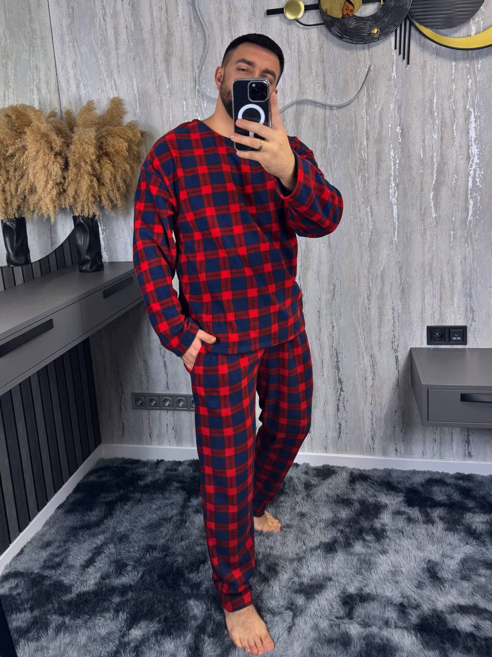 Чоловіча тепла піжама в клітинку-м’яка та зручна , складається з кофти та штанів прямого крою з кишенями. Ідеальна та комфортна для домашнього відпочинку.