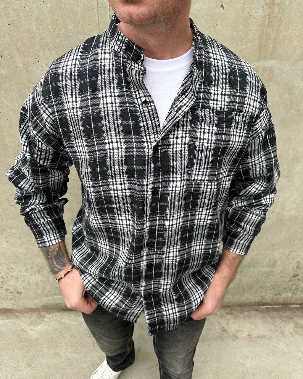 Сорочка в клітинку з коміром-стійкою. М’яка тканина, зручний крій, стильна модель для повсякденного образу.