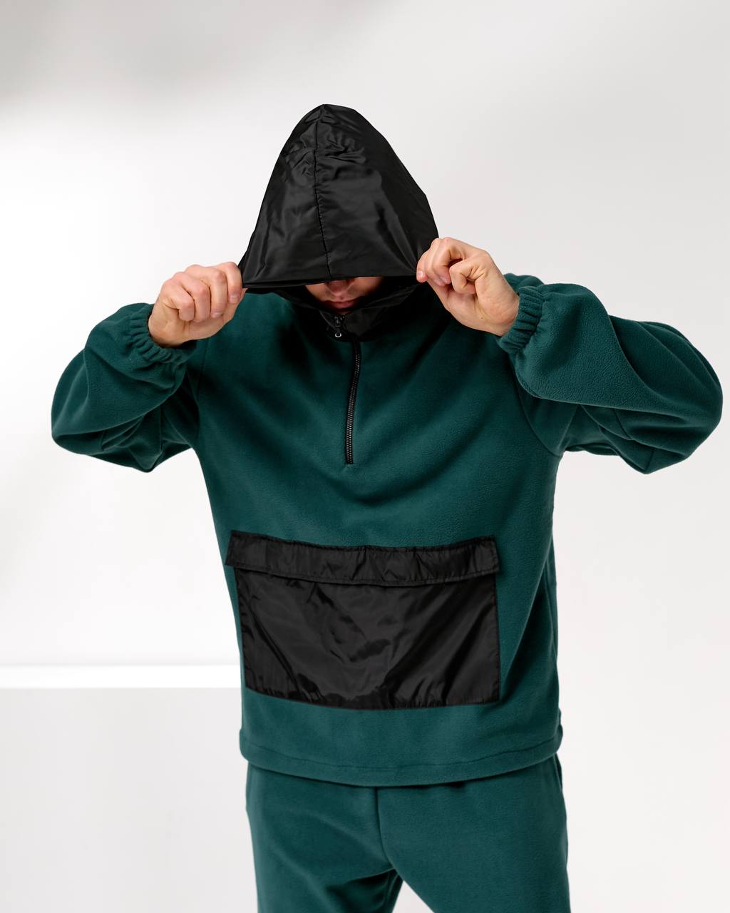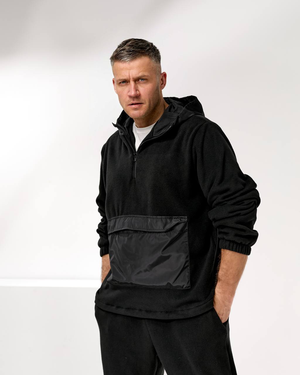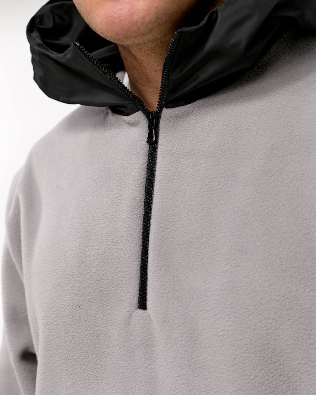 Худі з капюшоном і практичною нагрудною кишенею із щільної плащової тканини — не лише стильний акцент, а й захист від вітру та вологи. Зручна блискавка на горловині додає комфорту в носінні.