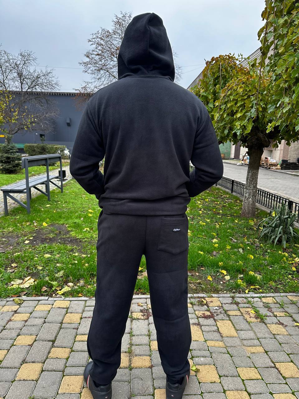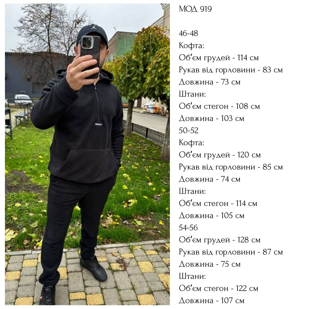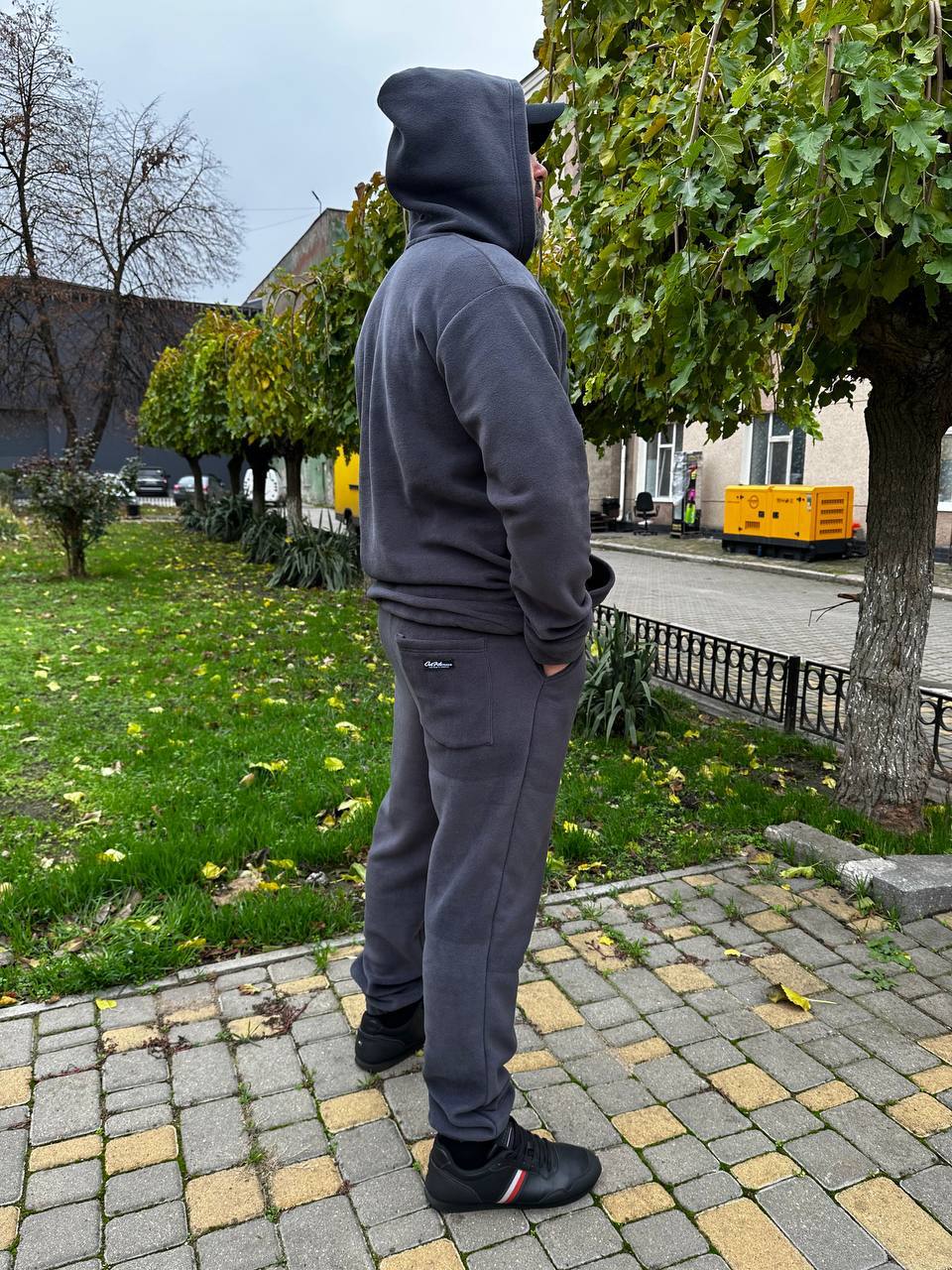 Костюм кофта з капюшоном, низ затягується фіксаторами з обох боків. В штанах спереду та ззаду кишені робочі , в талії шнурок