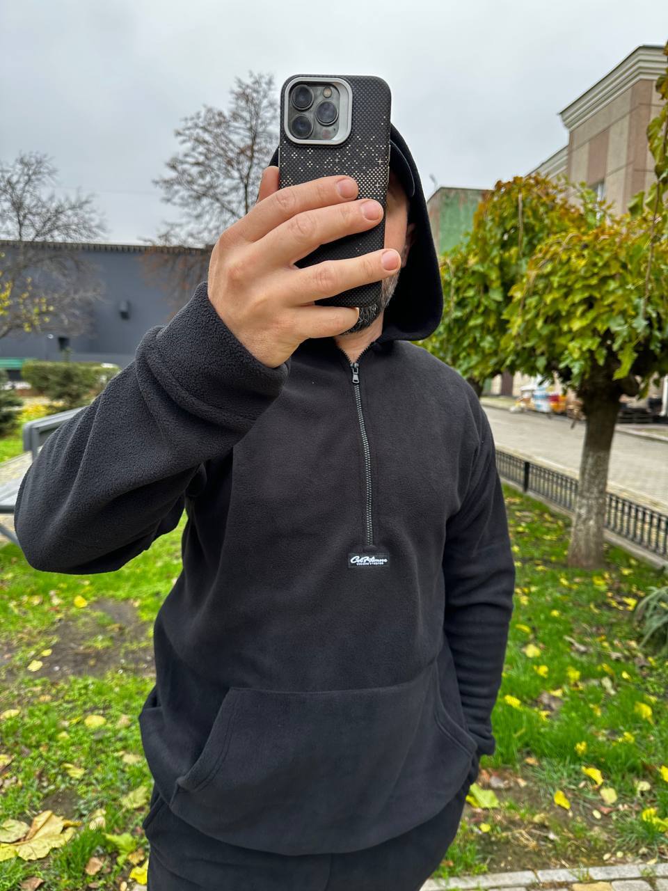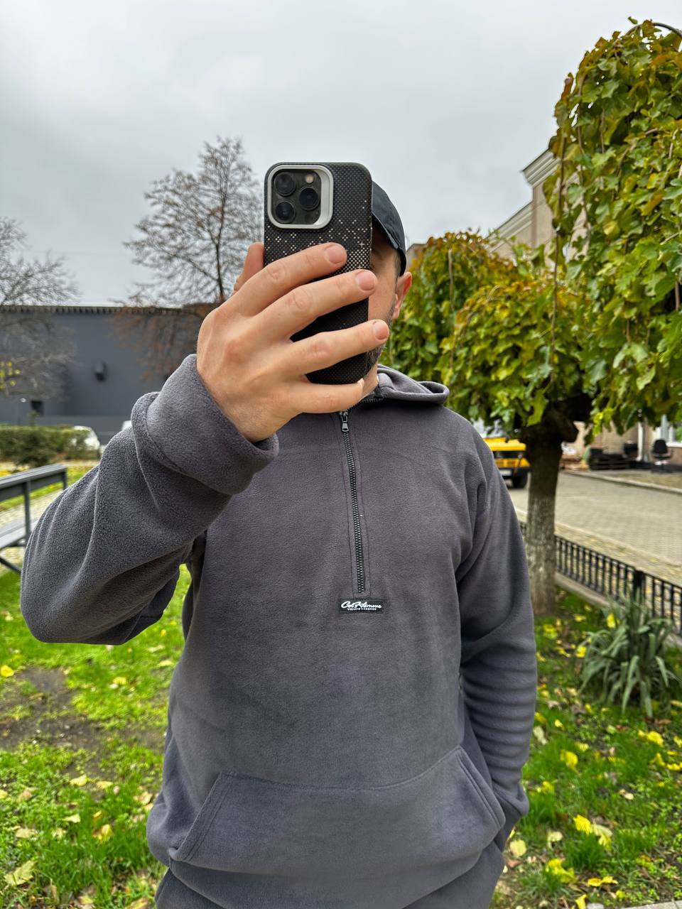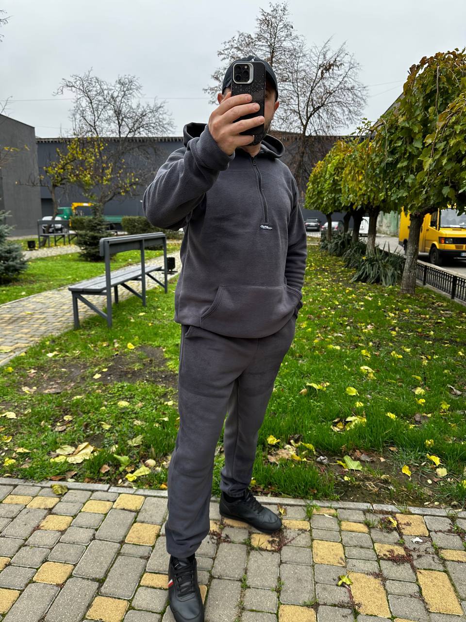 Костюм кофта з капюшоном, низ затягується фіксаторами з обох боків. В штанах спереду та ззаду кишені робочі , в талії шнурок