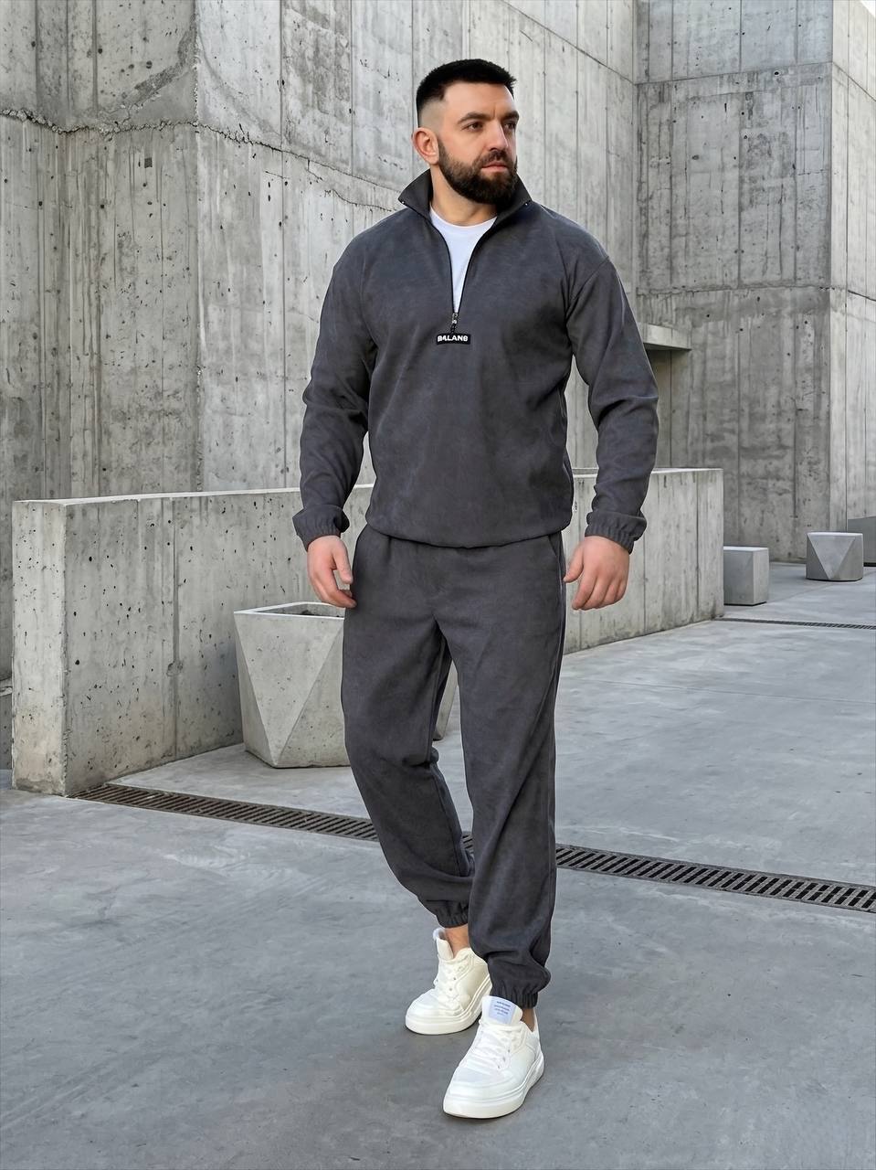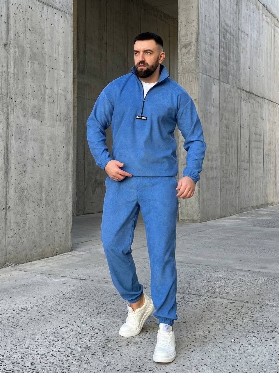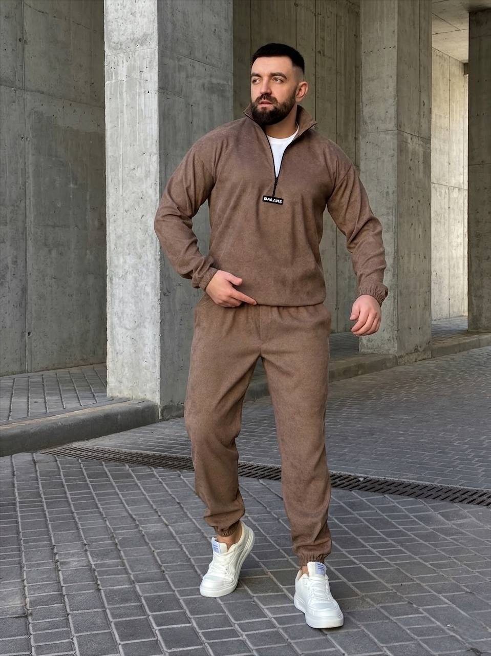 Чоловічий вельветовий костюм: кофта на блискавці до грудей з коміром-стійкою, низ кофти на резинці. Штани з кишенями, низ на резинці. Стильний та зручний варіант на кожен день.