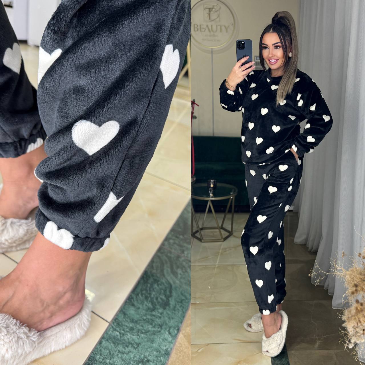 Теплий домашній кастюм з двухстороньоі махри принт