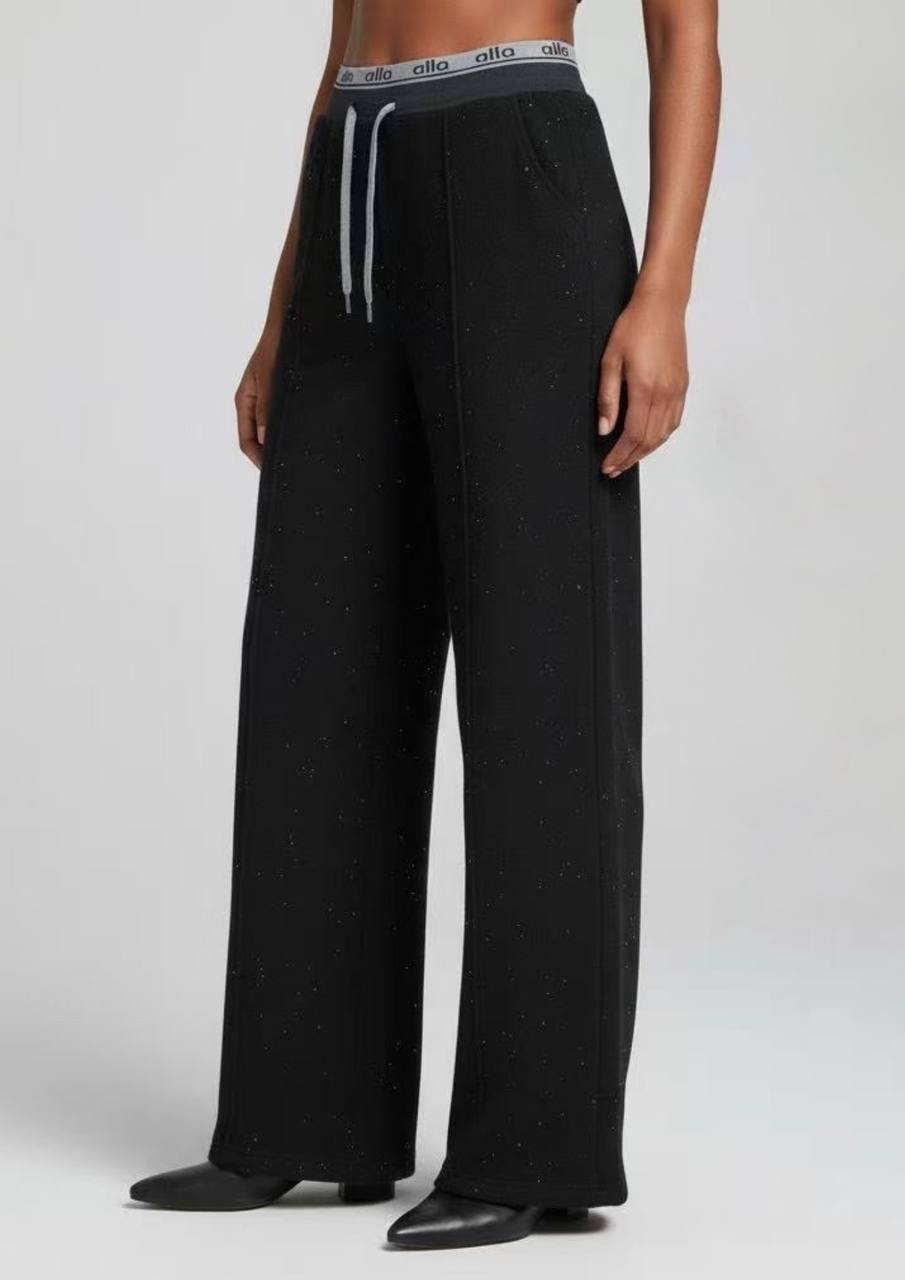Ефектна модель wide leg, декорована дрібними камінцями, які додають образу блиску та стильного акценту.