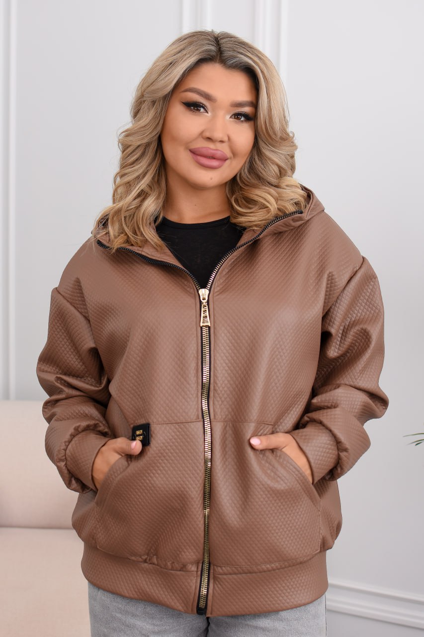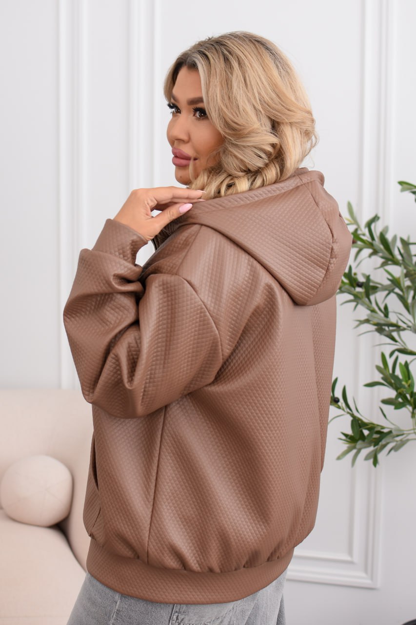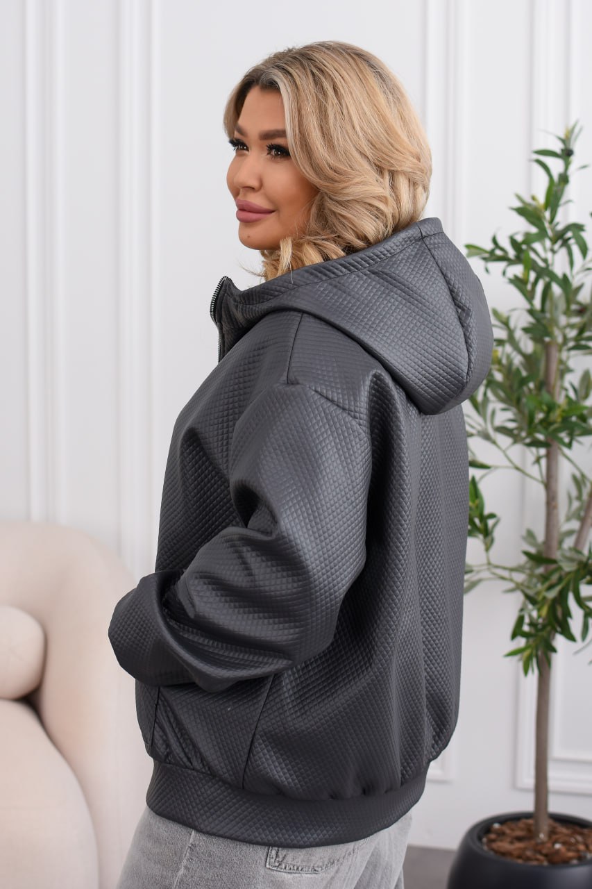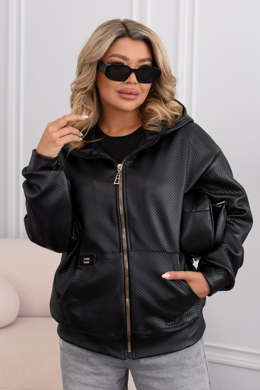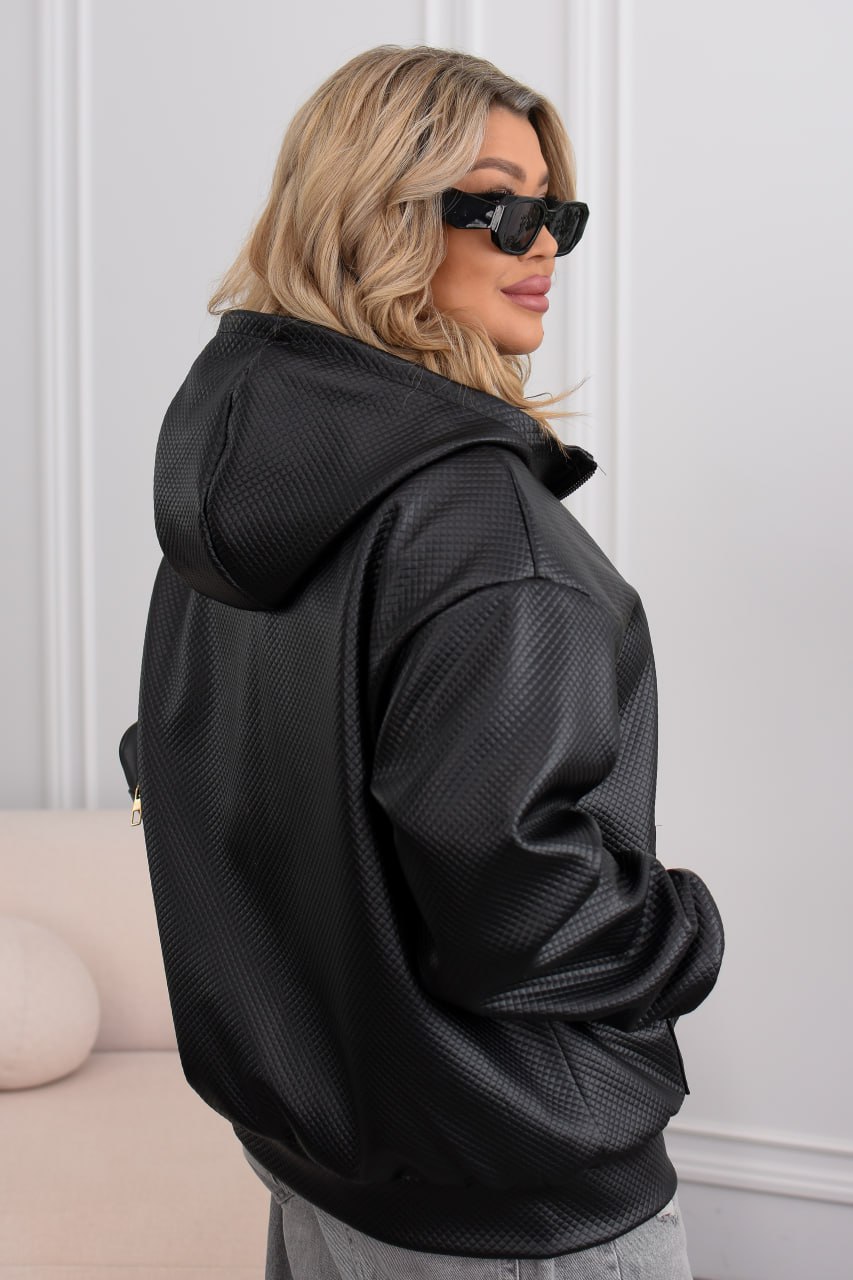 Демісезонна куртка-бомбер must have: капюшон, водонепроникна еко-шкіра, два накладні кармани, підкладка. Мінімалізм, що тримає форму та рятує від вітру й дощу. ✨