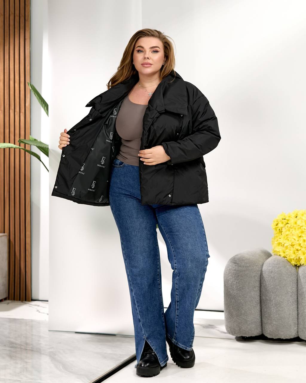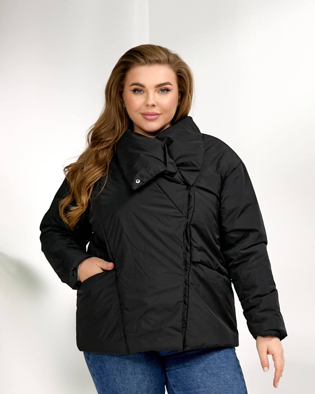 Комір-трансформер із фіксацією на кнопках. Може носитися у відкритому або закритому вигляді, трансформуючись залежно від погоди та стилю. Забезпечує додатковий захист від вітру, зберігаючи акуратну форму та комфорт при носінні.
