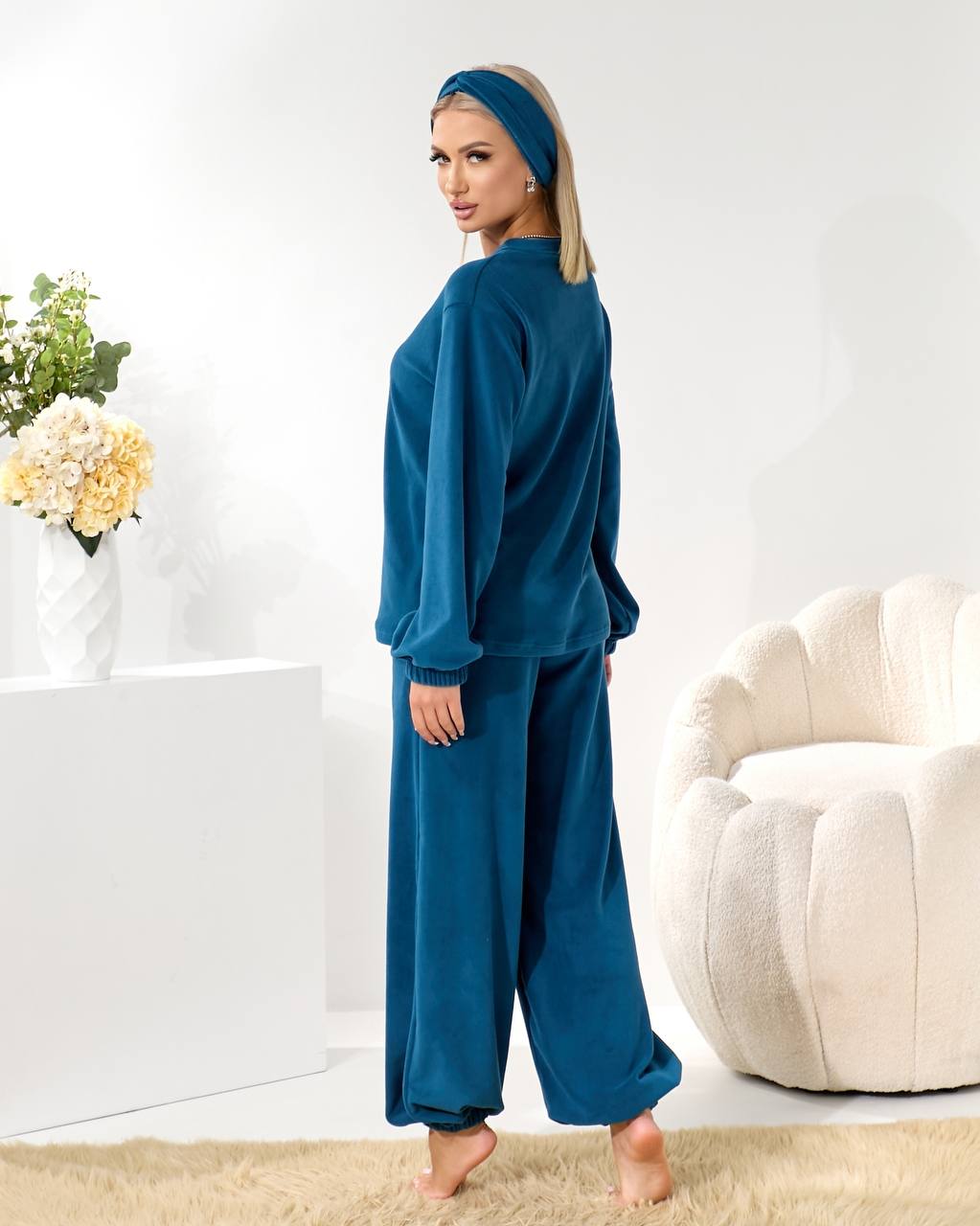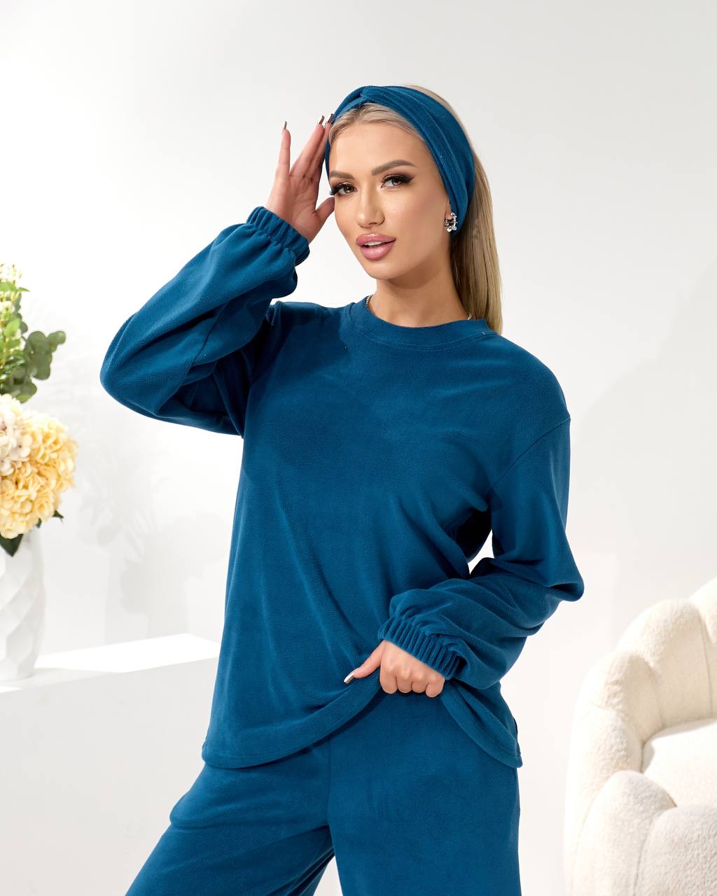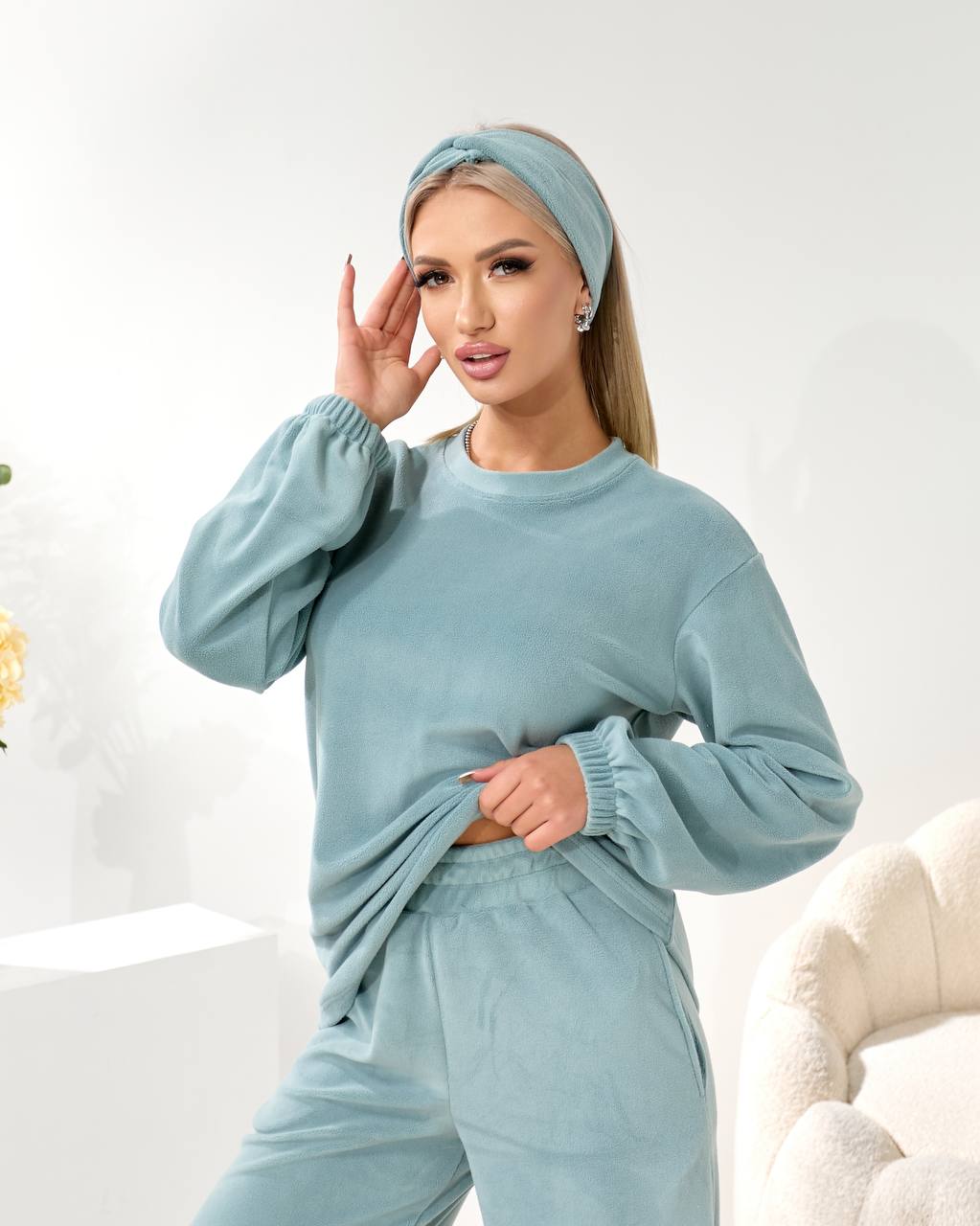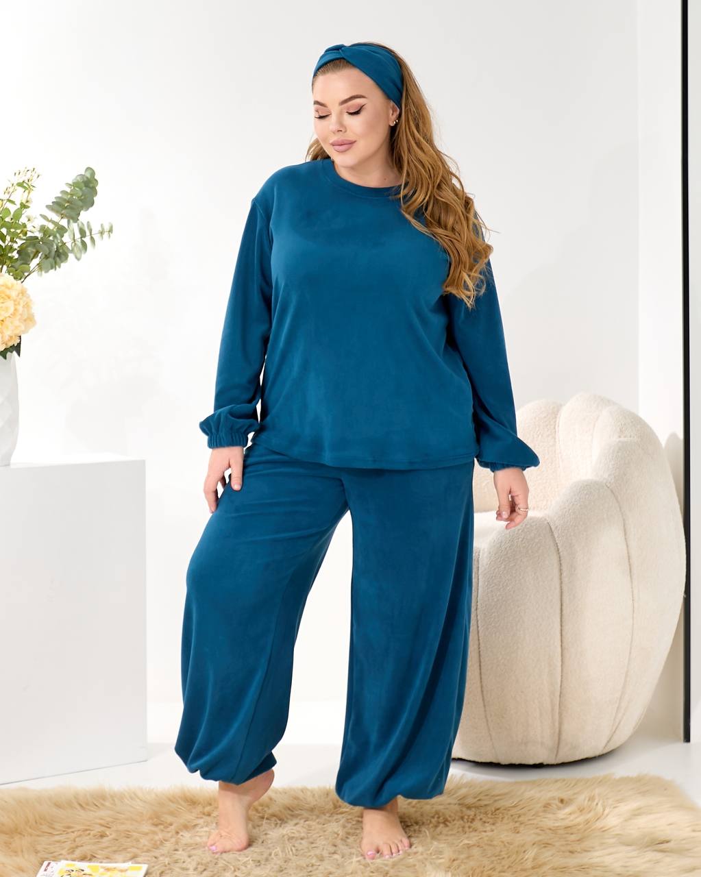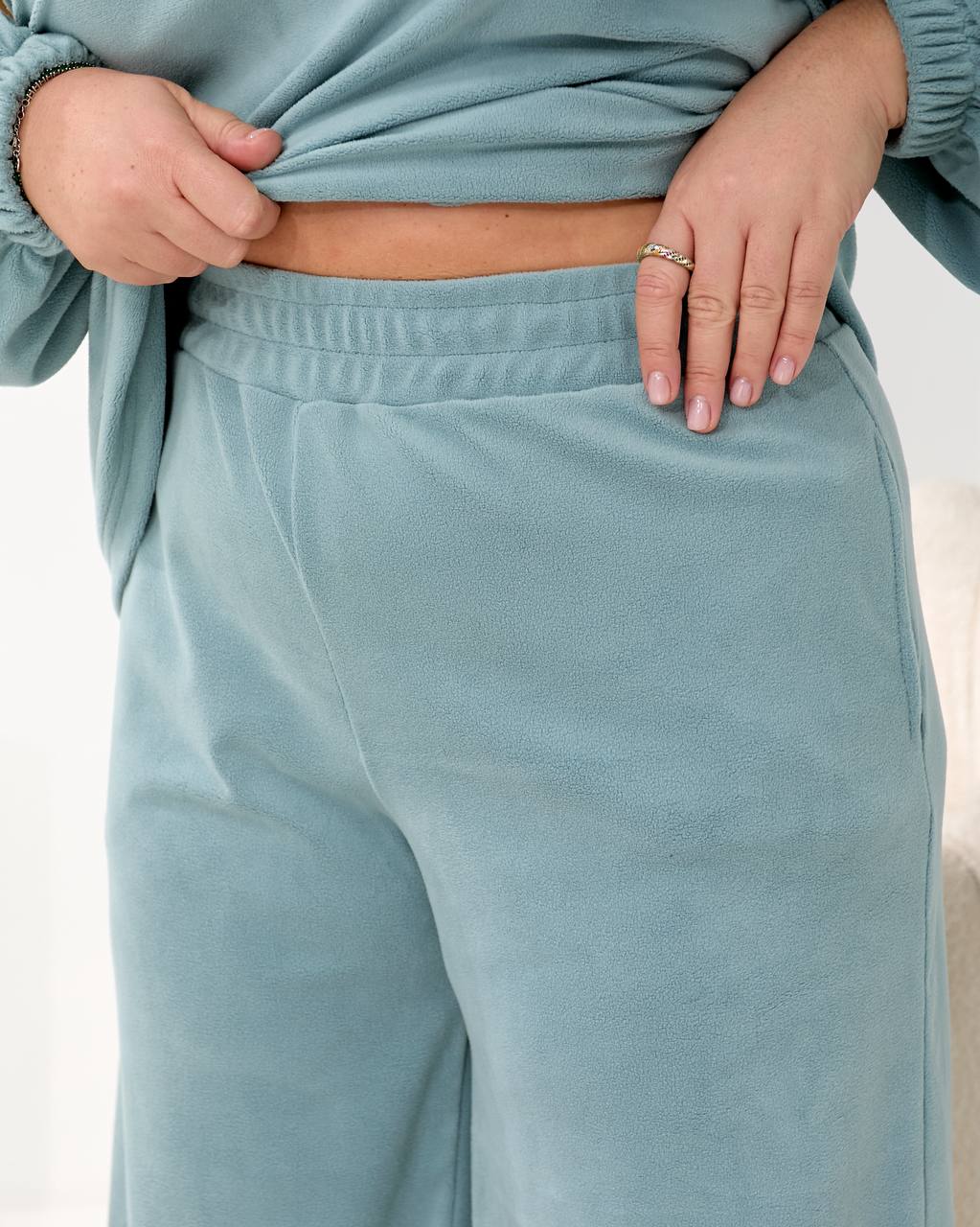 Мʼякий та теплий домашній костюм , кофта класична , рукав на гумці .Штани «Аладіни» з кишенями, низ брюк та пояс на гумці.