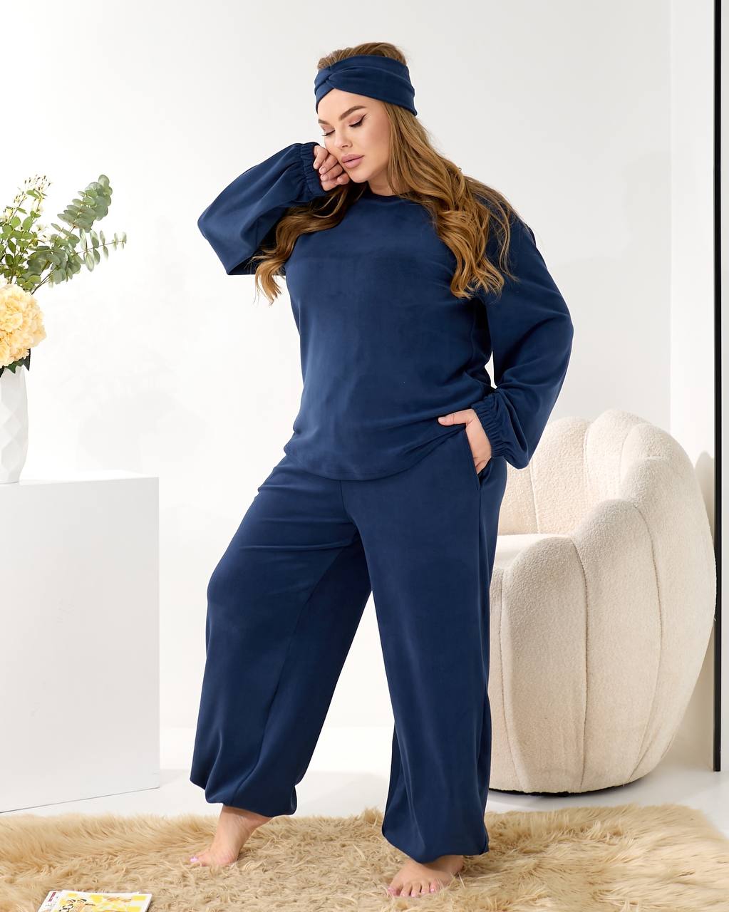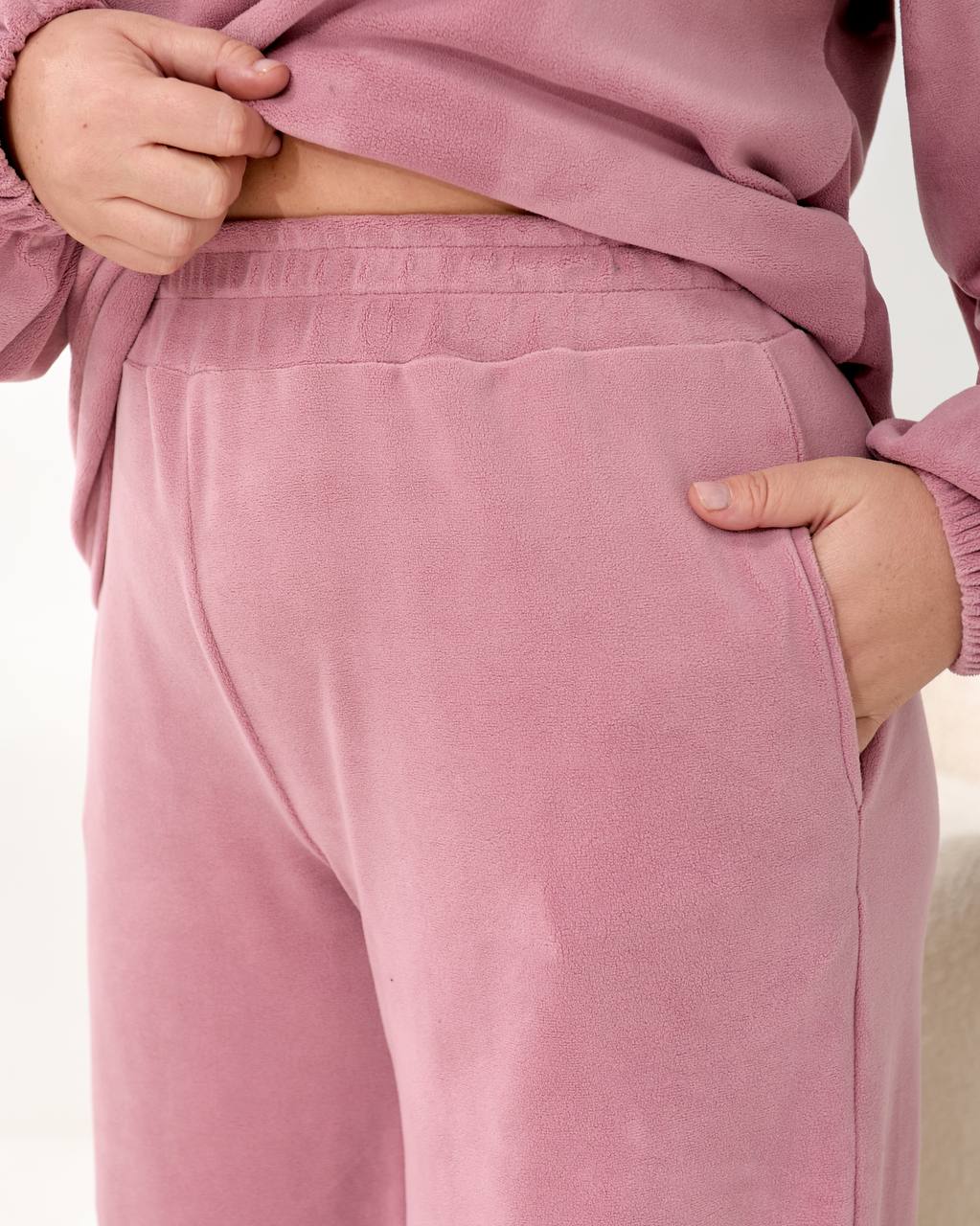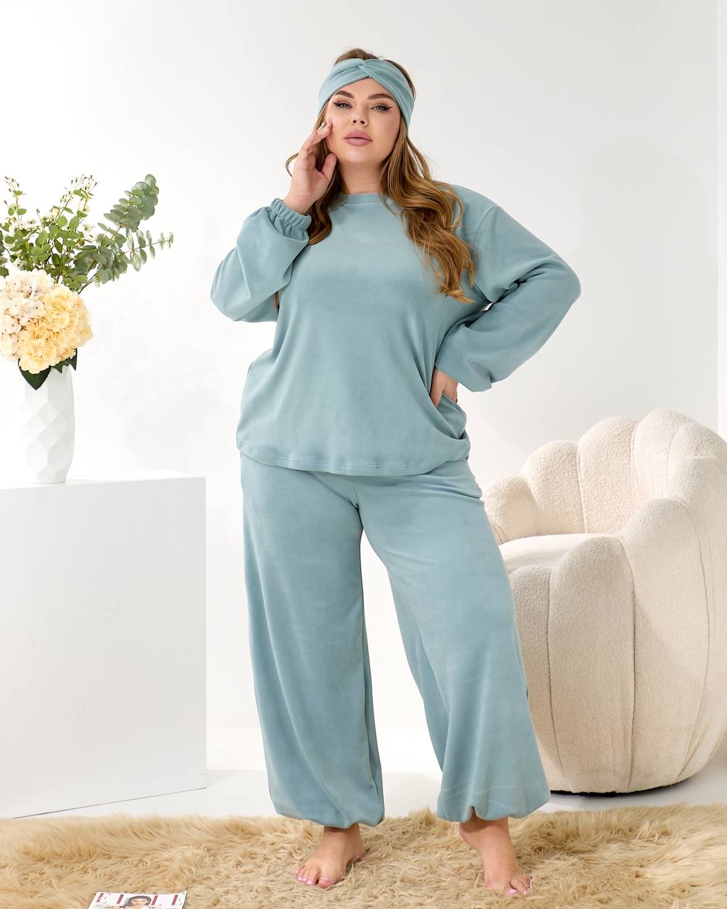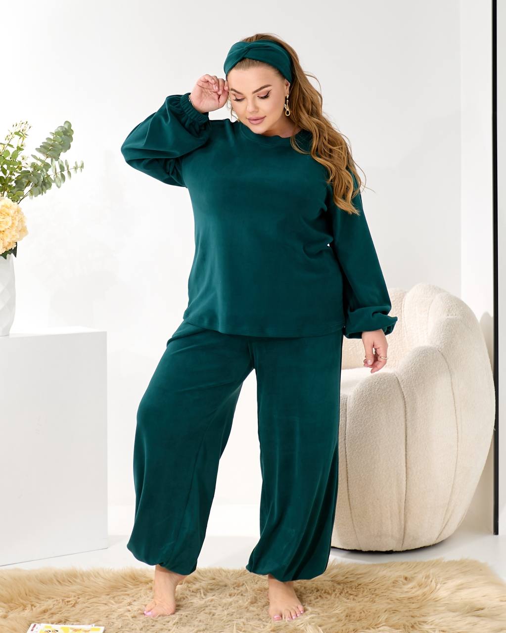 Мʼякий та теплий домашній костюм , кофта класична , рукав на гумці .Штани «Аладіни» з кишенями, низ брюк та пояс на гумці.