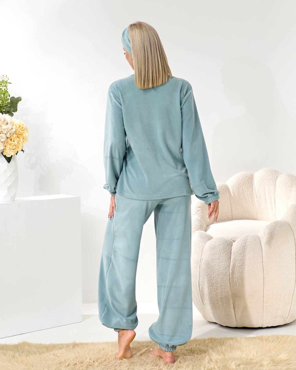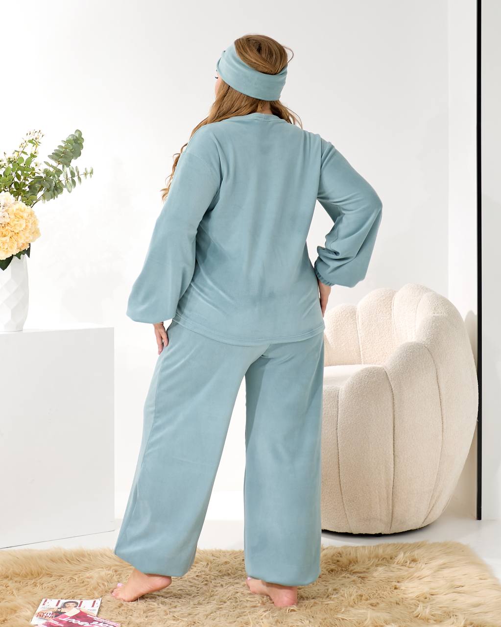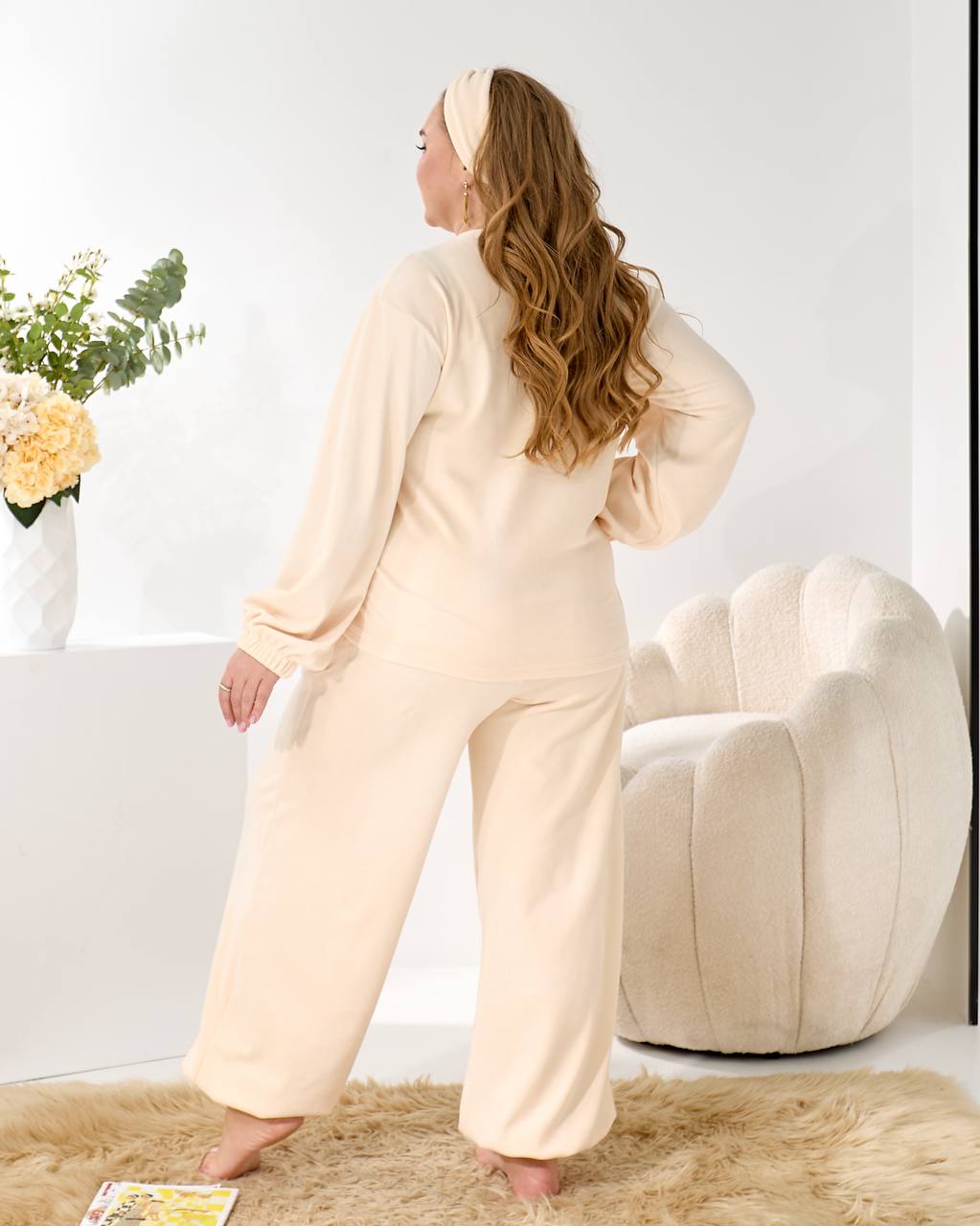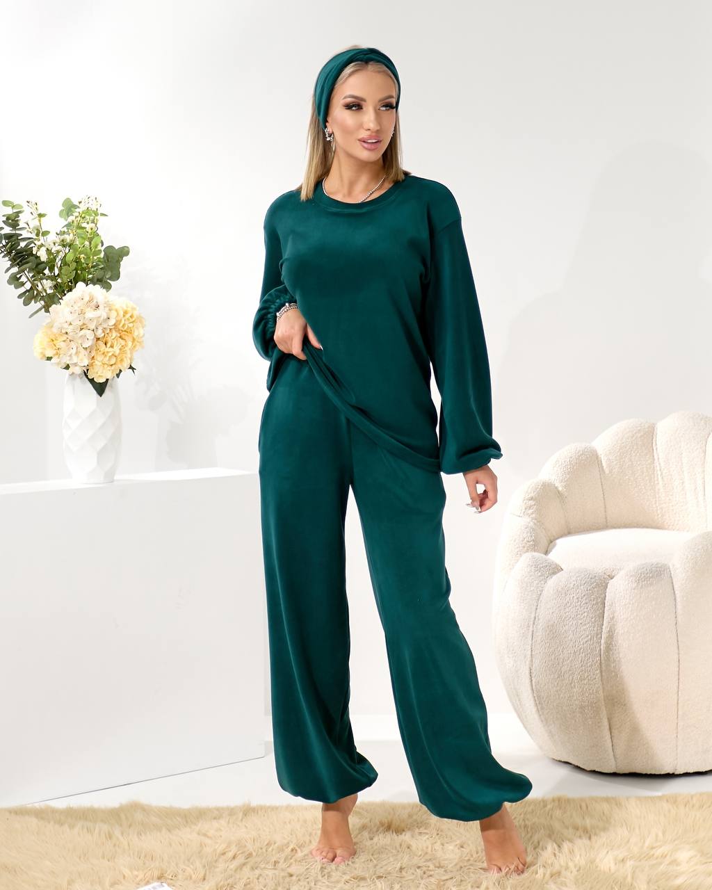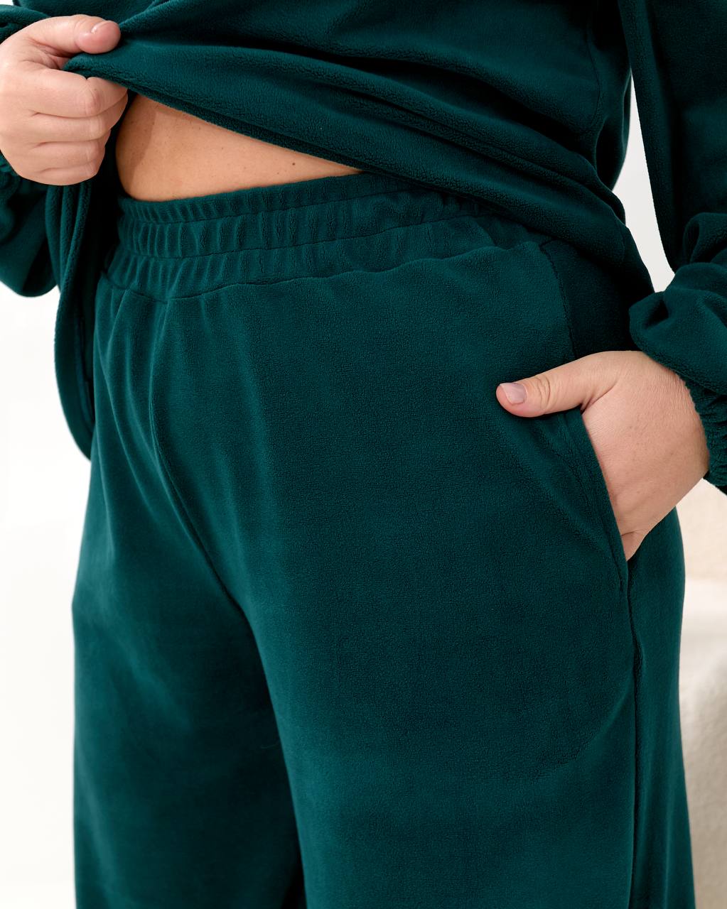 Мʼякий та теплий домашній костюм , кофта класична , рукав на гумці .Штани «Аладіни» з кишенями, низ брюк та пояс на гумці.
