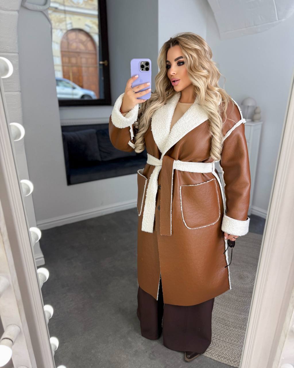 Матеріал: якісна турецкая екошкіра з імітацією натуральної шкіри+ штучне хутро ягня. М’яка, гарна . Ручне прання при Температурі 30 градусів.