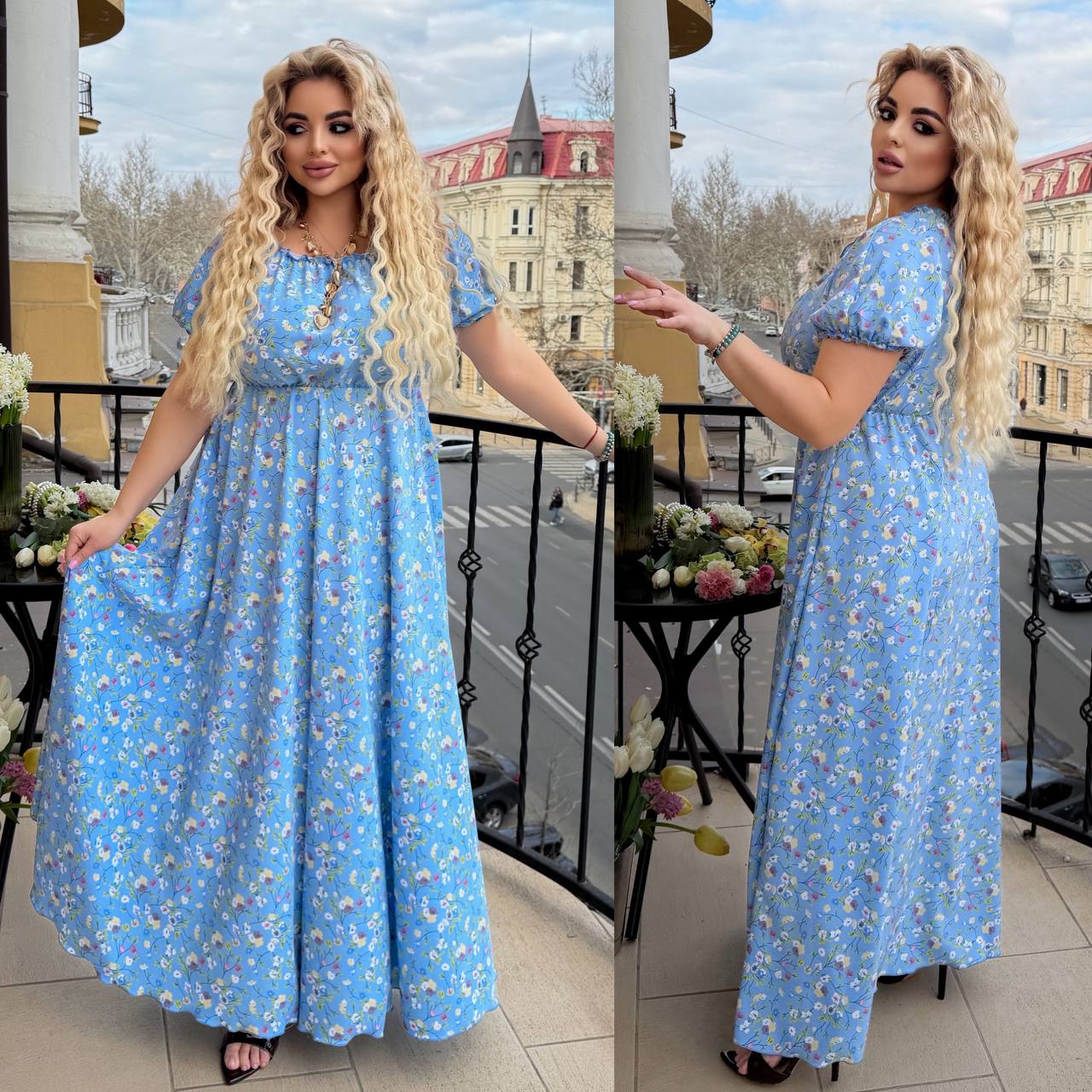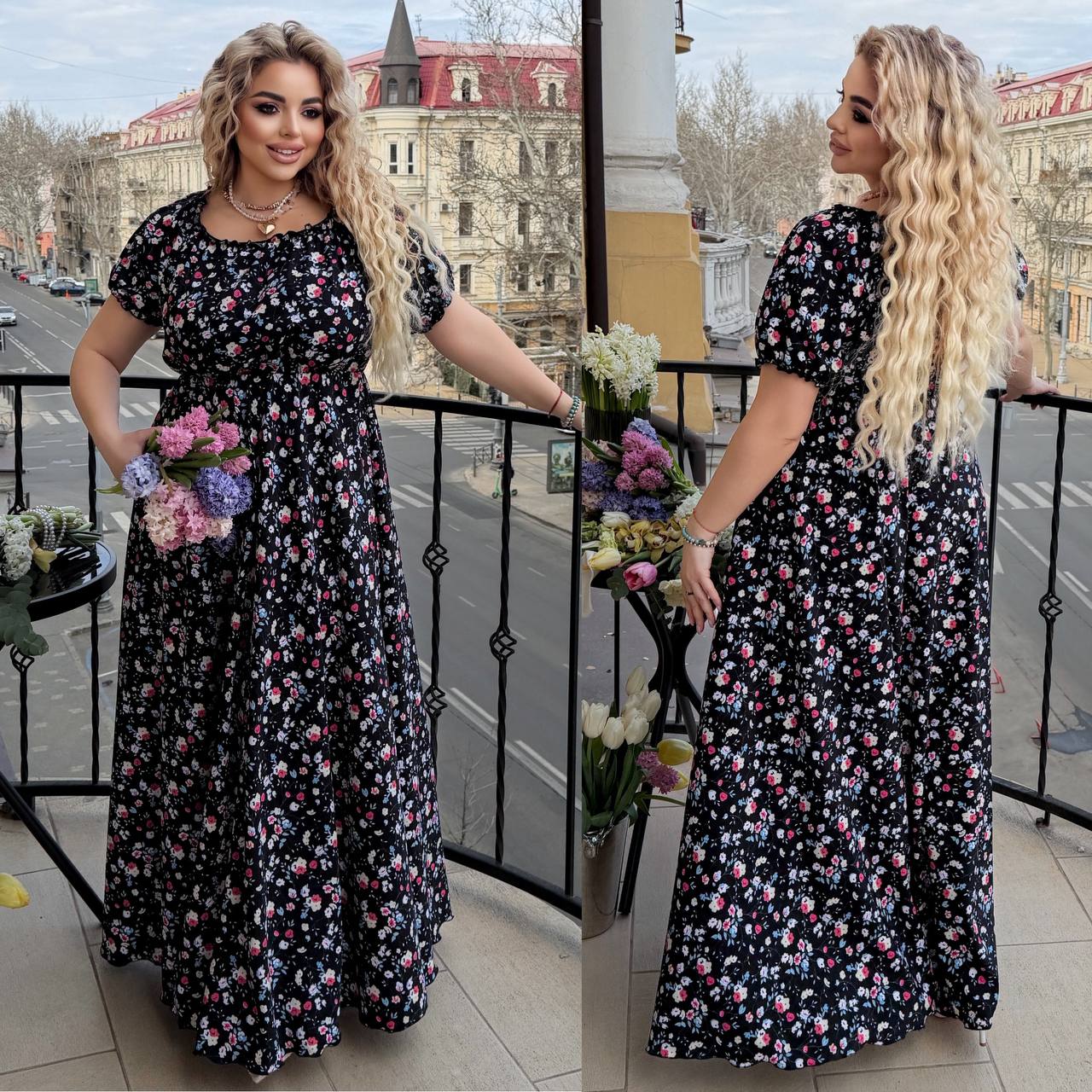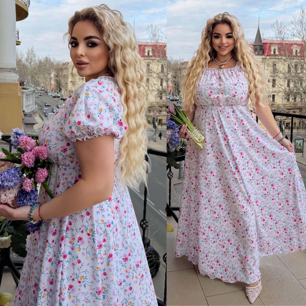 Легка повітряна сукня у довжині максі. Приємна тканина, яка красиво драпірується. Ніжний квітковий принт додає образу жіночності та свіжості.