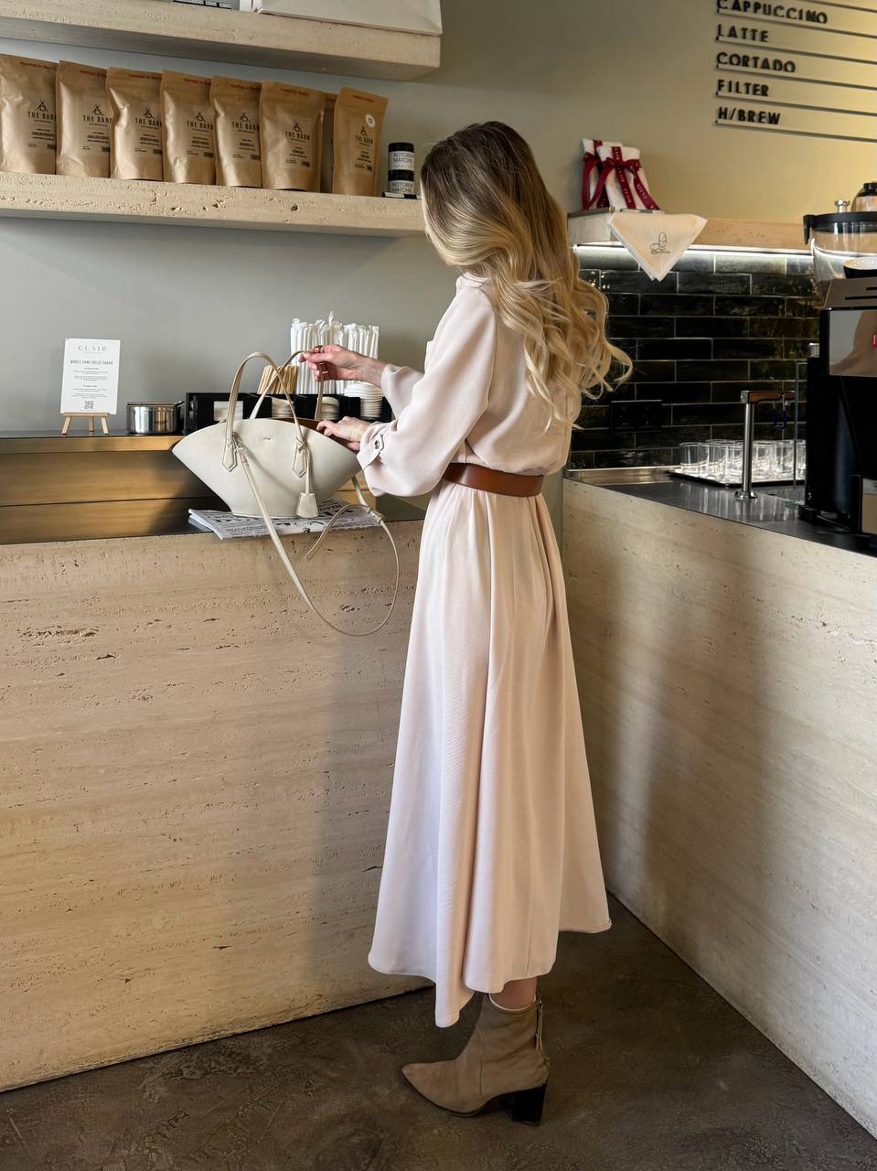 Сукня з довгим рукавом, який можно регулювати, застібається на ґудзики