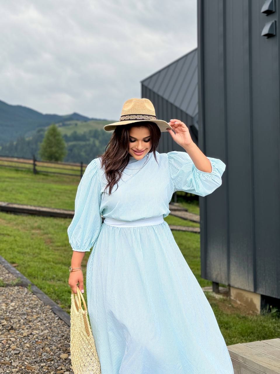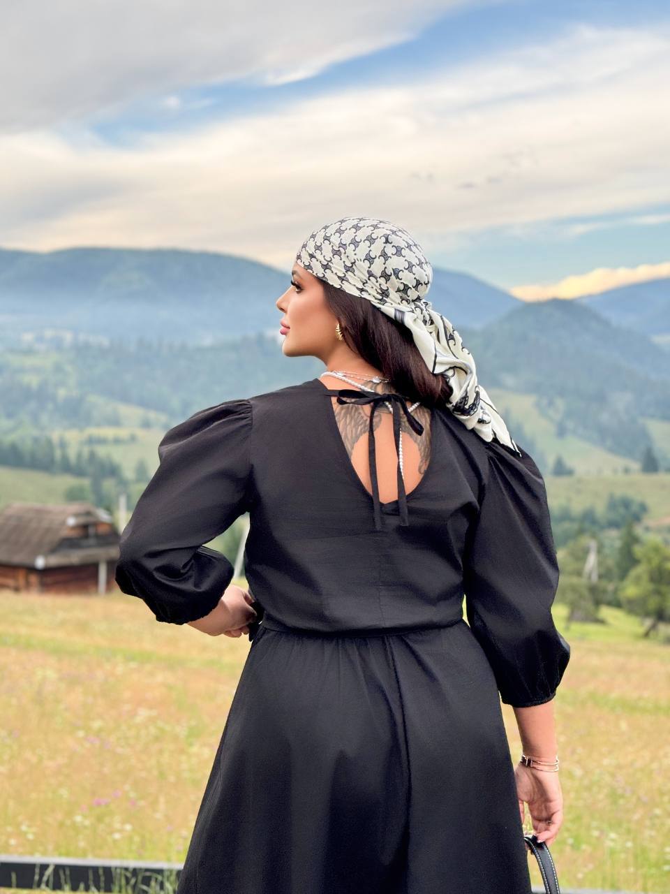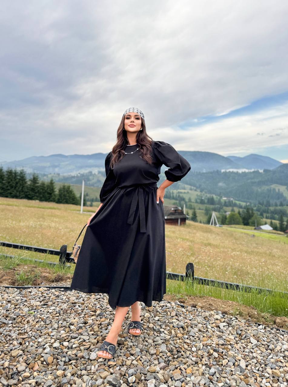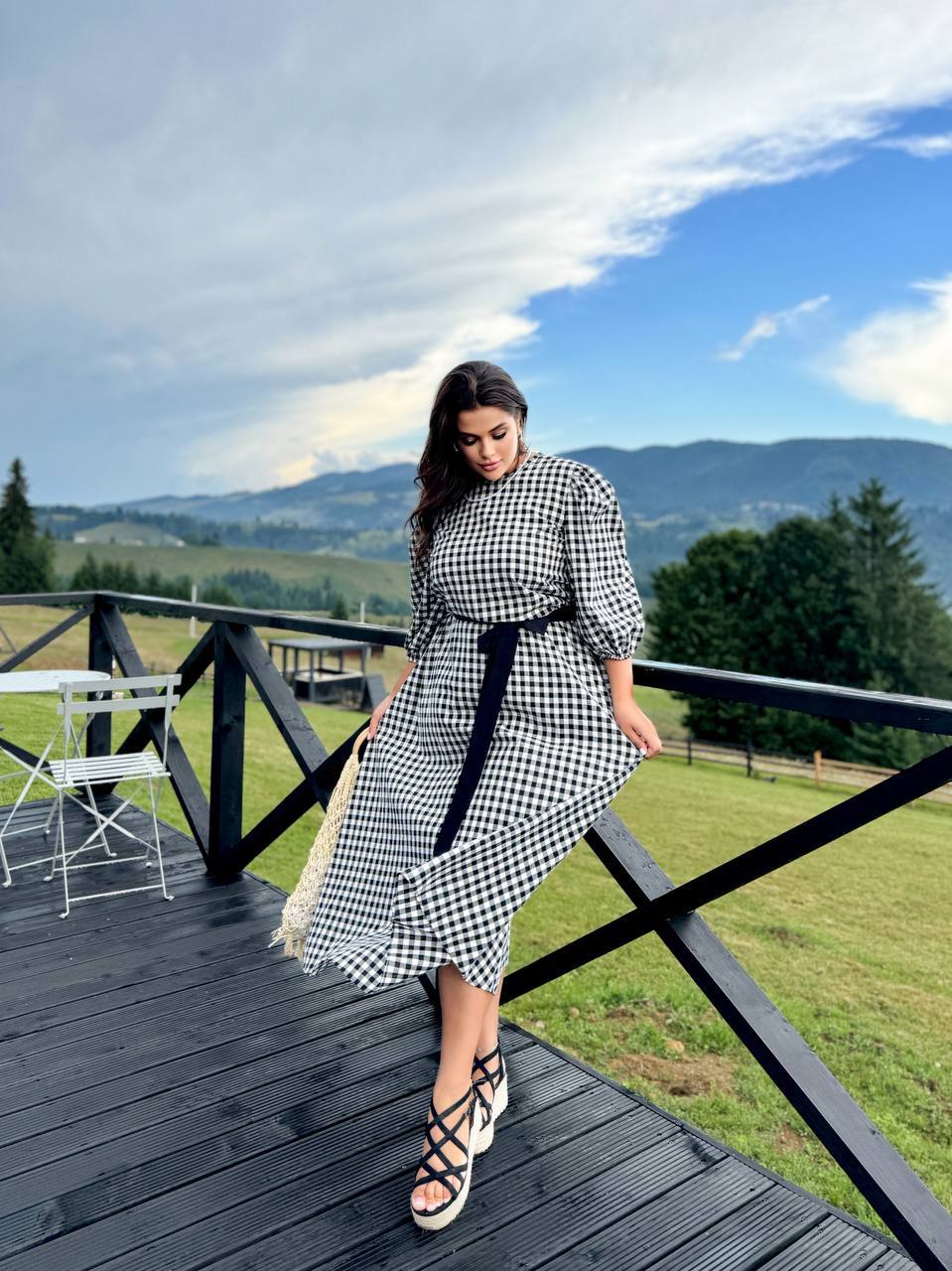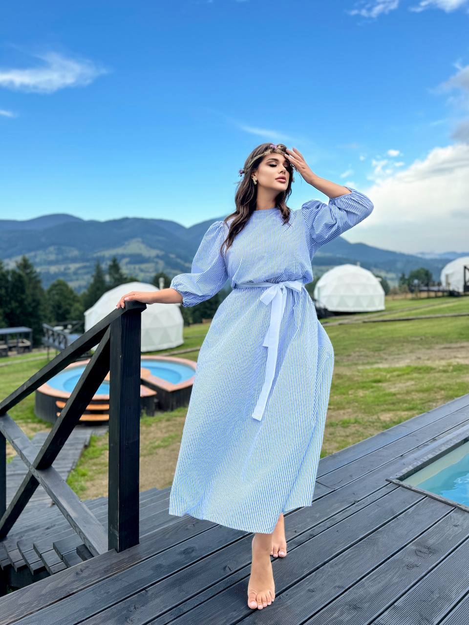 Легка, стильна та дуже комфортна сукня з натуральної бавовни! Вільний крій, об’ємні рукава-ліхтарики, пояс в комплекті — ідеально сідає на будь-яку фігуру.