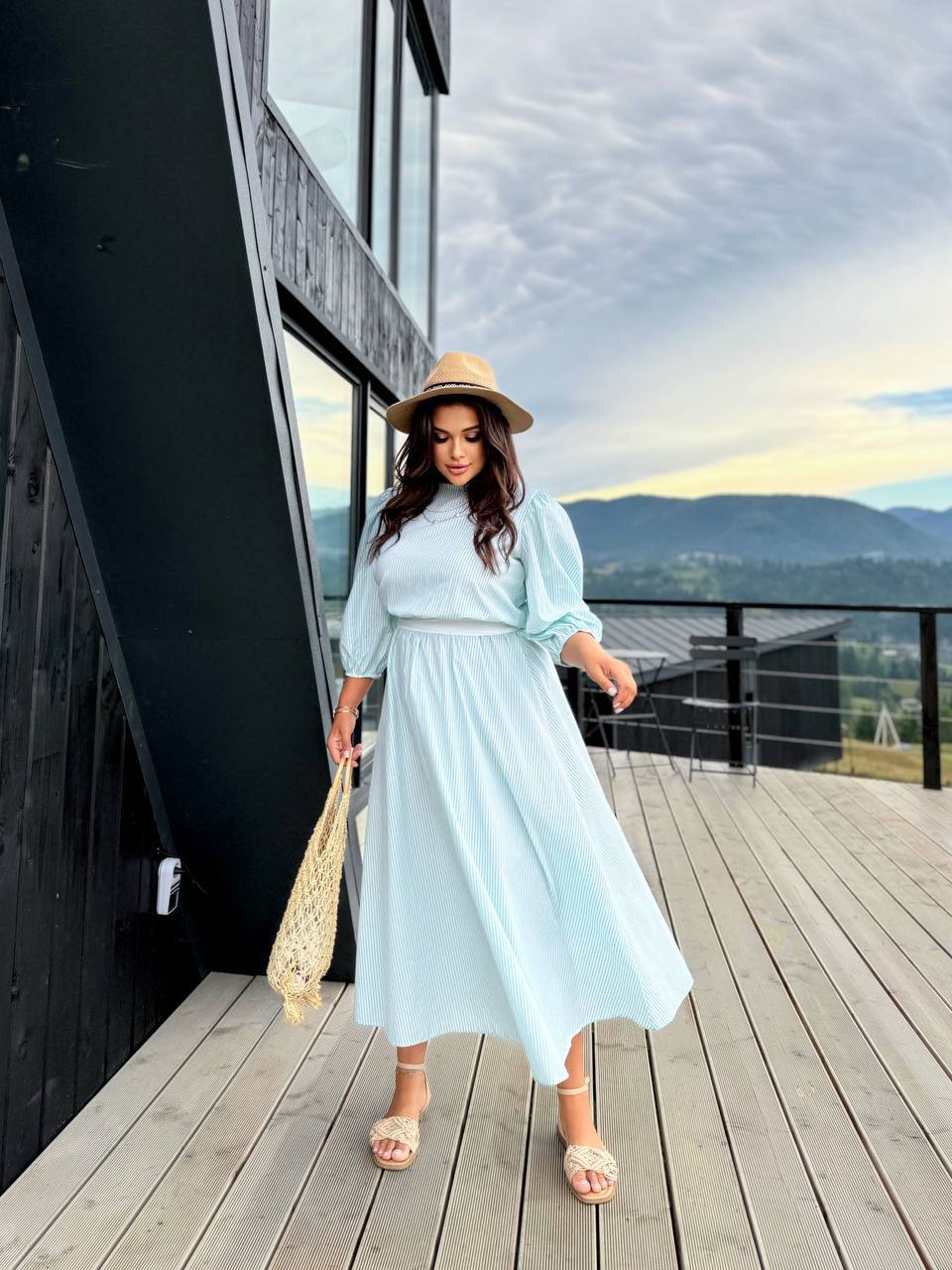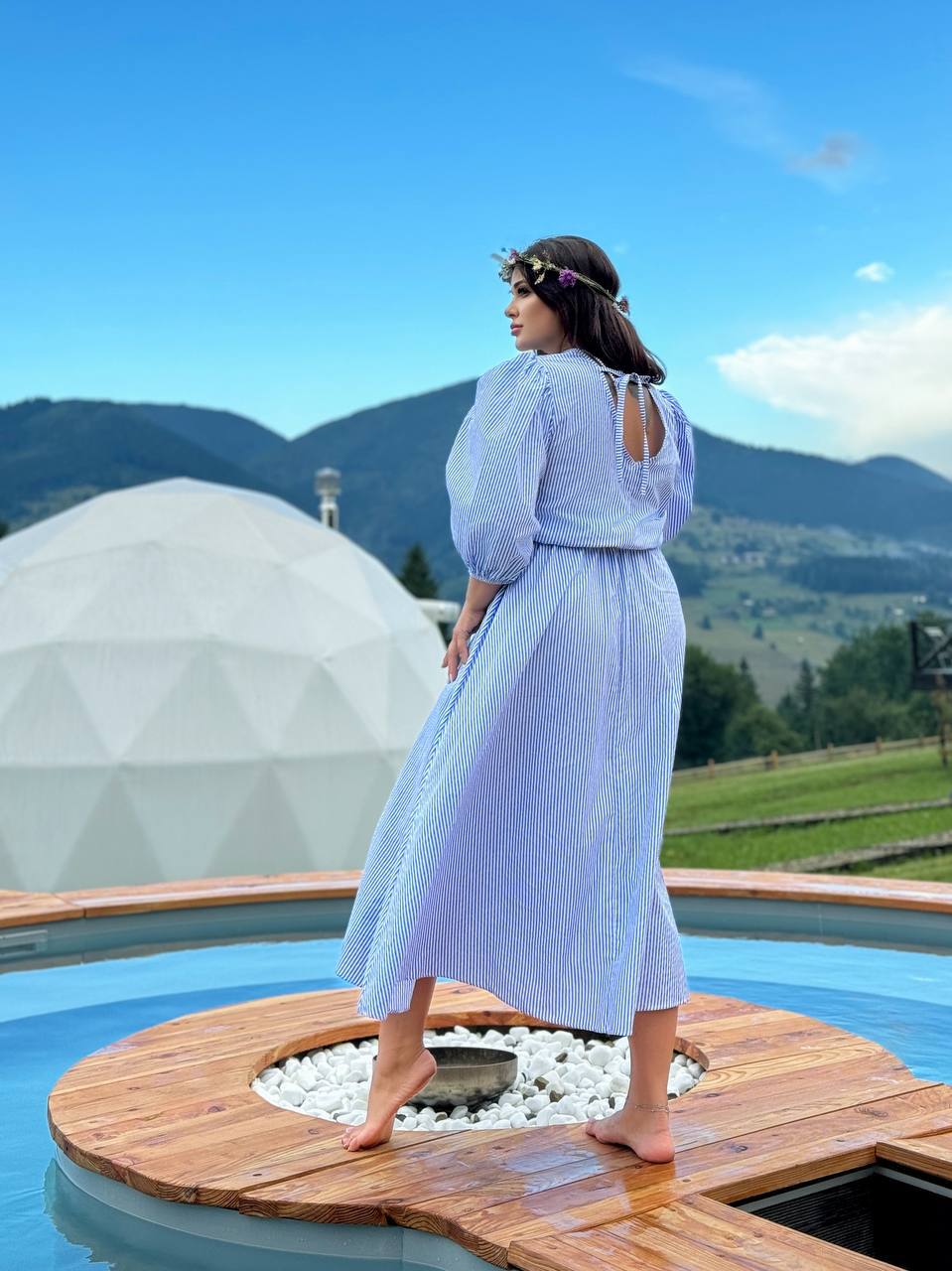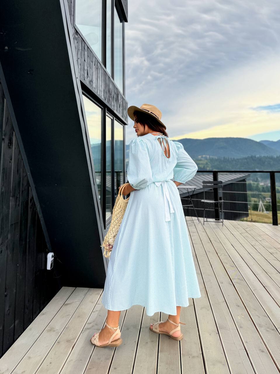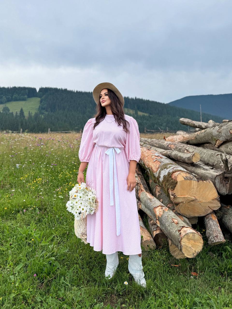Легка, стильна та дуже комфортна сукня з натуральної бавовни! Вільний крій, об’ємні рукава-ліхтарики, пояс в комплекті — ідеально сідає на будь-яку фігуру.