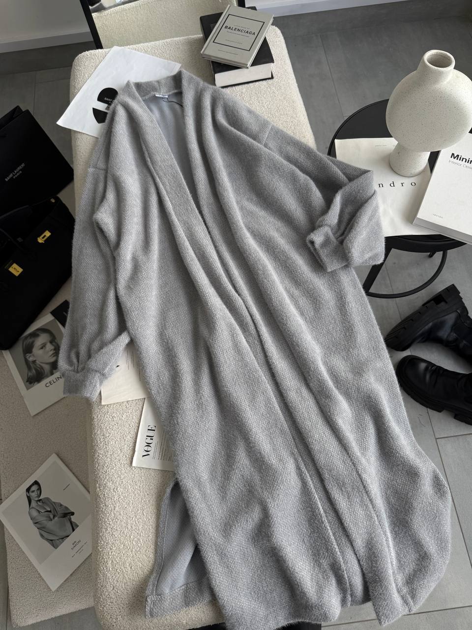 Кардиган: Модель: 2085 Матеріал: альпака Колір: молочний, чорний, мокко, сірий, світлий беж Розміри: S-XL(Універсал) Must have цієї осені, твій ідеальний кардиган. Приємна, мʼяка тканина, широкий oversize крій, з поясом, з обох боків розрізи. ФОТО РЕАЛ