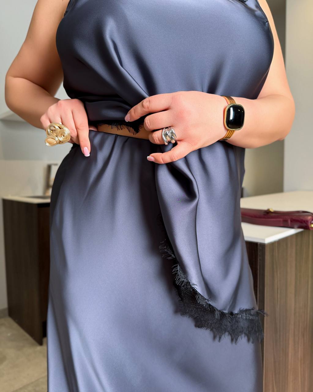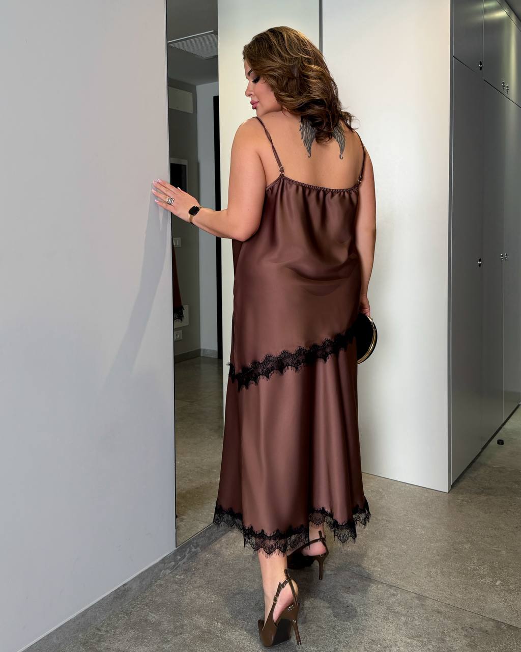 Модель виконана з щільного шовку Дабл-Armani з благородним легким блиском, який красиво струмує по фігурі, чудово тримає форму та не просвічується. Тканина приємна до тіла й дарує комфорт у носінні.