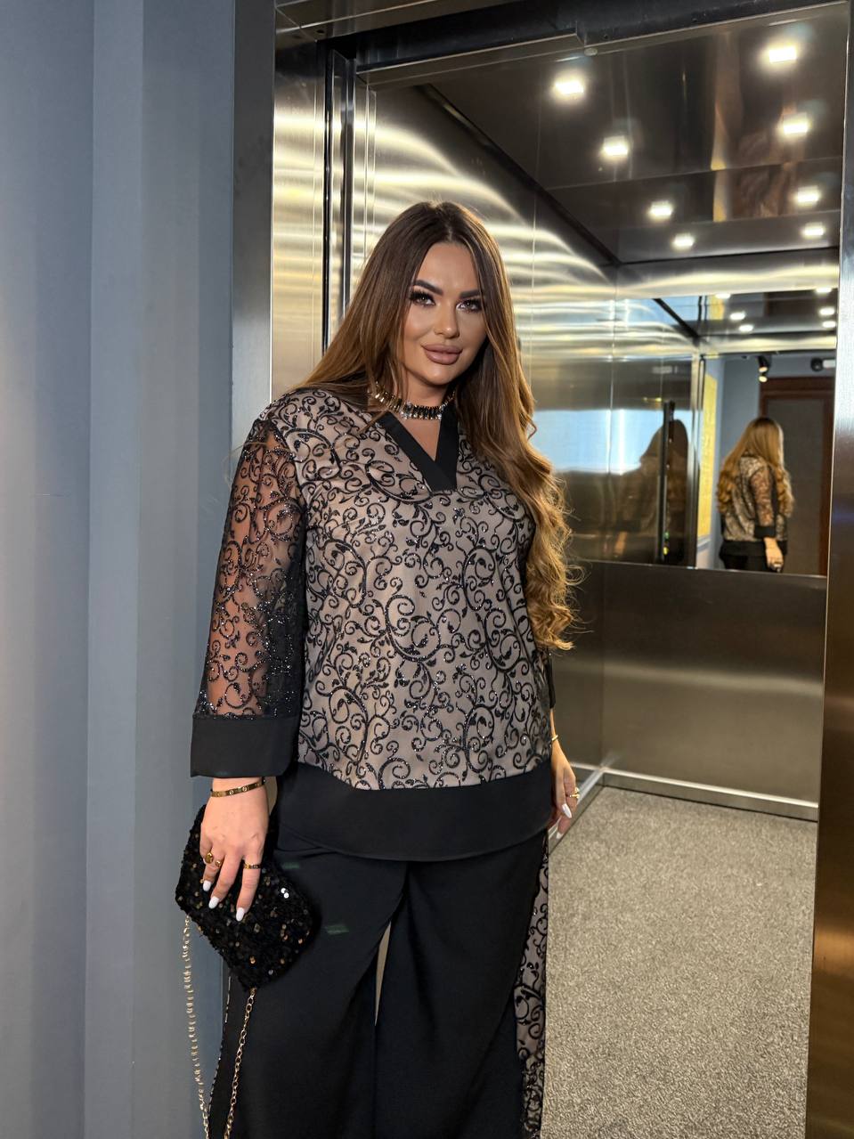 Штани палаццо, блуза з V-подібним вирізом. Дуже стильно дорого виглядає. У такому костюмі ви виглядатимете дуже шикарно!!!!