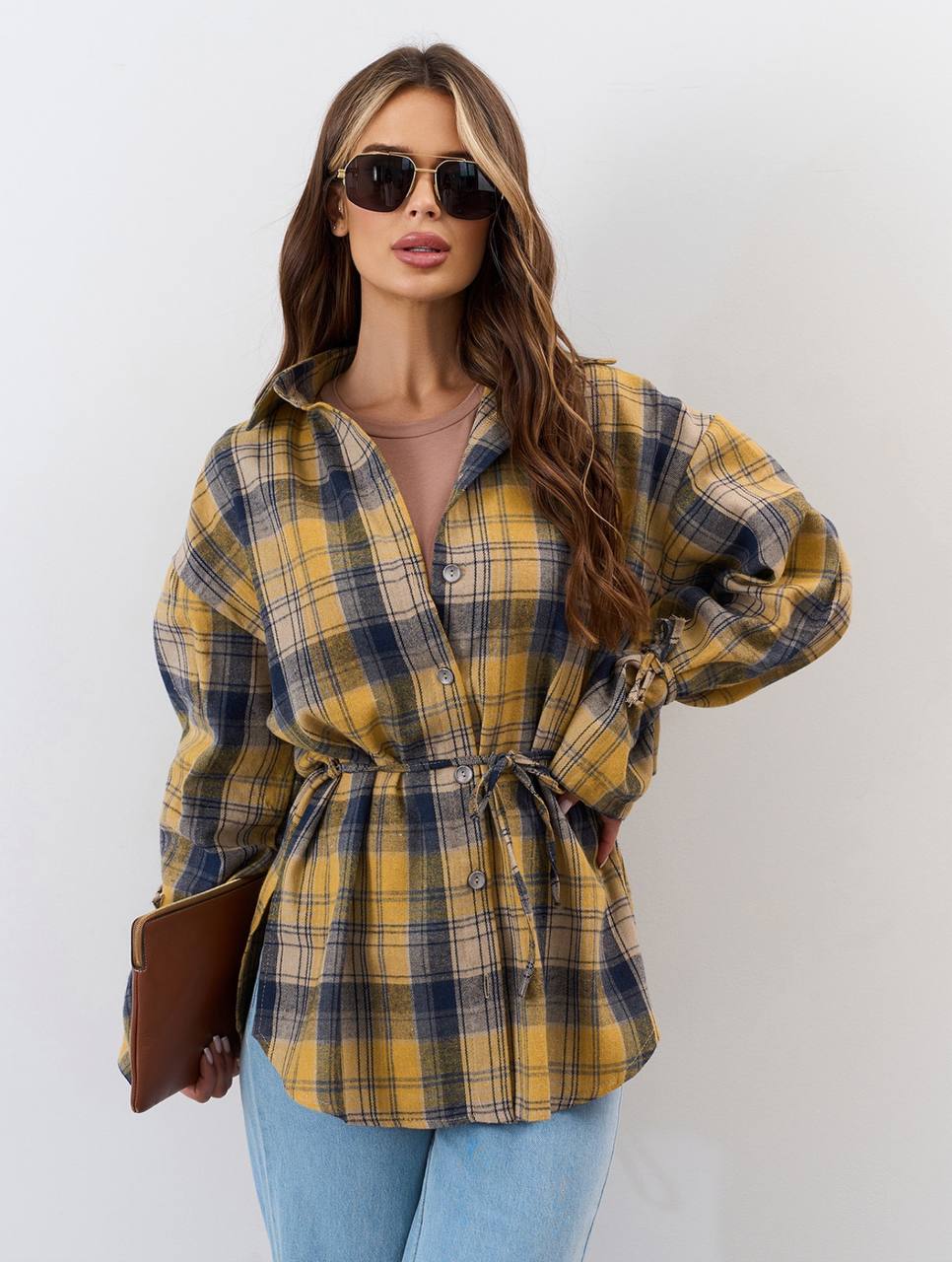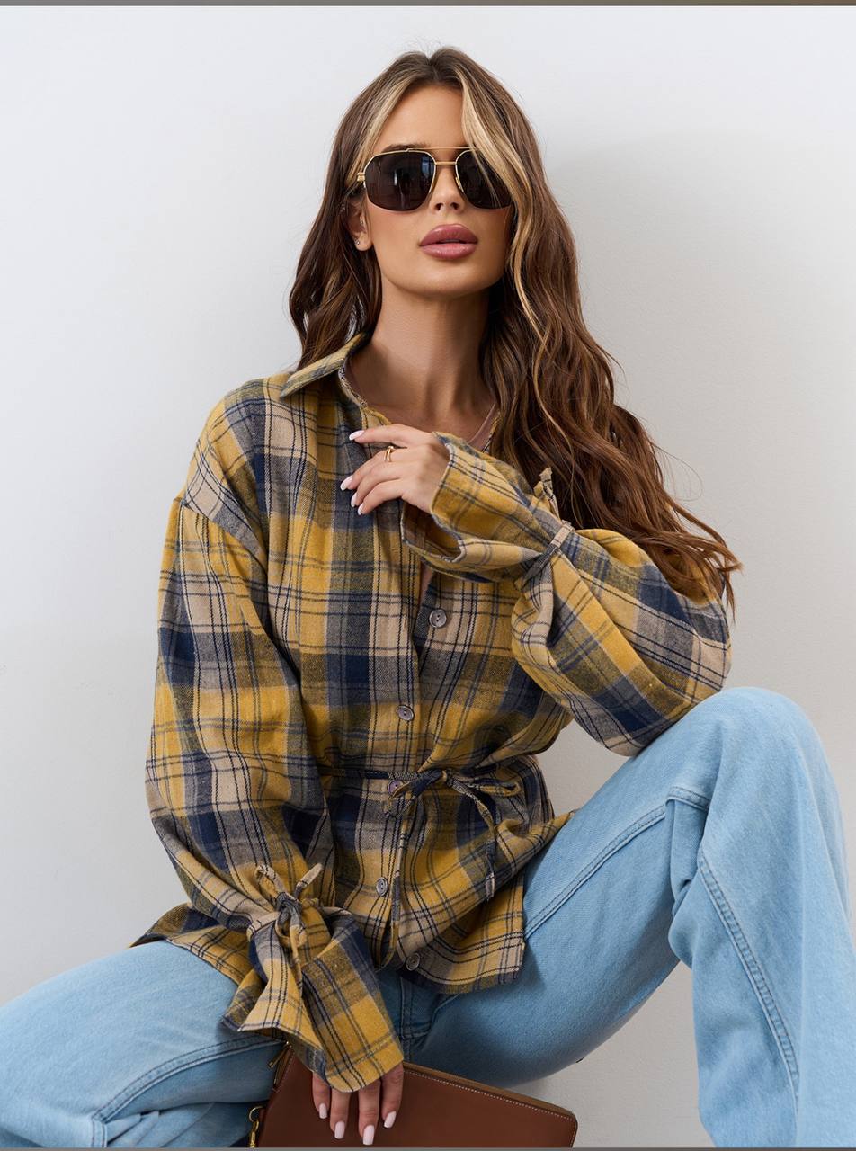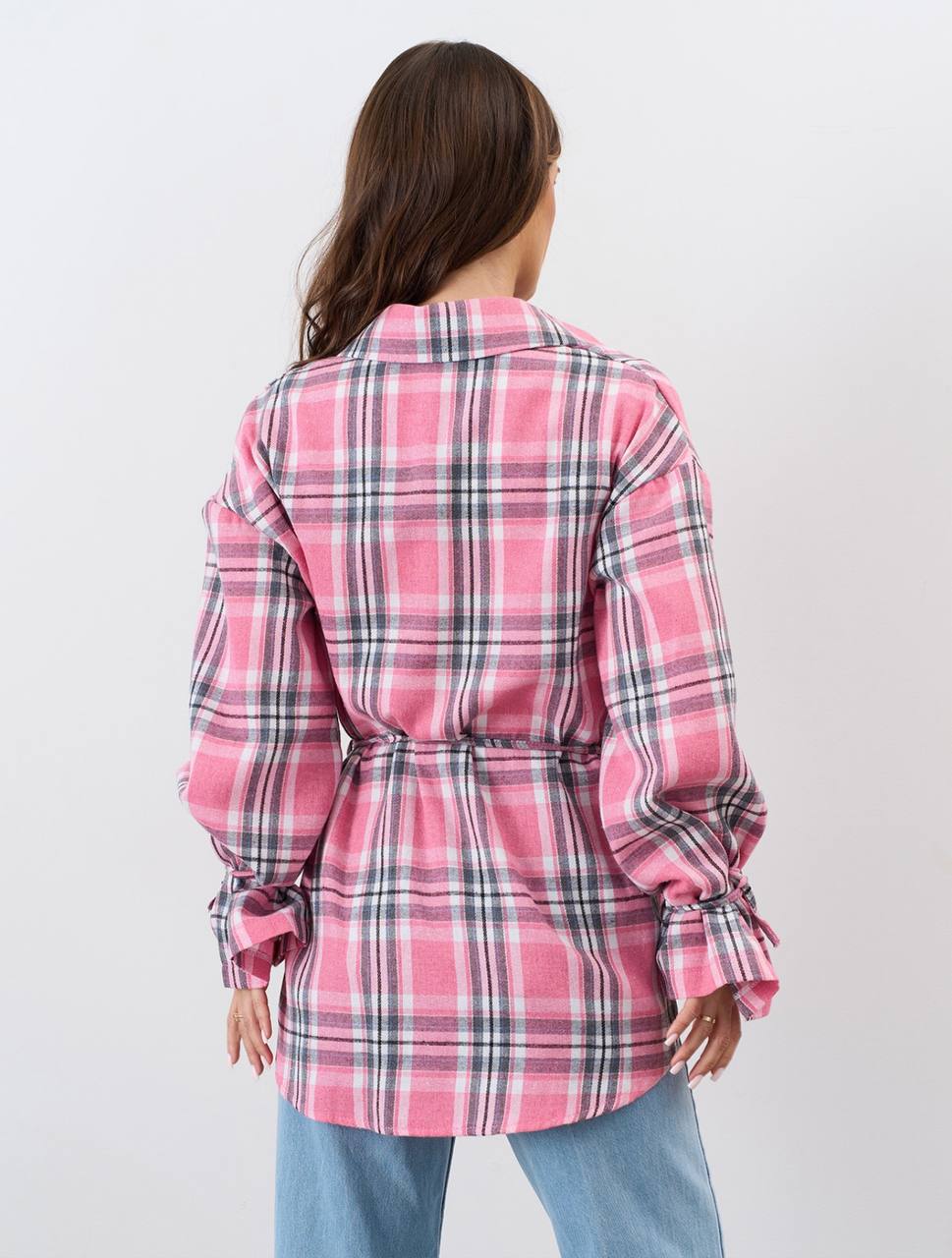 Опис: Сорочка вільного крою на ґудзиках з м’якої бавовняної фланелі , оригінальні рукава з завʼязками та паском.