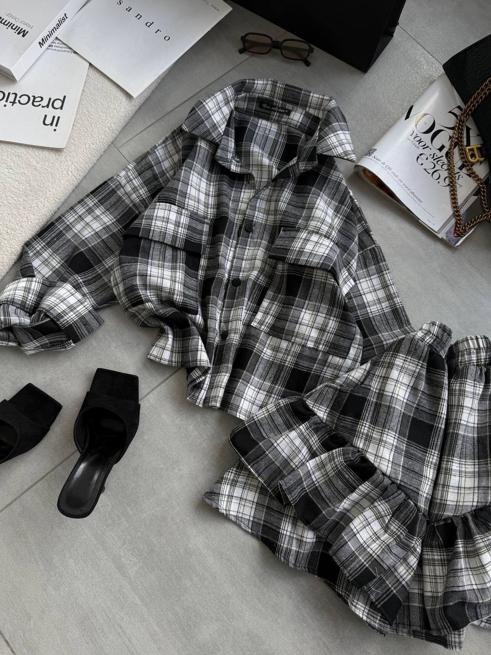 Картатий принт додає родзинки та робить цей сет універсальним – він однаково ефектно виглядатиме як у повсякденних, так і в ділових або вечірніх образах.