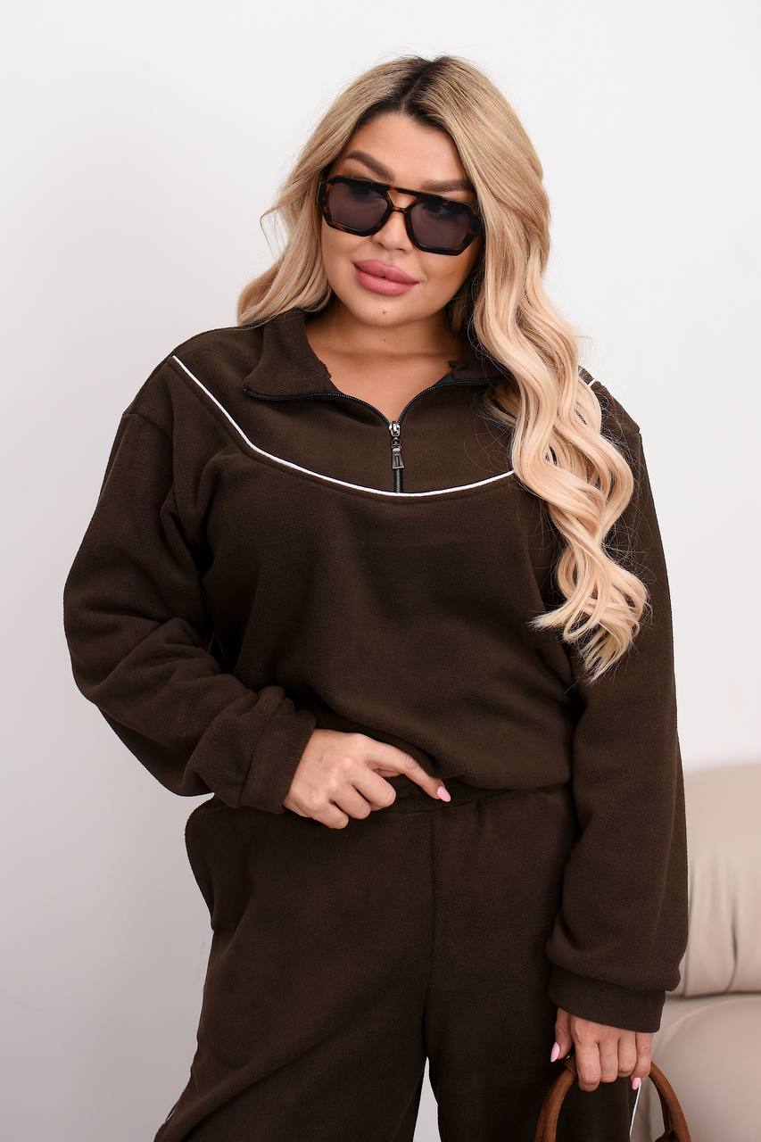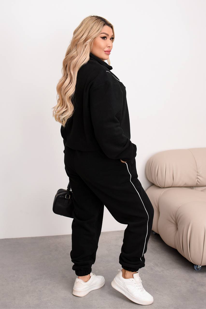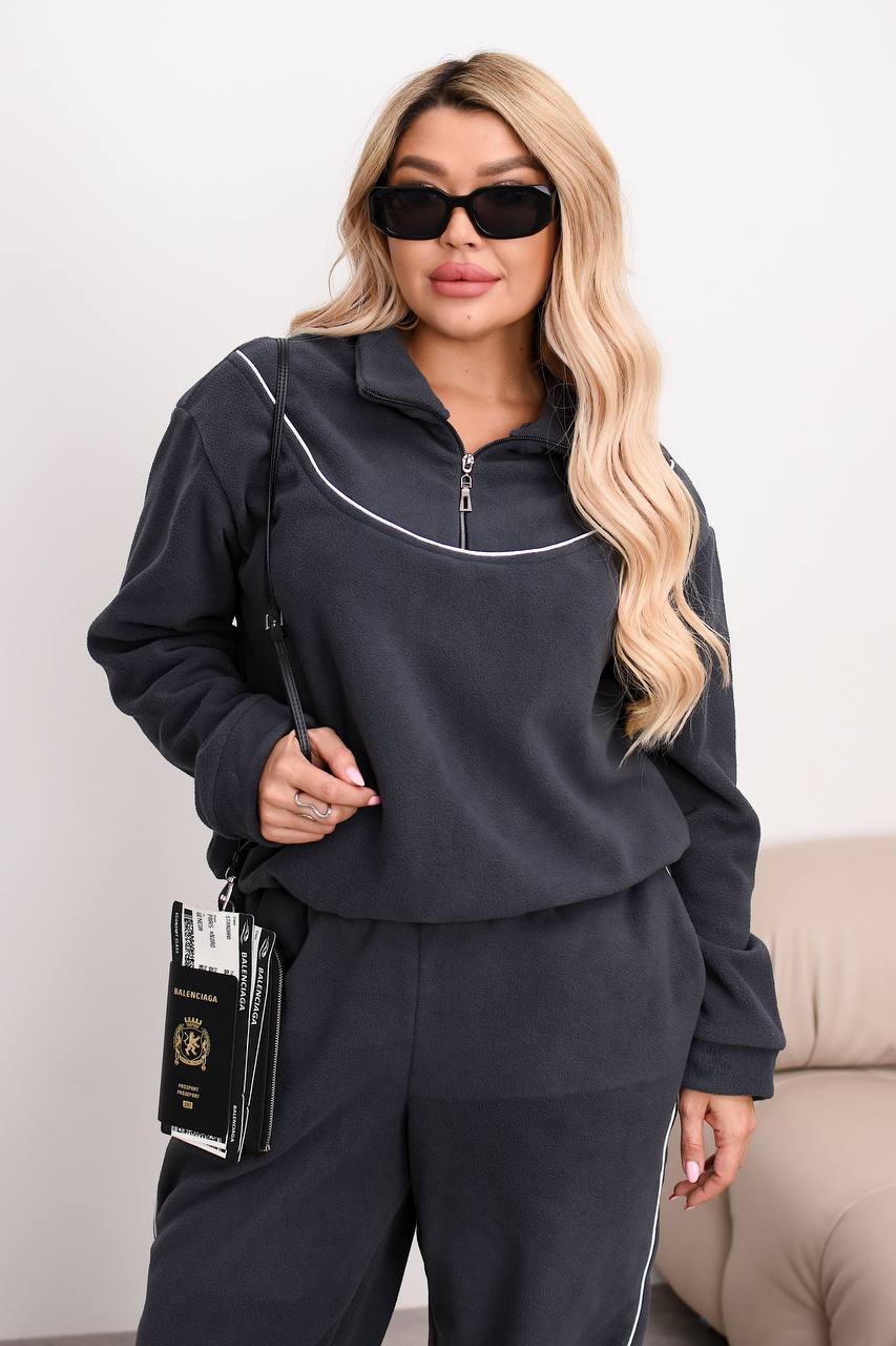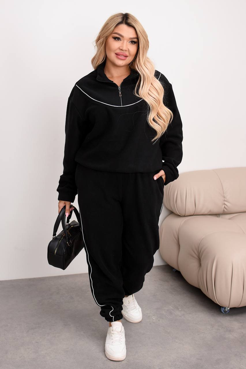 Теплий костюм на блискавці, штанці джогери низ на резинці. Прикрашений кантом х/б. Не кошлатится, гарно сідає по фігурі.