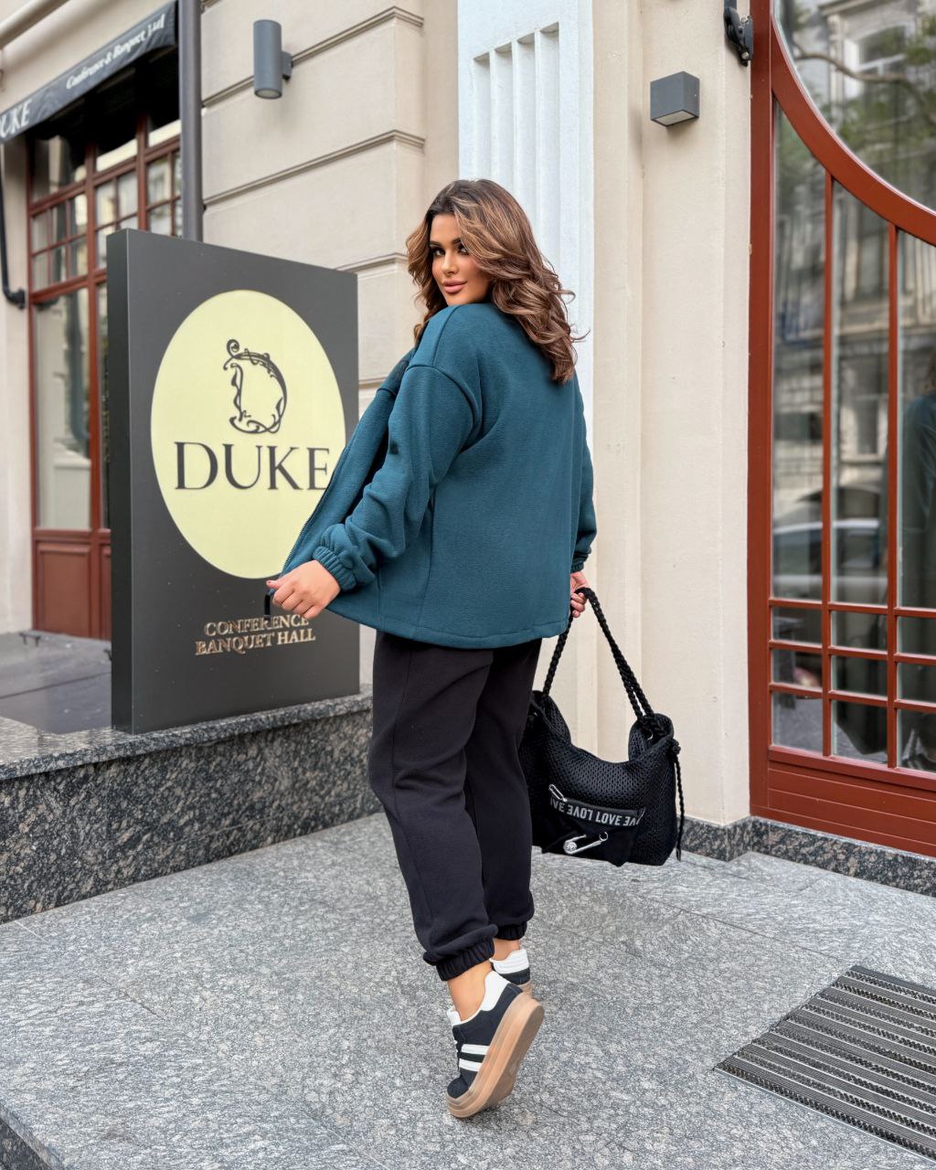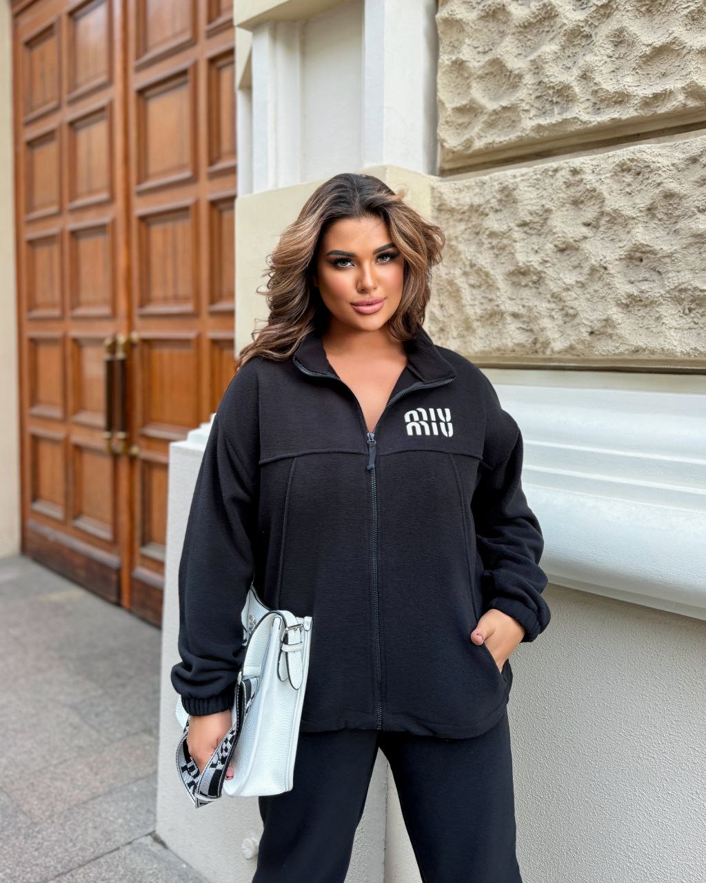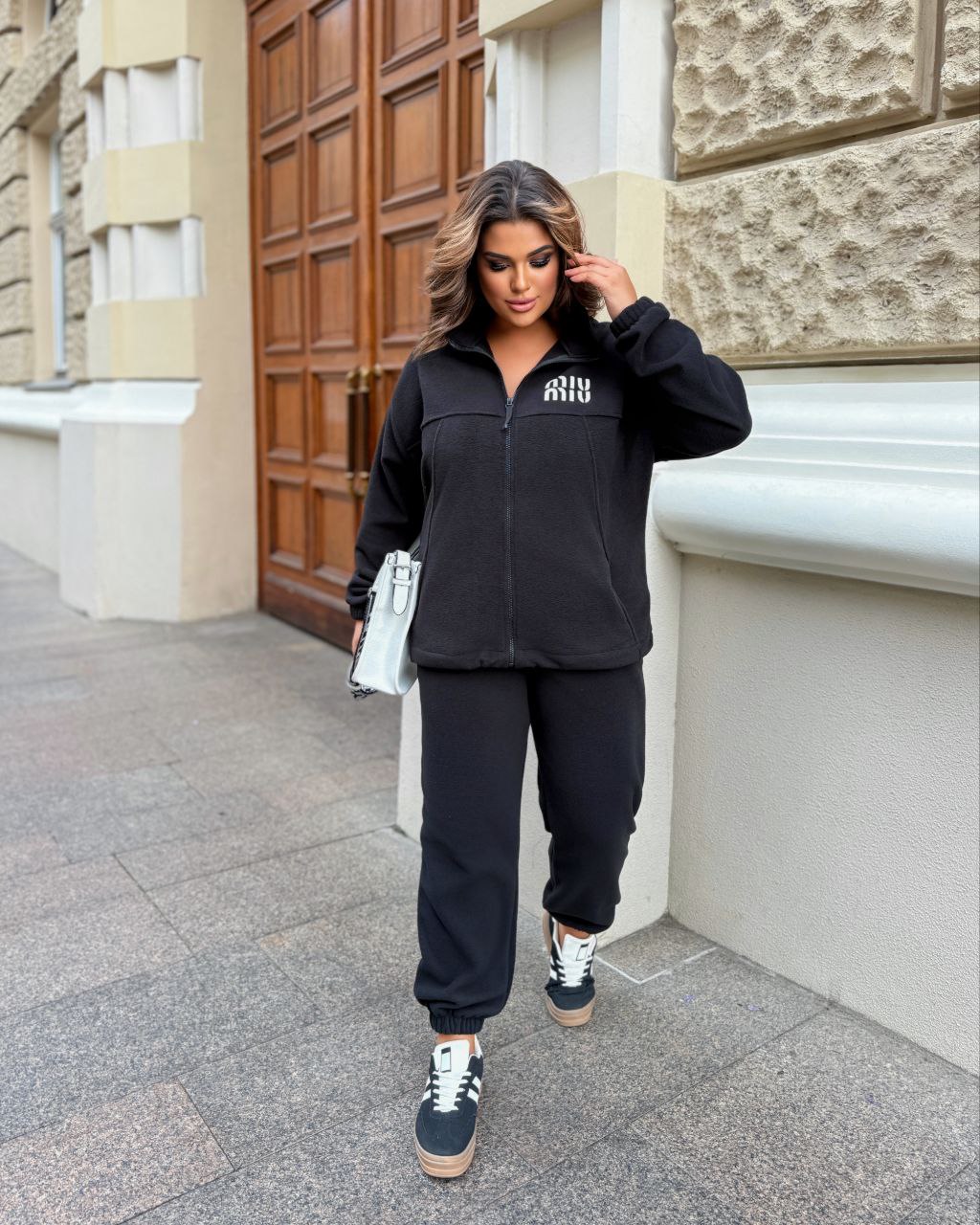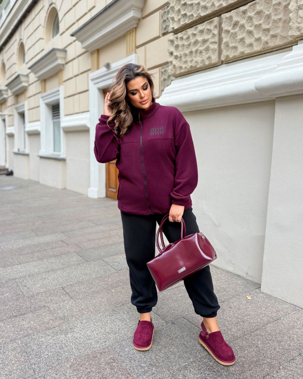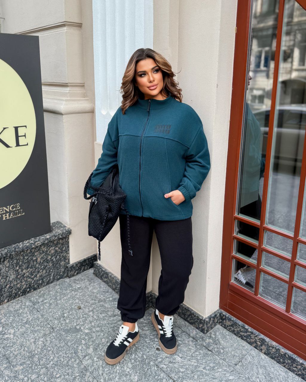 Костюм вироблено з тканини фліс .Кофта на блискавці, з кишенями,по низу резинка,яка дає можливість моделювання .