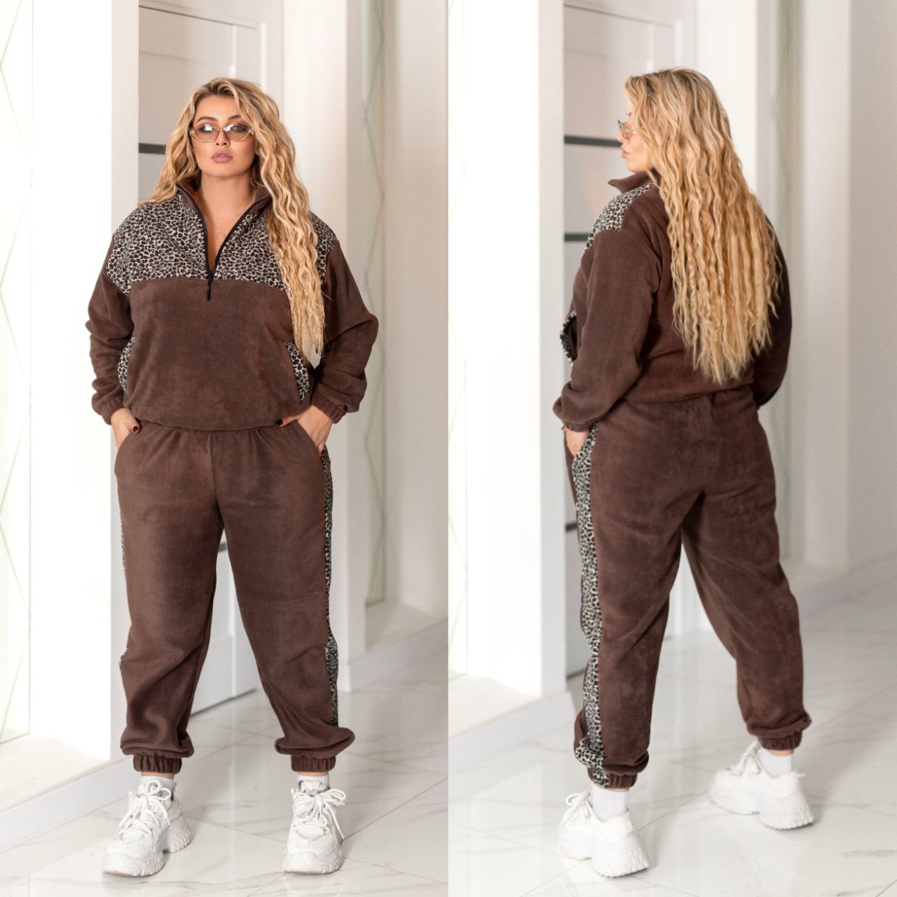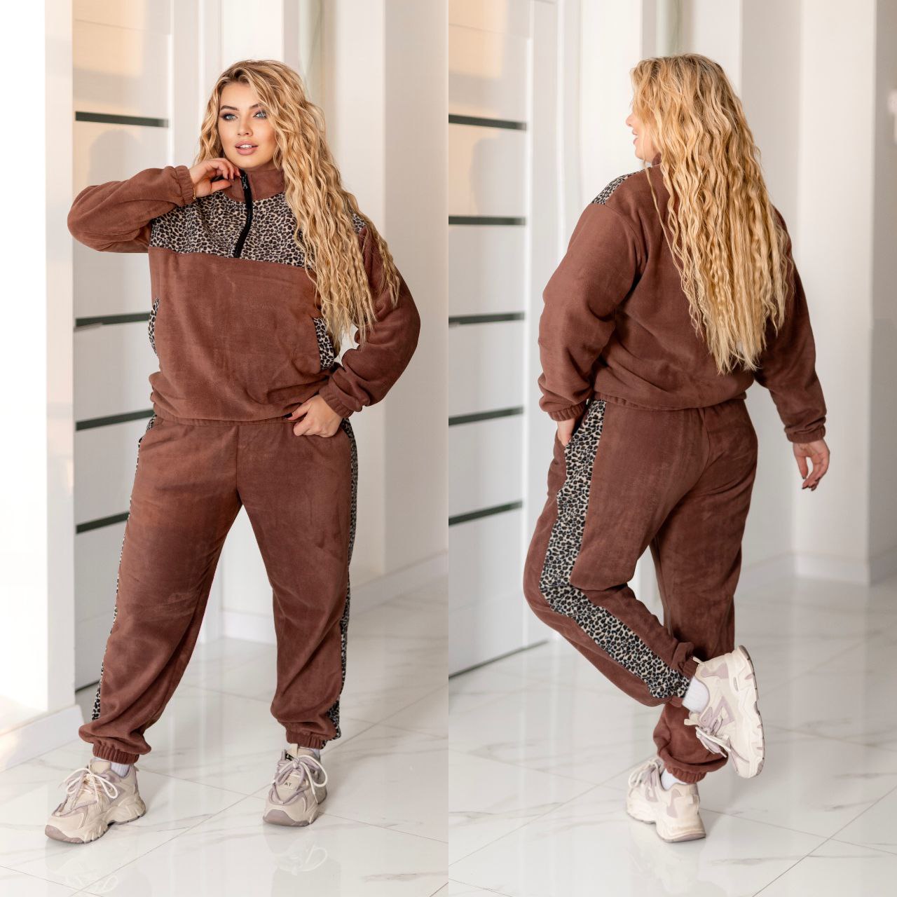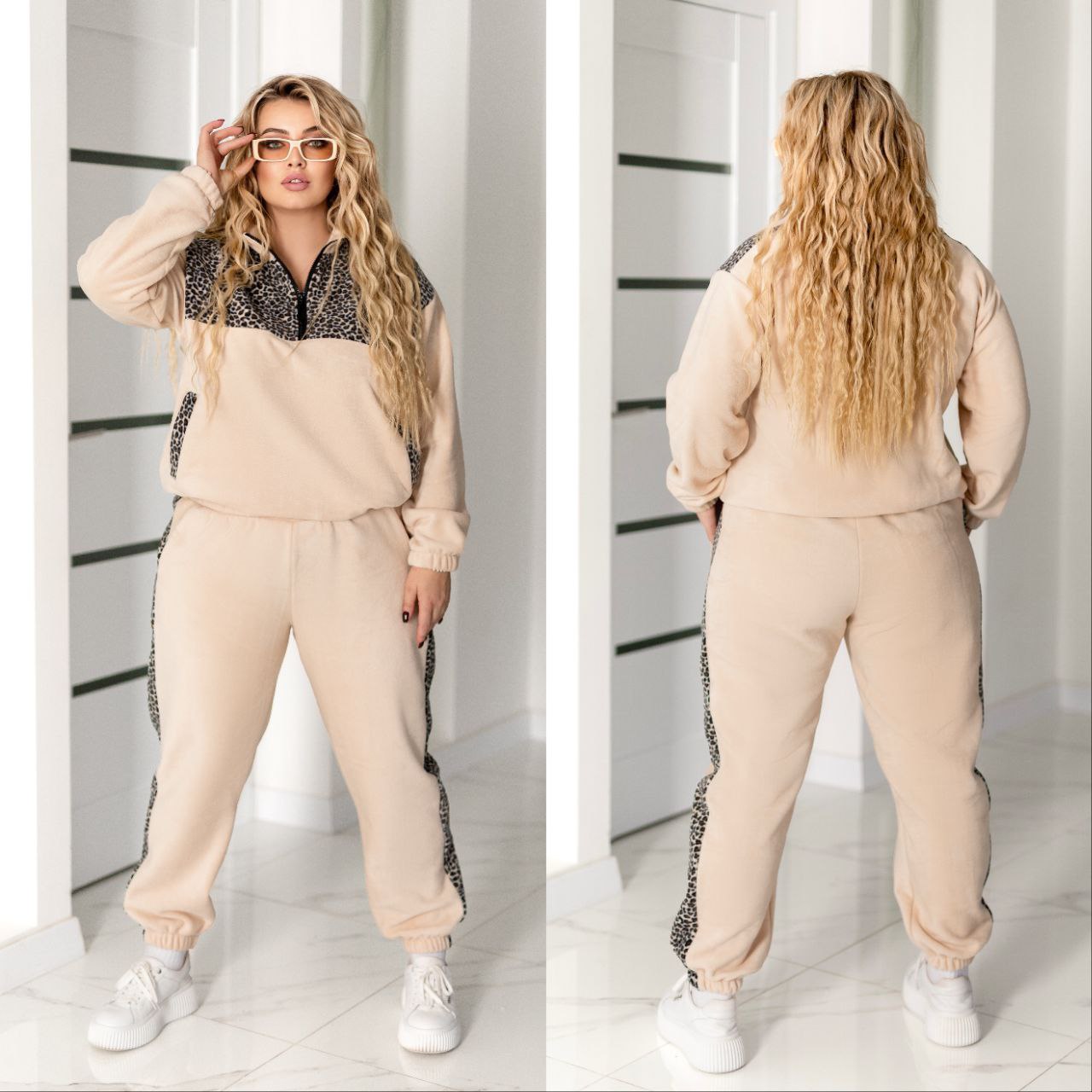 Штани на резінці, з кишенями , пояс прошити на поясній машинці мають 2 кишені по низу штанів ідуть на резинці з лампа сами із леопарда. Дуже тепленький , зручний костюм який зігріє в прохолодну походу, тканина м’яка ,дуже приемна до тіла не кашлатиться.