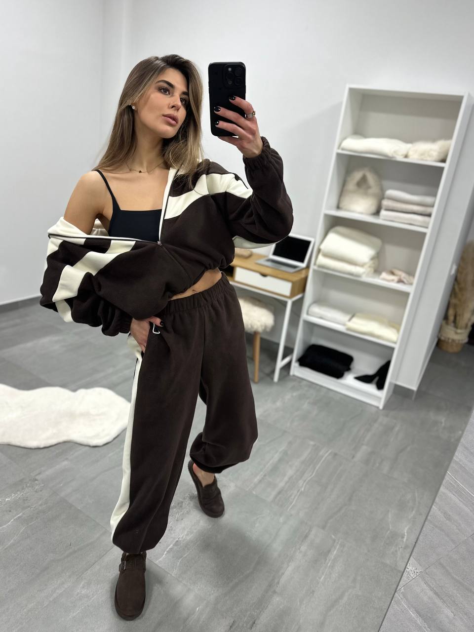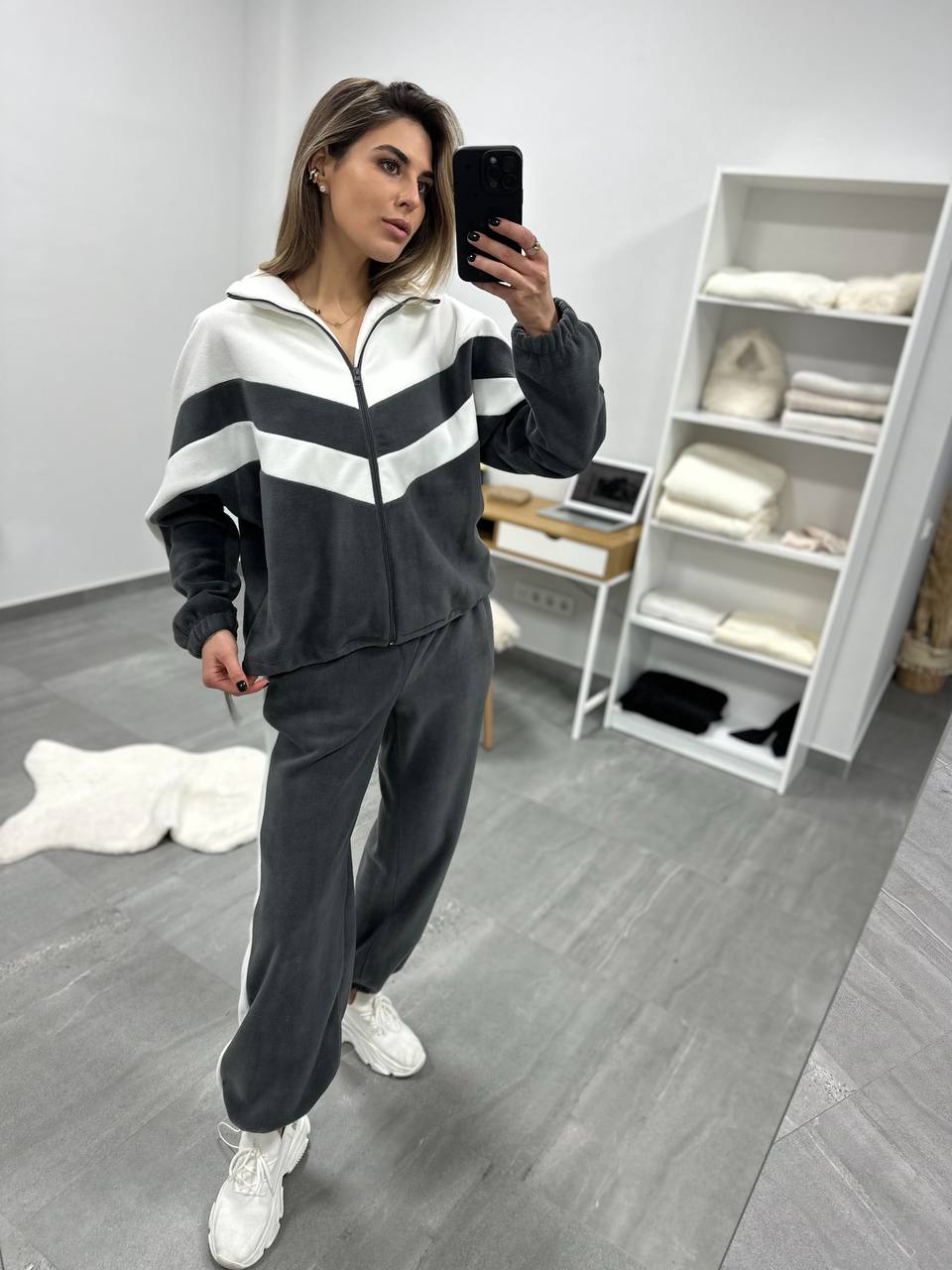 Присутні затяжки на кофті та на штанах